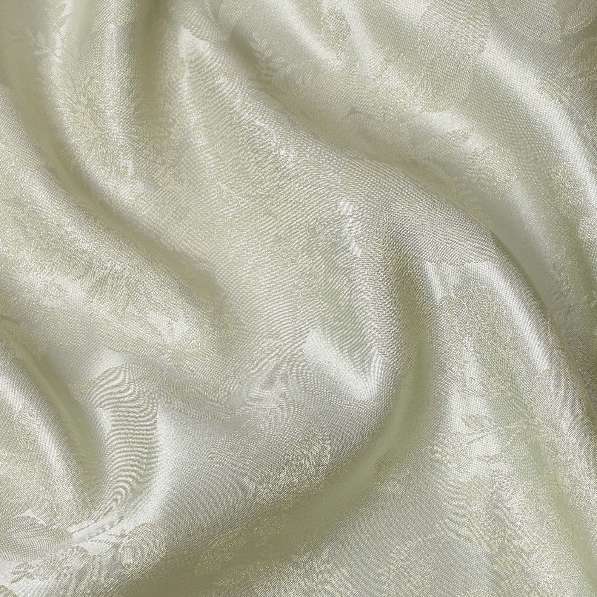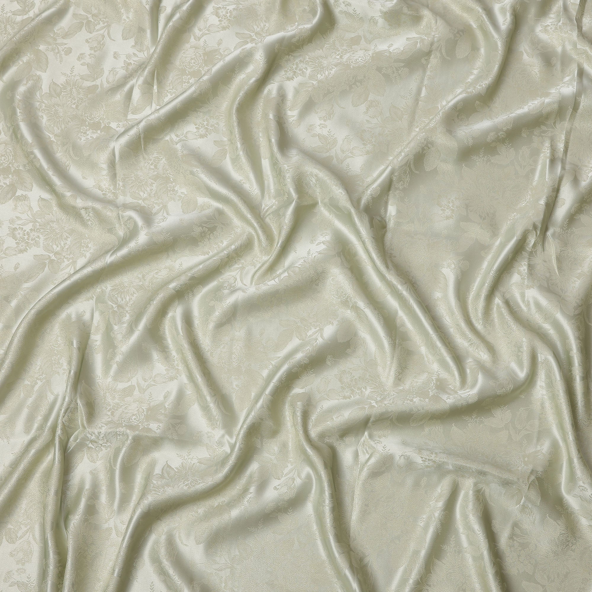 Light Green Floral Self-Design Pure Silk Satin Fabric 140 Cms Width Made in China-D24904