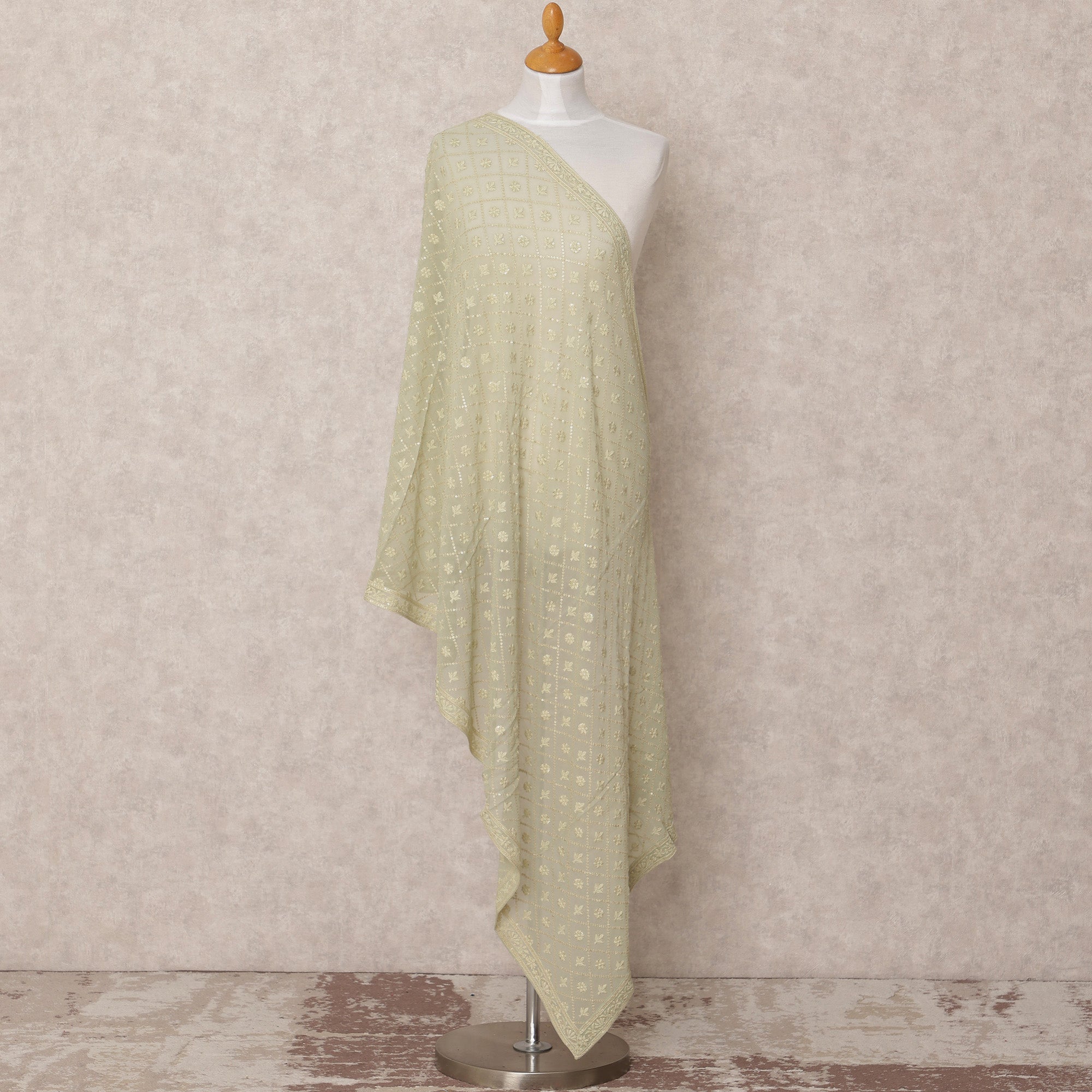 Light green dupatta made of premium synthetic georgette fabric