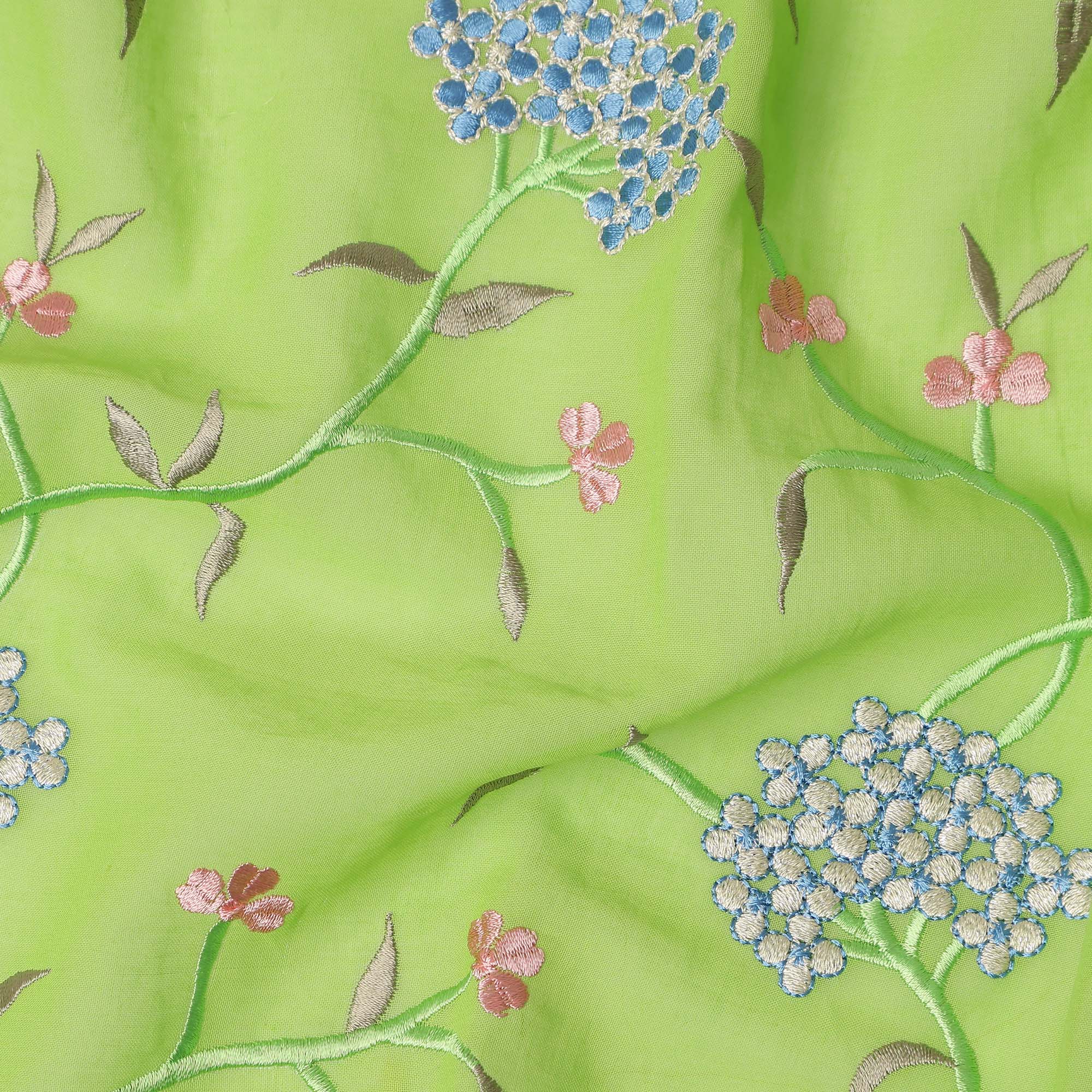 Elegant floral embroidery enhances the light green color with refined traditional appeal.