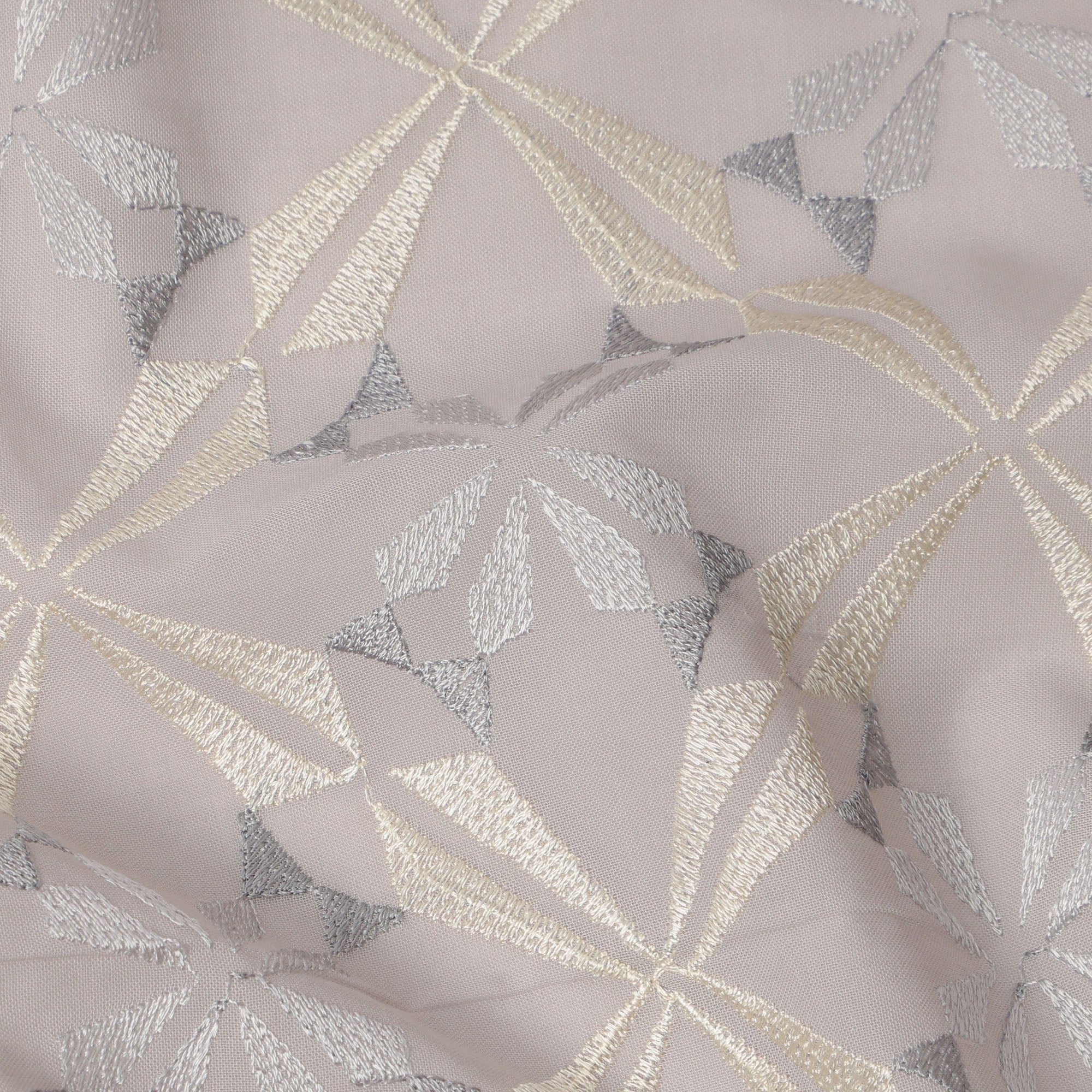 Light Grey Geometric Floral Pattern Cotton Voile Embroidery Fabric, 110 cm Width, Made in India-D24679
