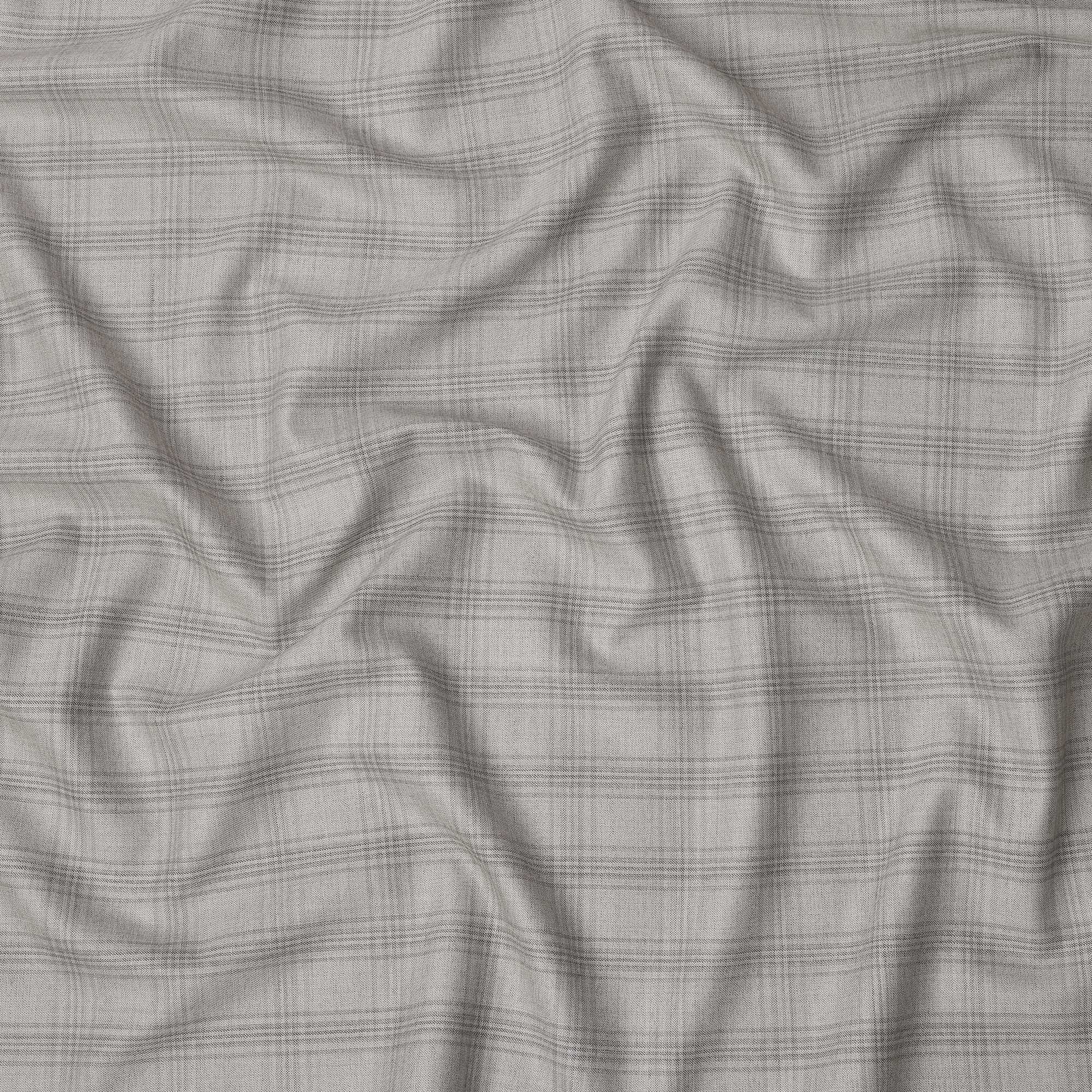 Light Grey Premium Italian Blended Wool Suiting Fabric with check pattern