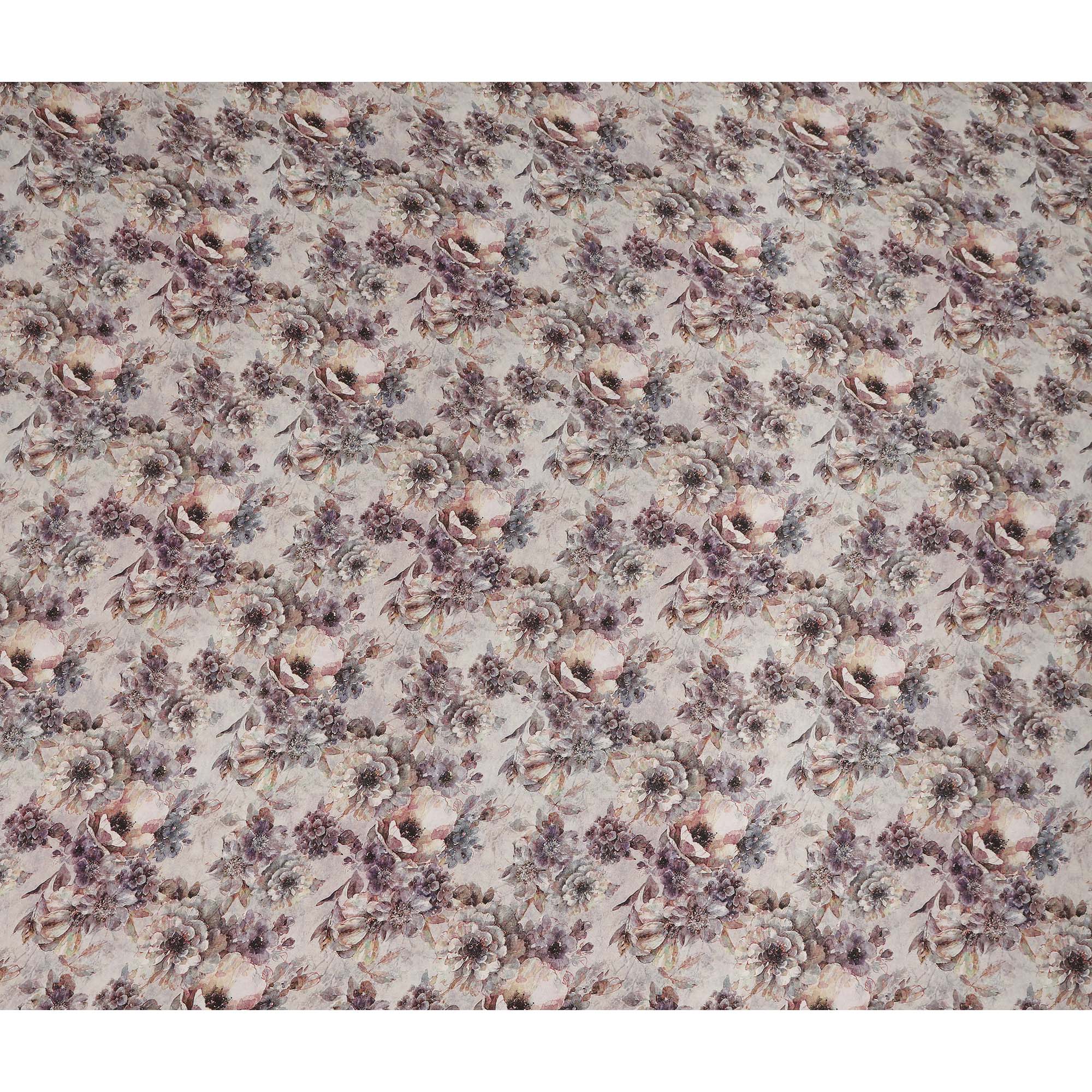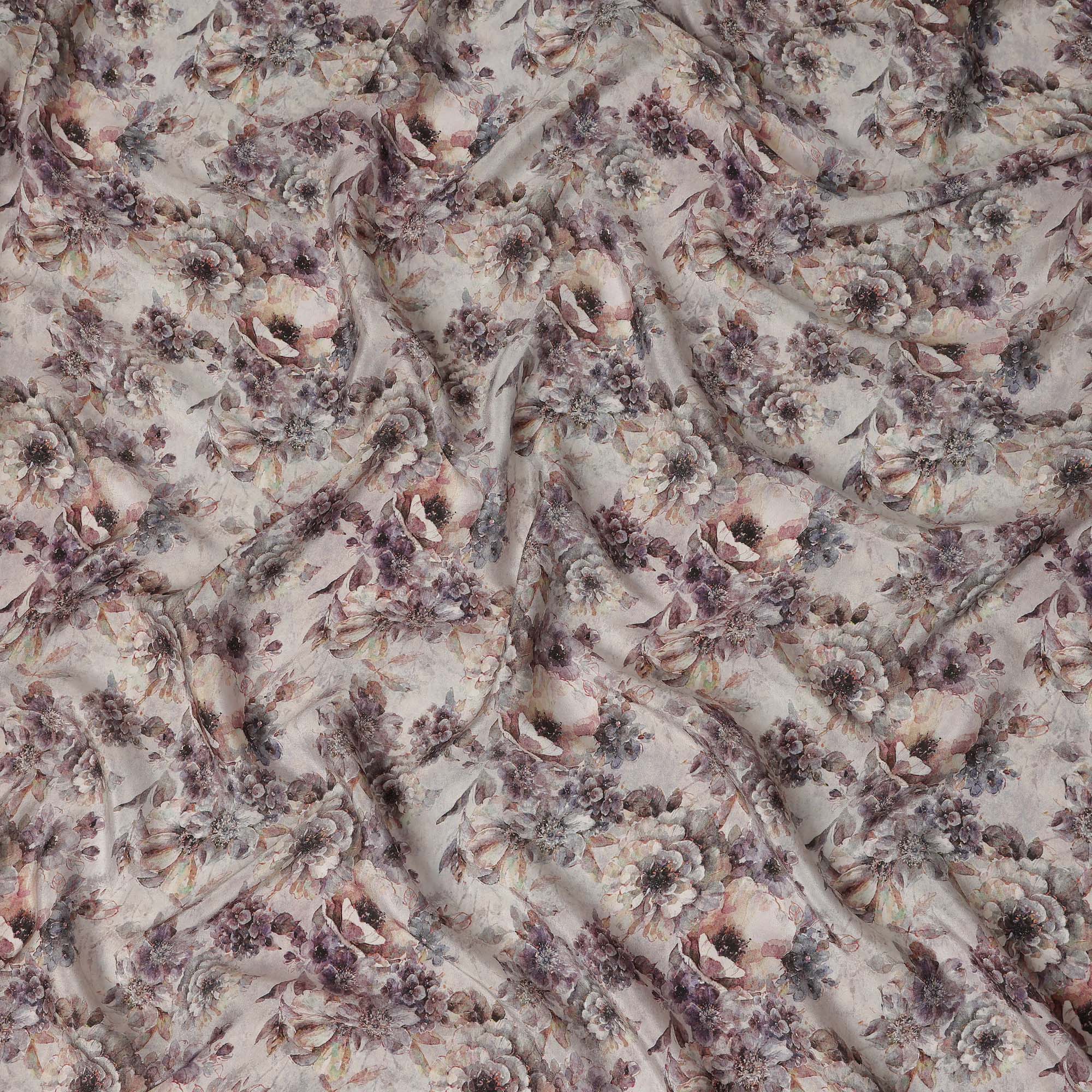 This light grey soft floral printed viscose crepe fabric features a calm and elegant base highlighted with muted floral motifs... Read more Read more