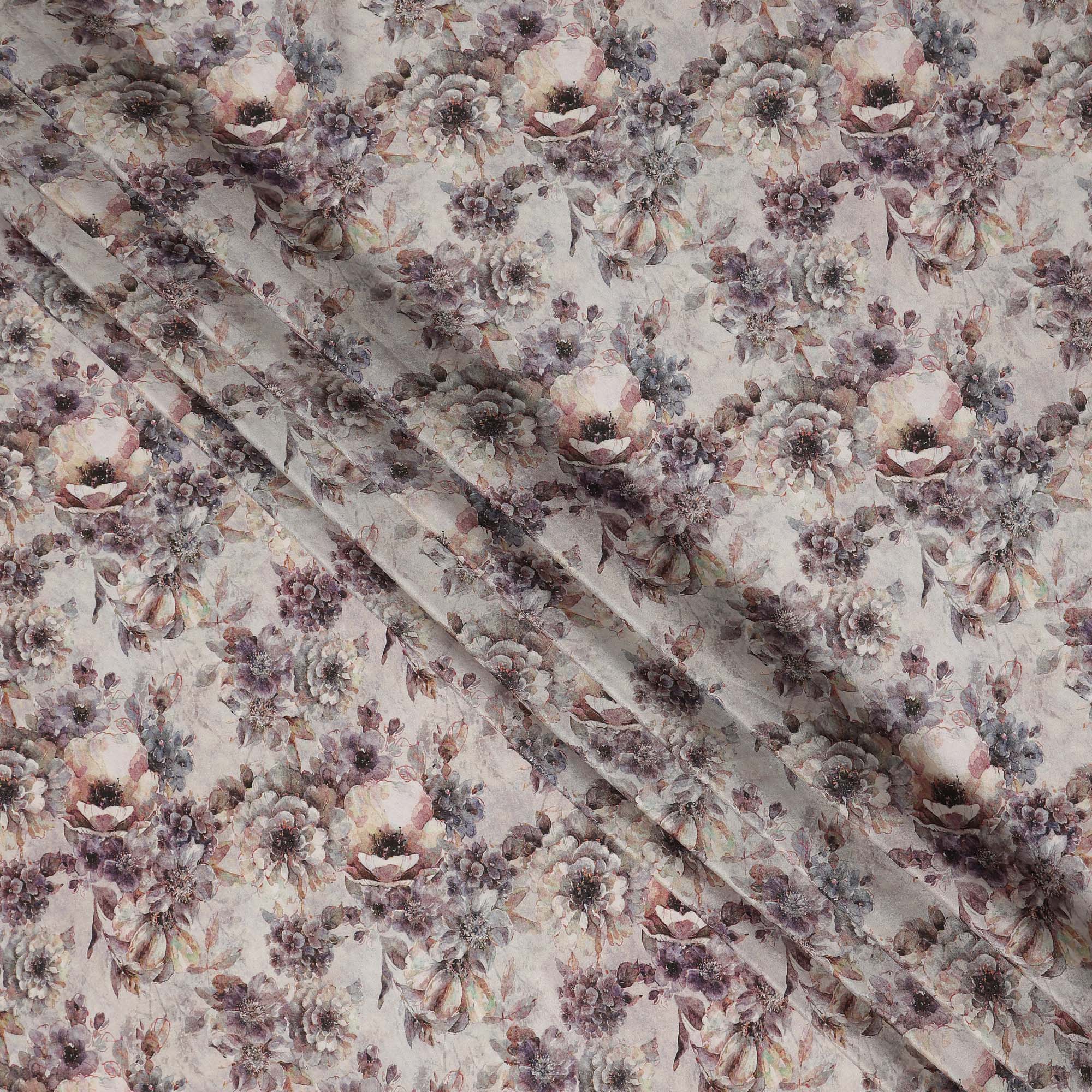 Light Grey Soft Floral Printed Viscose Crepe Fabric 110 Cms Width Made in India-D27583