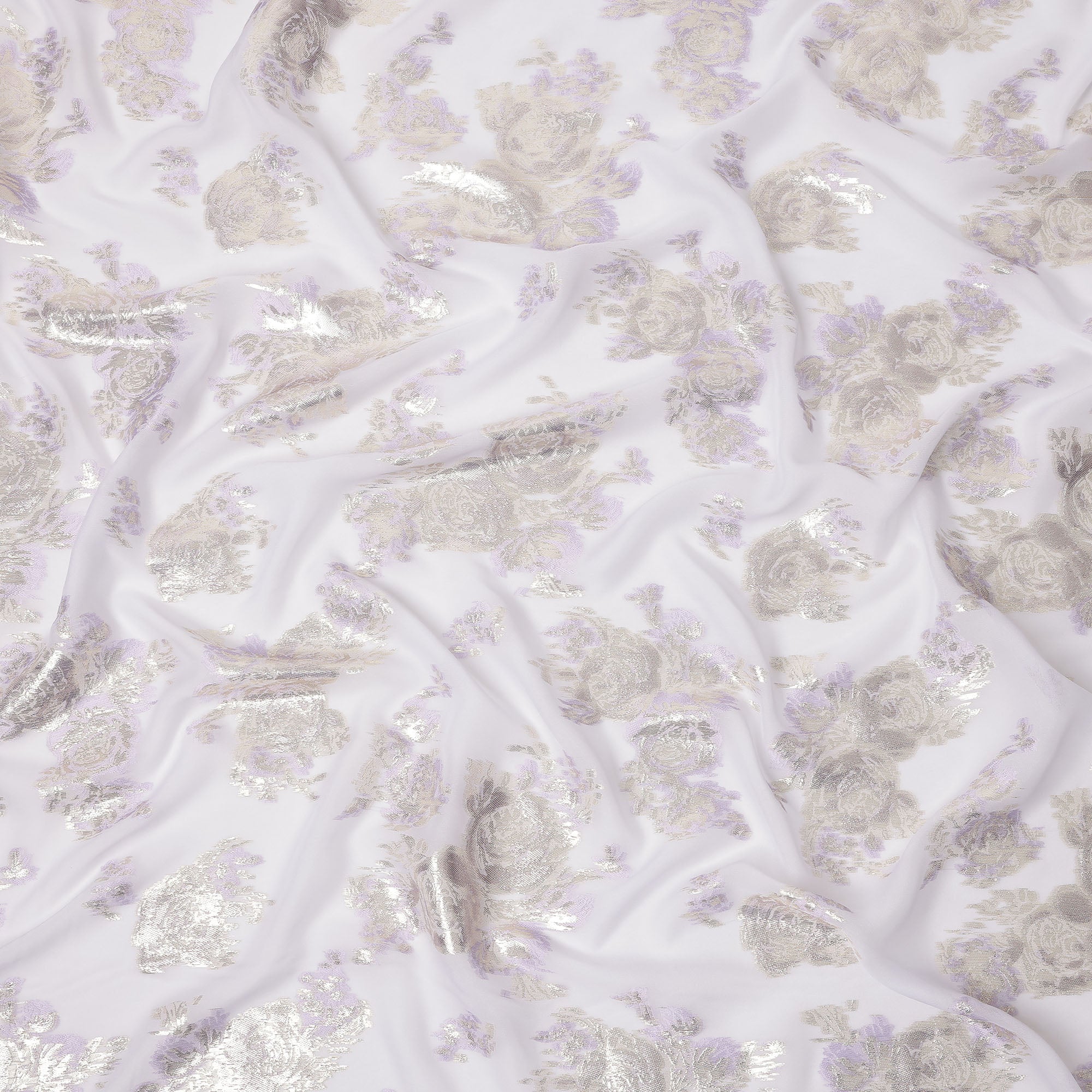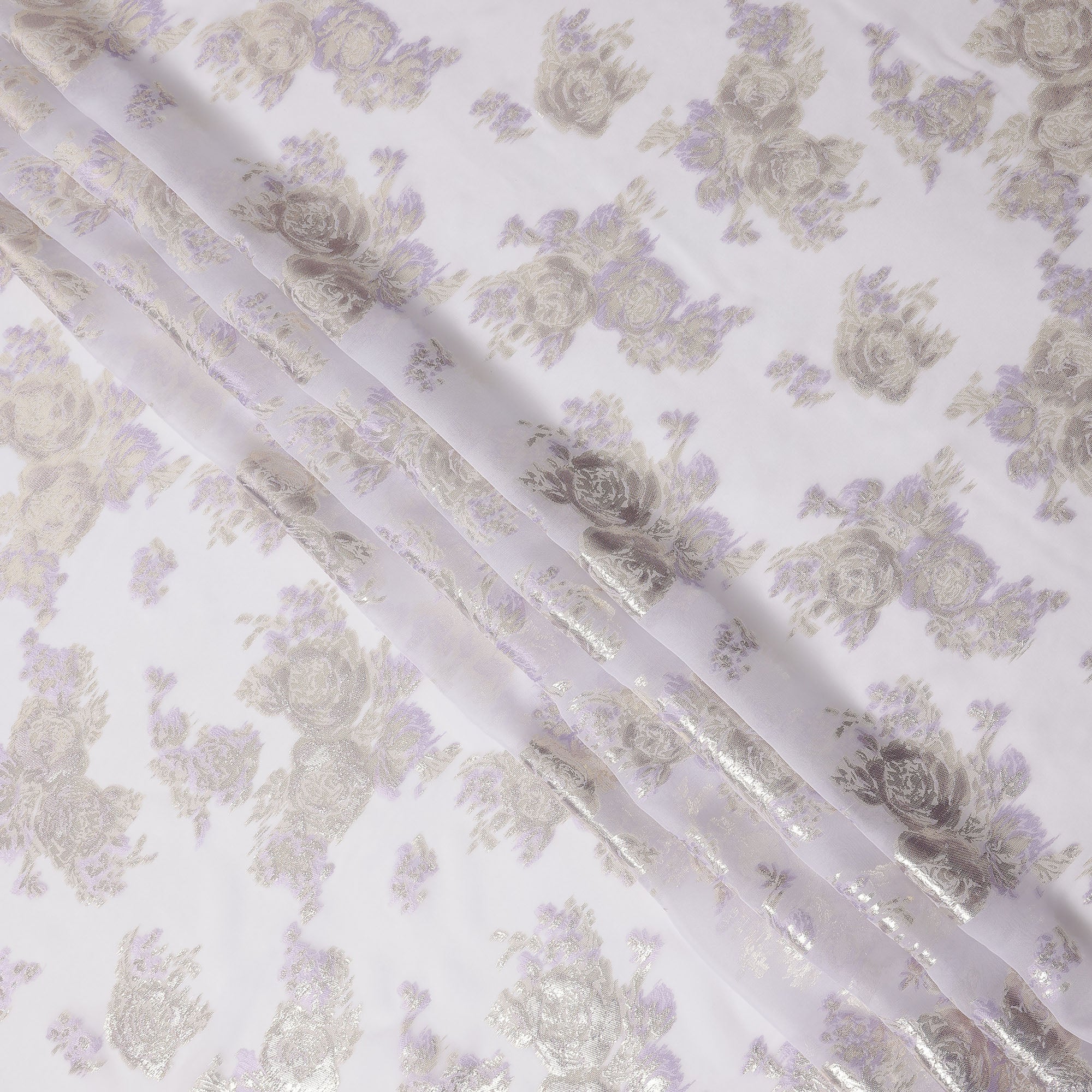 Light Lavender Floral Pure Silk Chiffon Fabric with Metallic Lurex, 110 Cms Width, South Korea-D25250