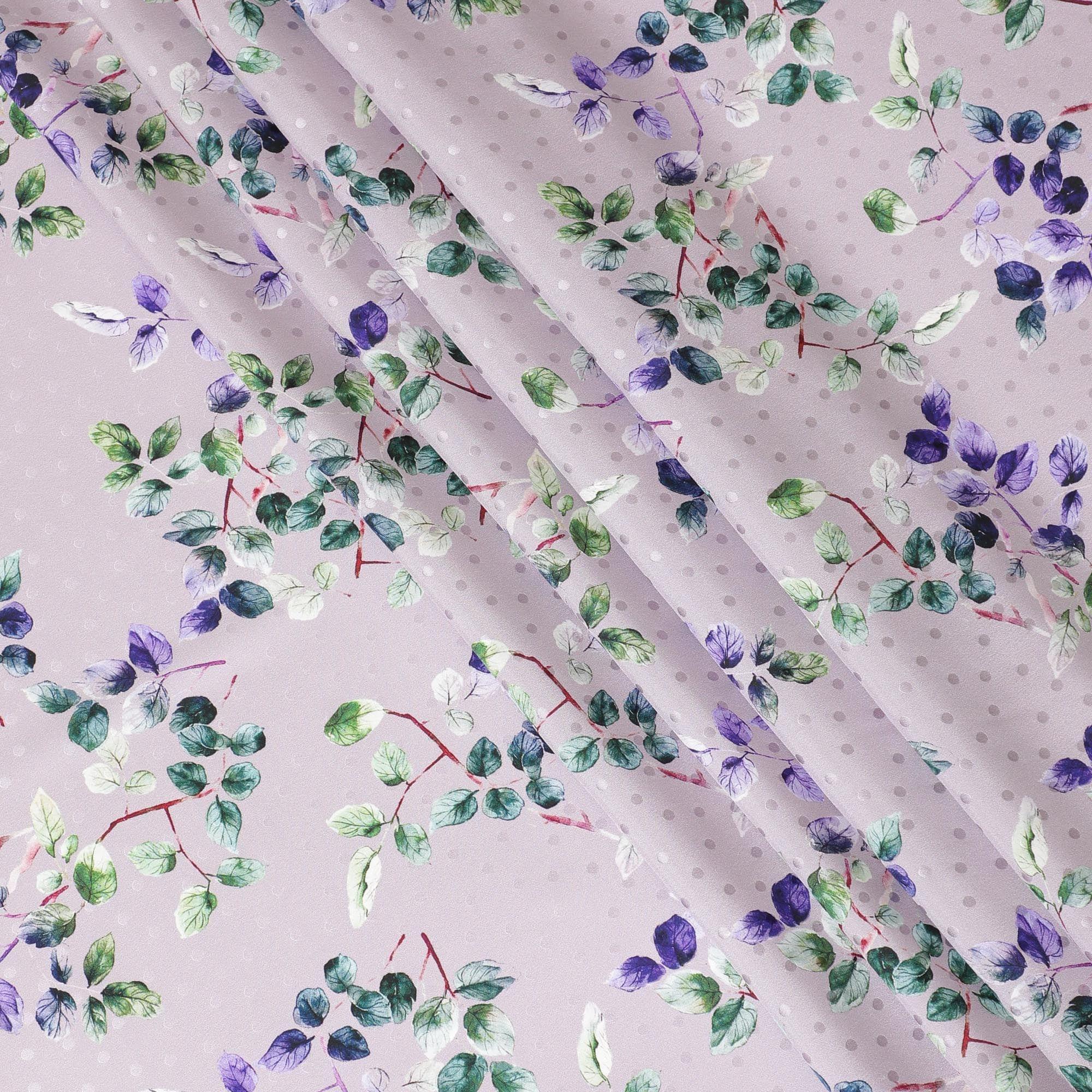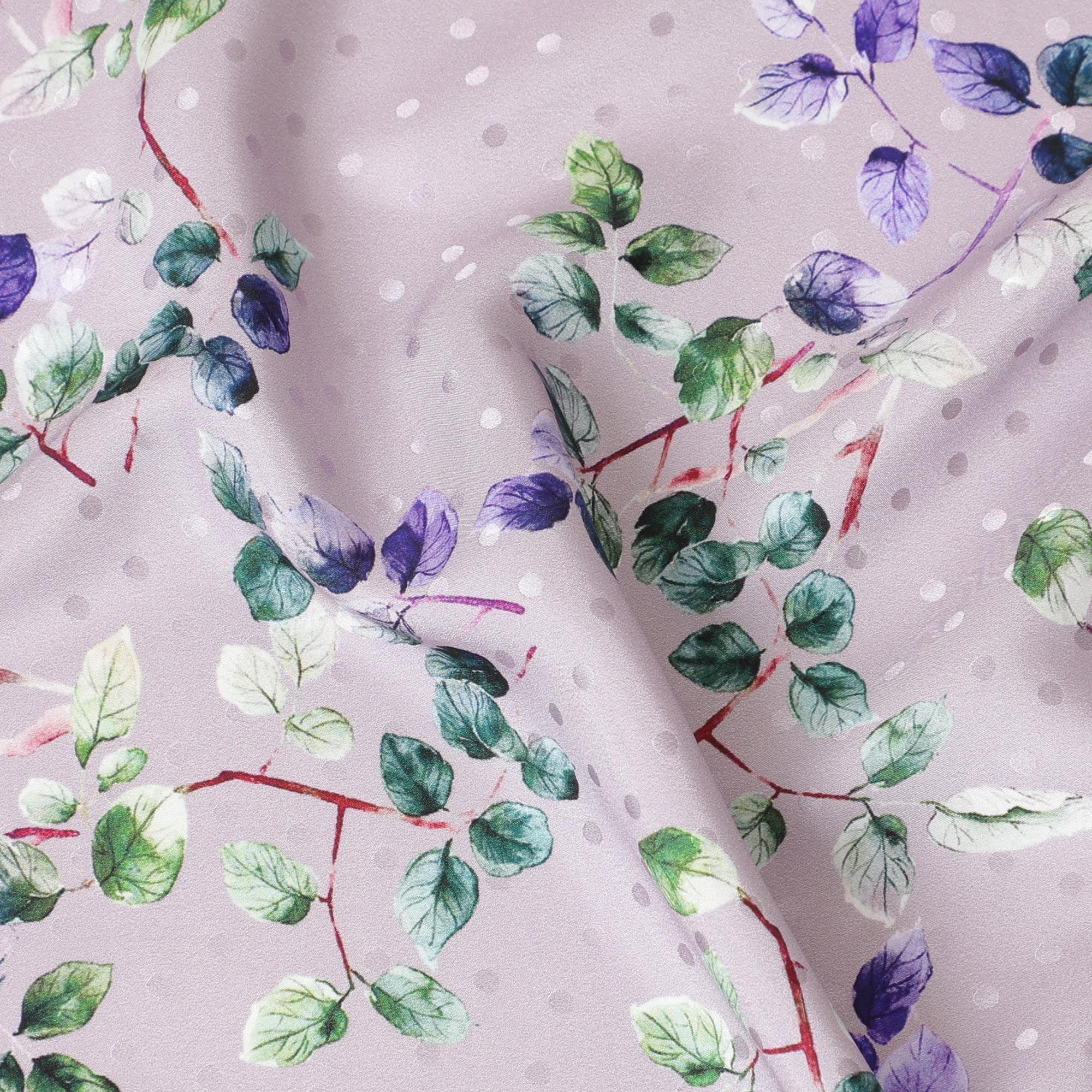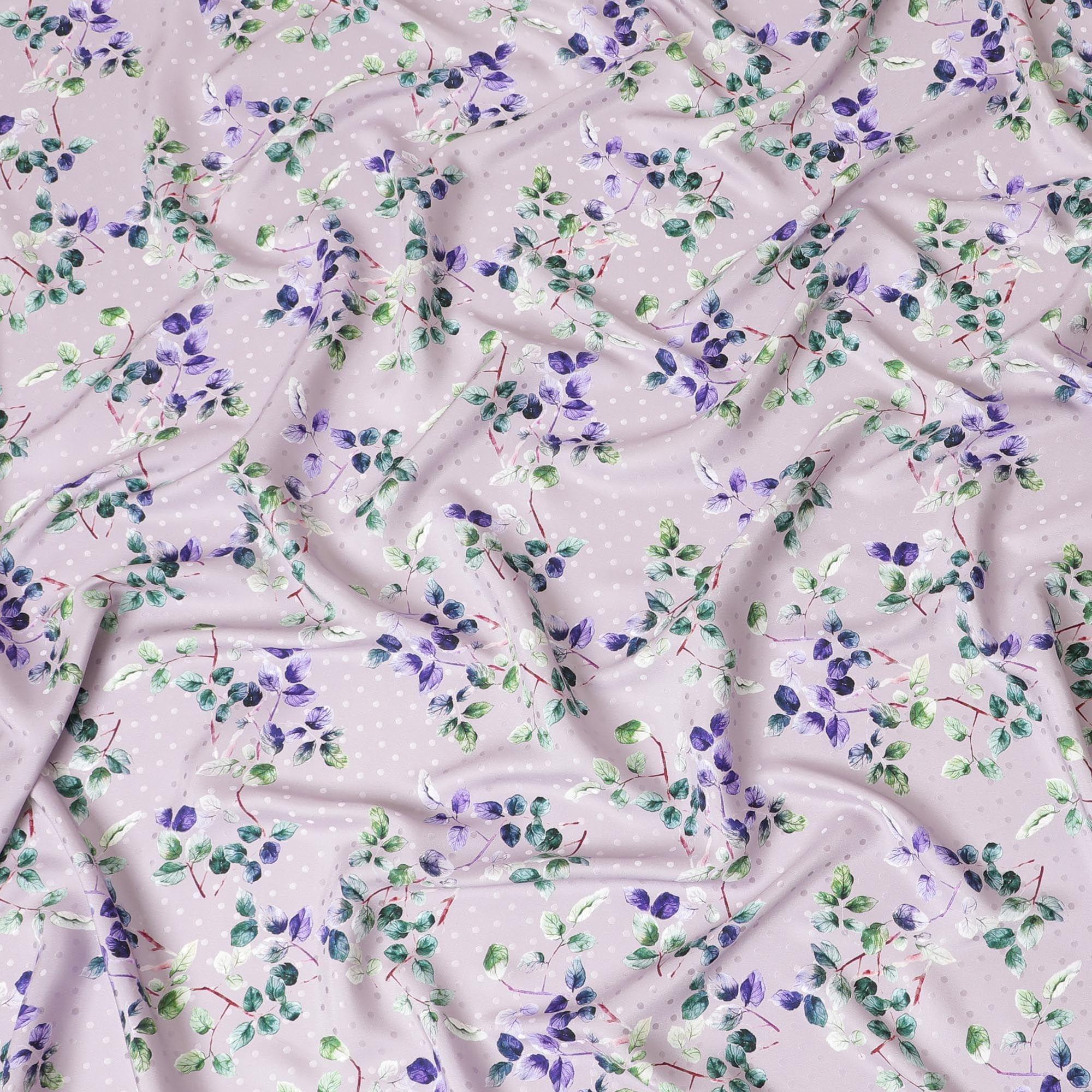 Light Lavender Italian premium pure silk satin with same tone dot jacquard having multicolor print in floral design-D9721