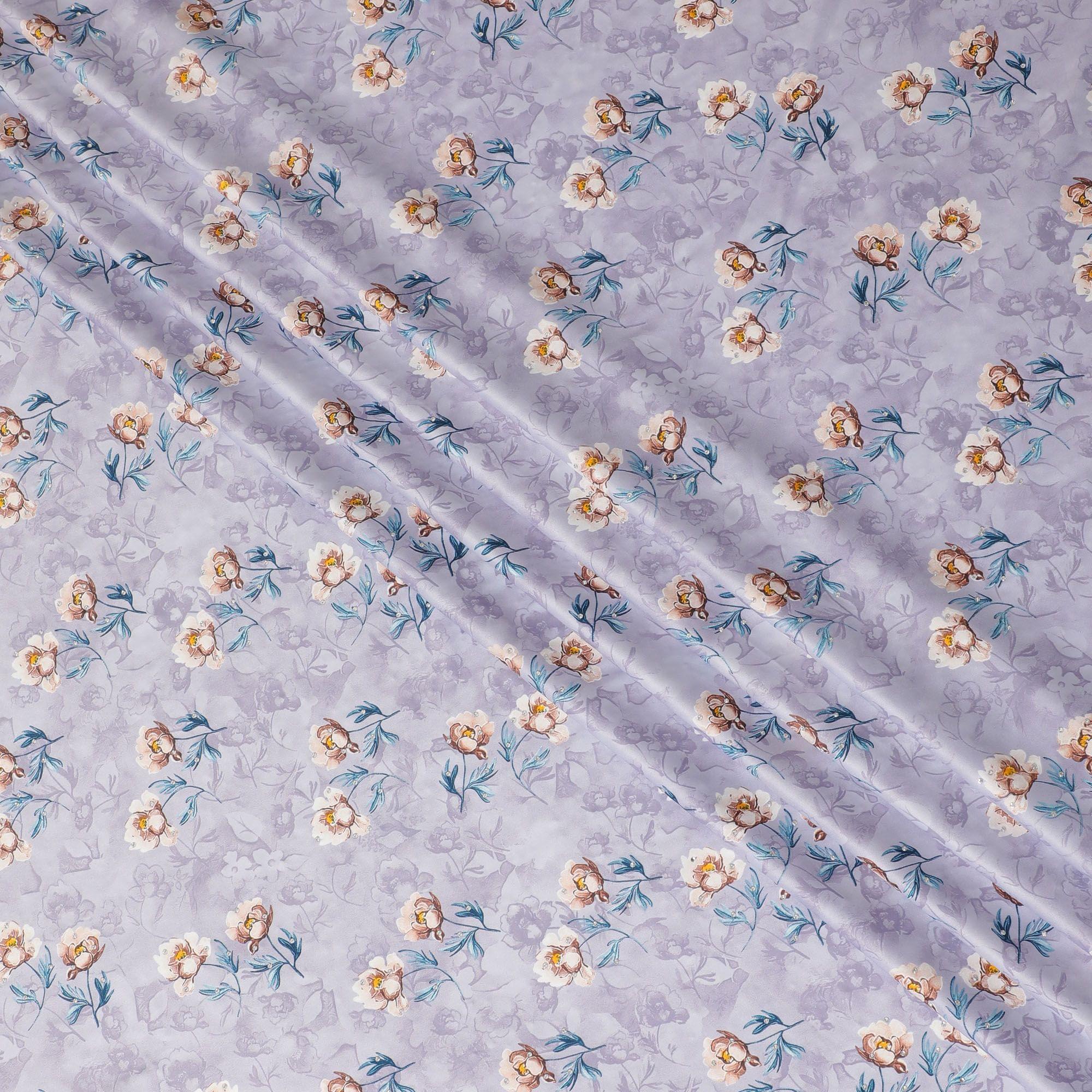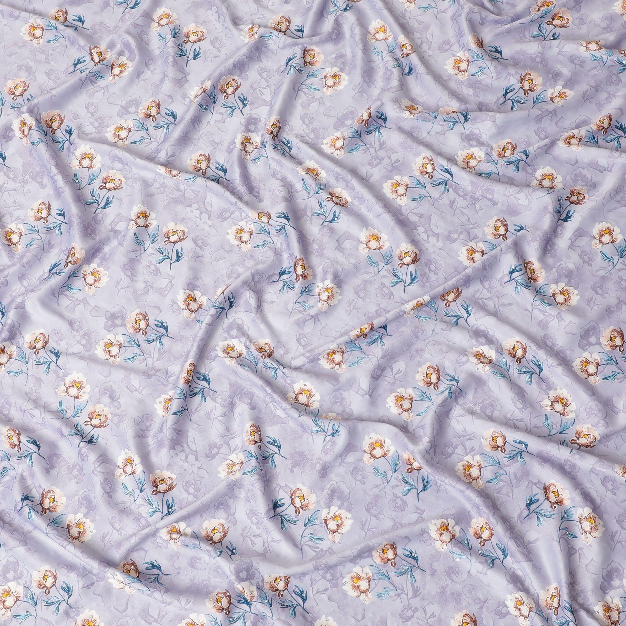 Light lavender synthetic crepe fabric with multicolor print having stone work in floral design-D15308