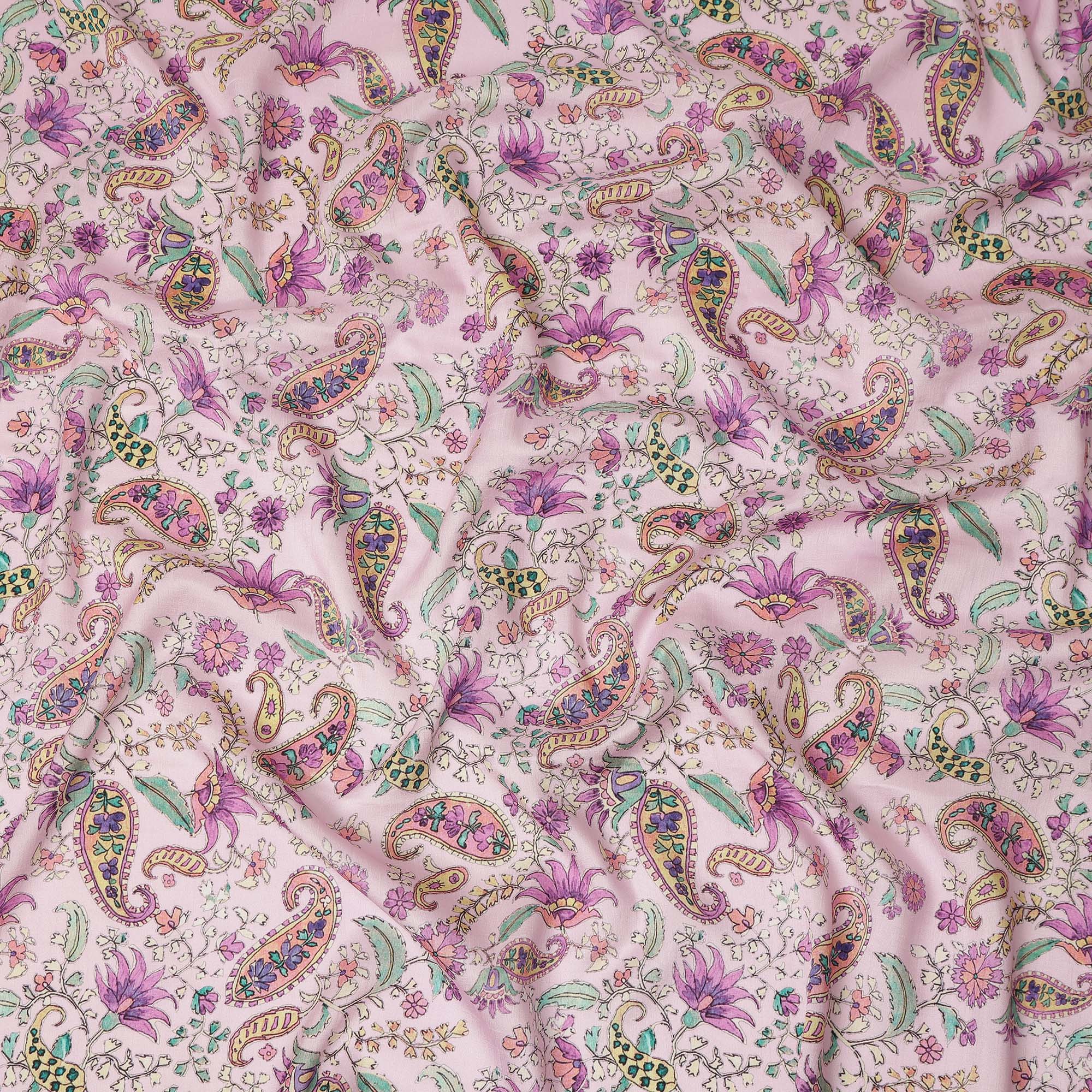 This light pink paisley floral printed viscose fabric with a refined raw silk finish is designed to bring softness, elegance,... Read more Read more