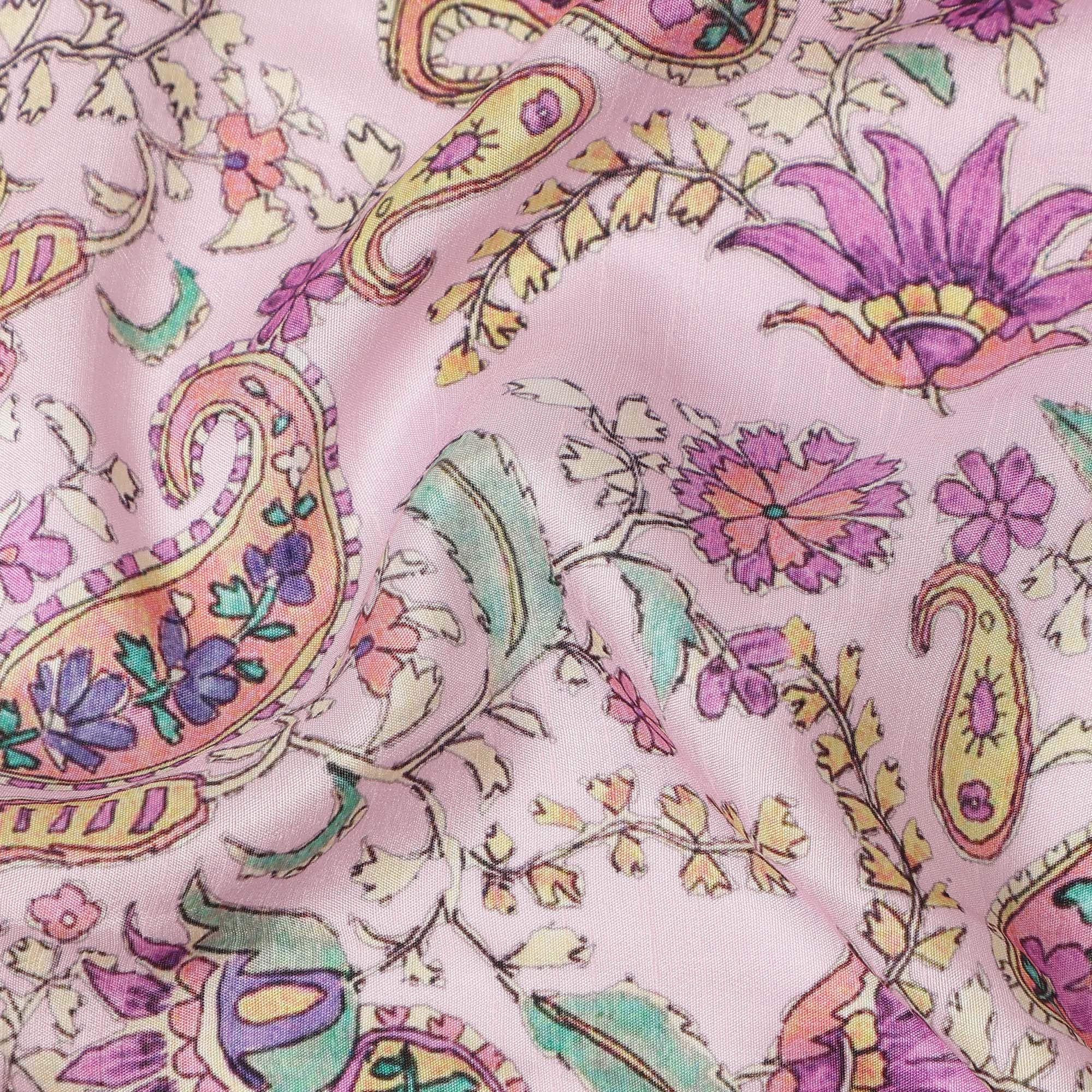 Light Pink Paisley Floral Printed Viscose Fabric Raw Silk Finish Soft Ethnic Dress Material 110 Cms India-D27328