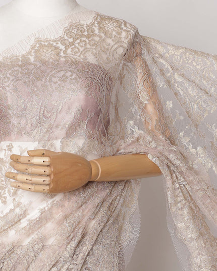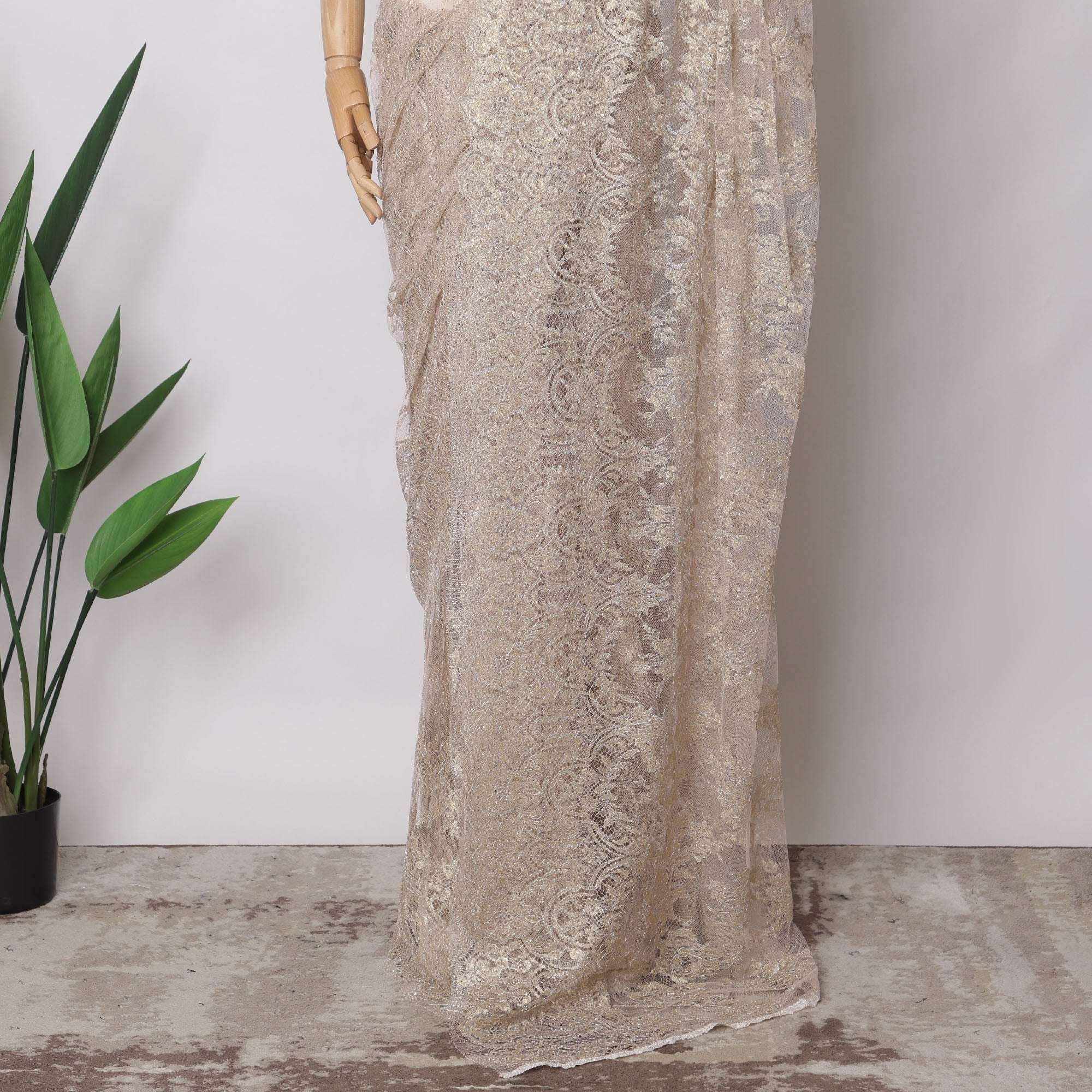 Light Pink Premium French Metallic Chantilly Saree Lace Fabric, 5.5 MetersX110 Cms-D21508