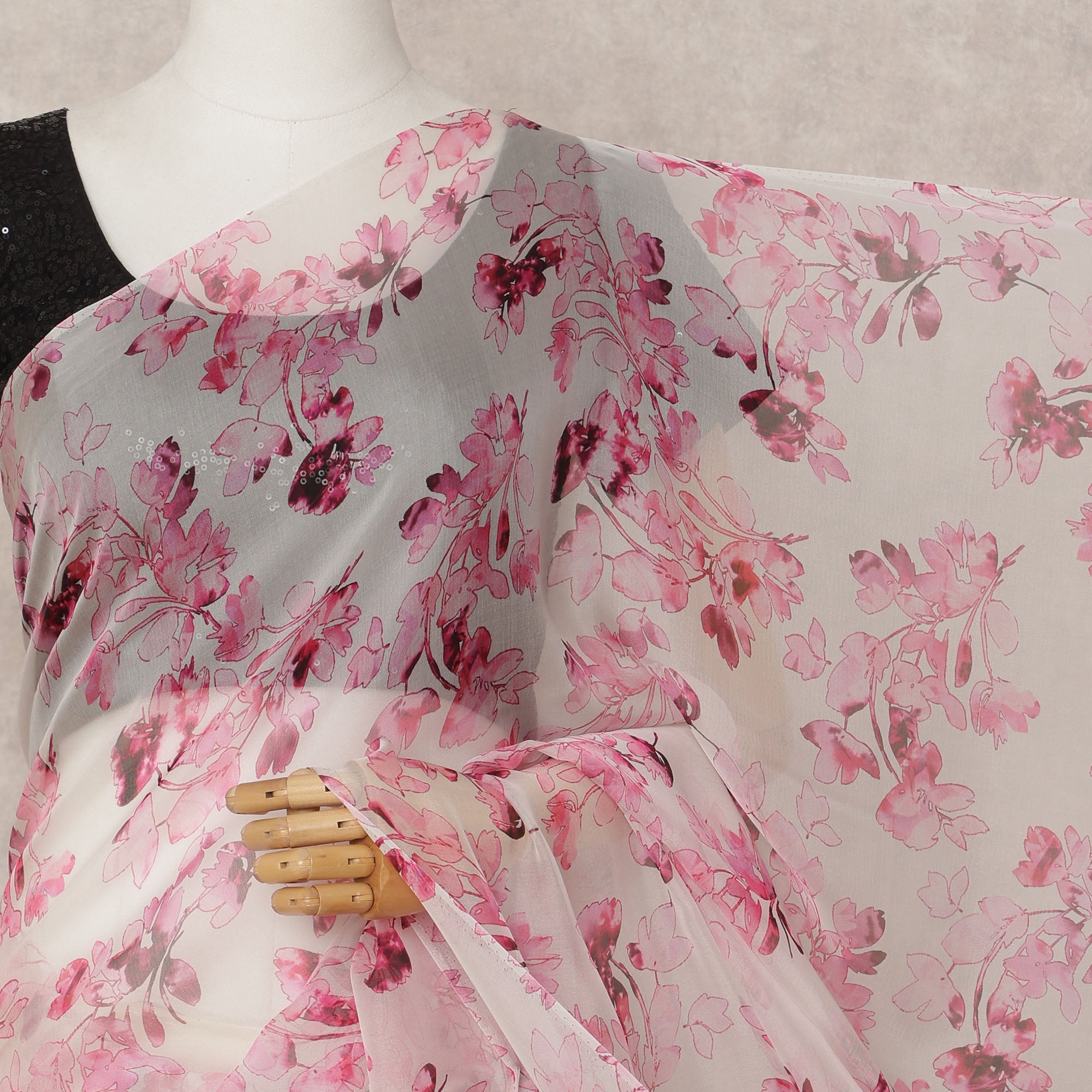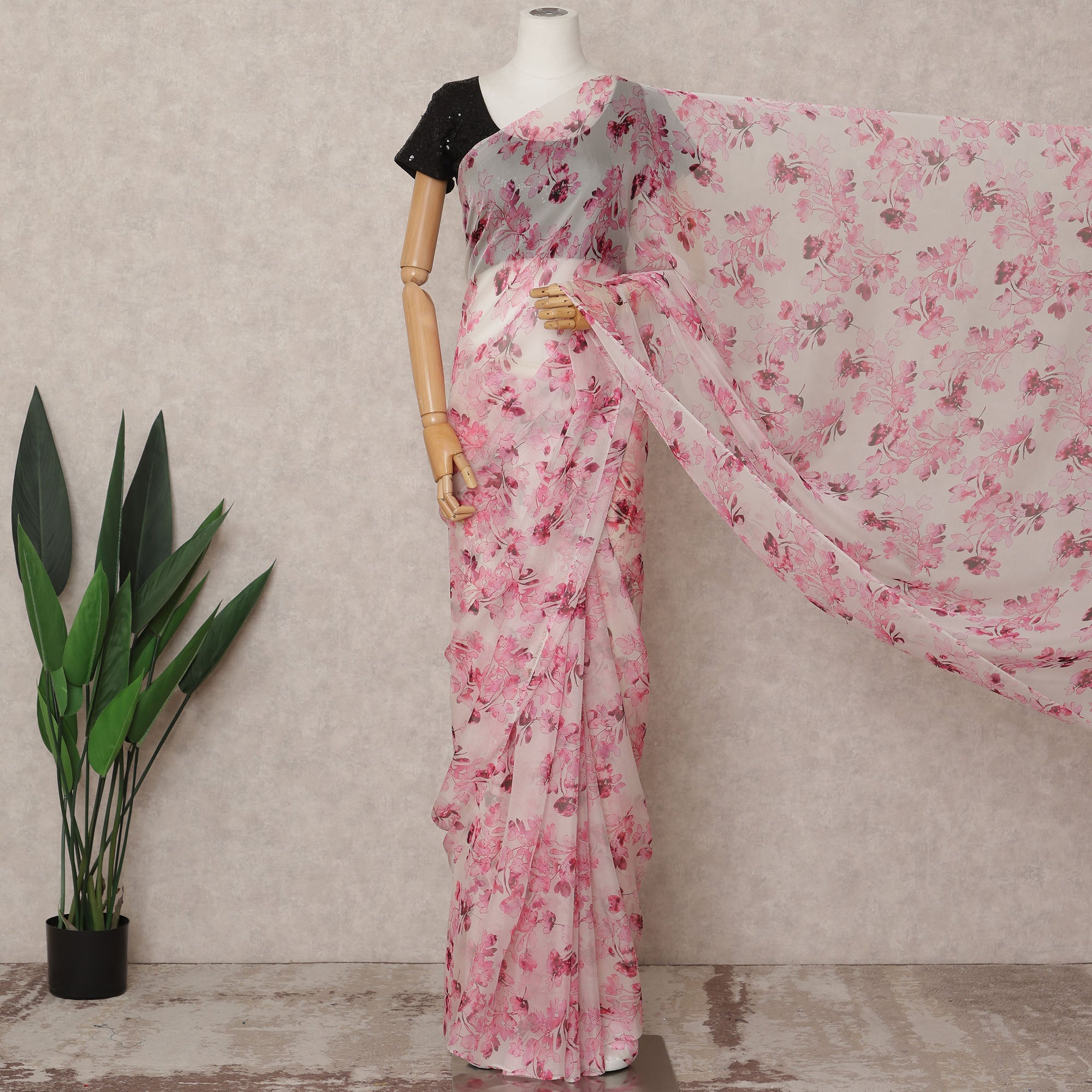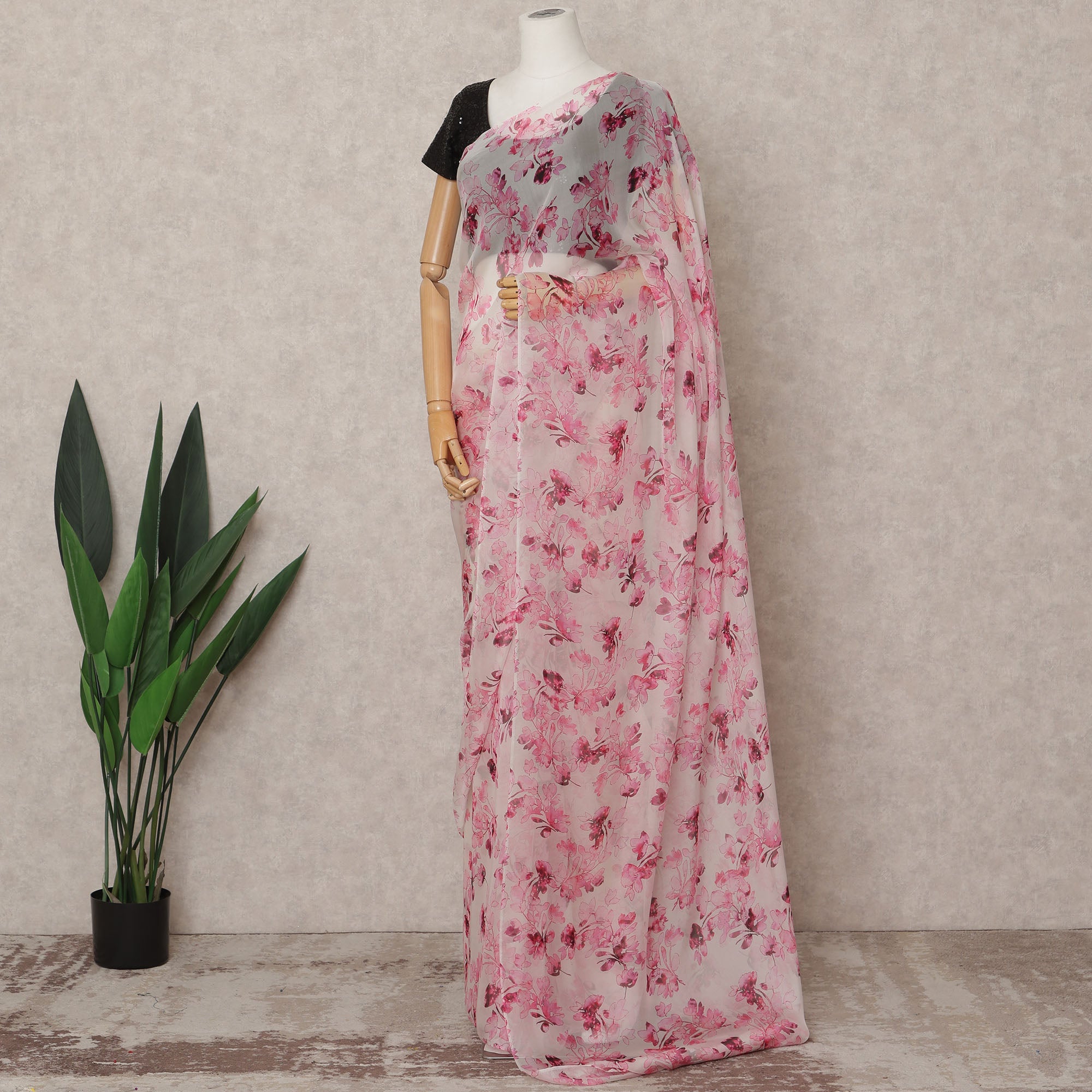 Light Pink Premium Pure Silk Chiffon Floral Printed Saree, 5.5 Mtrs Length, 110 Cms Width, Made in India-D24217