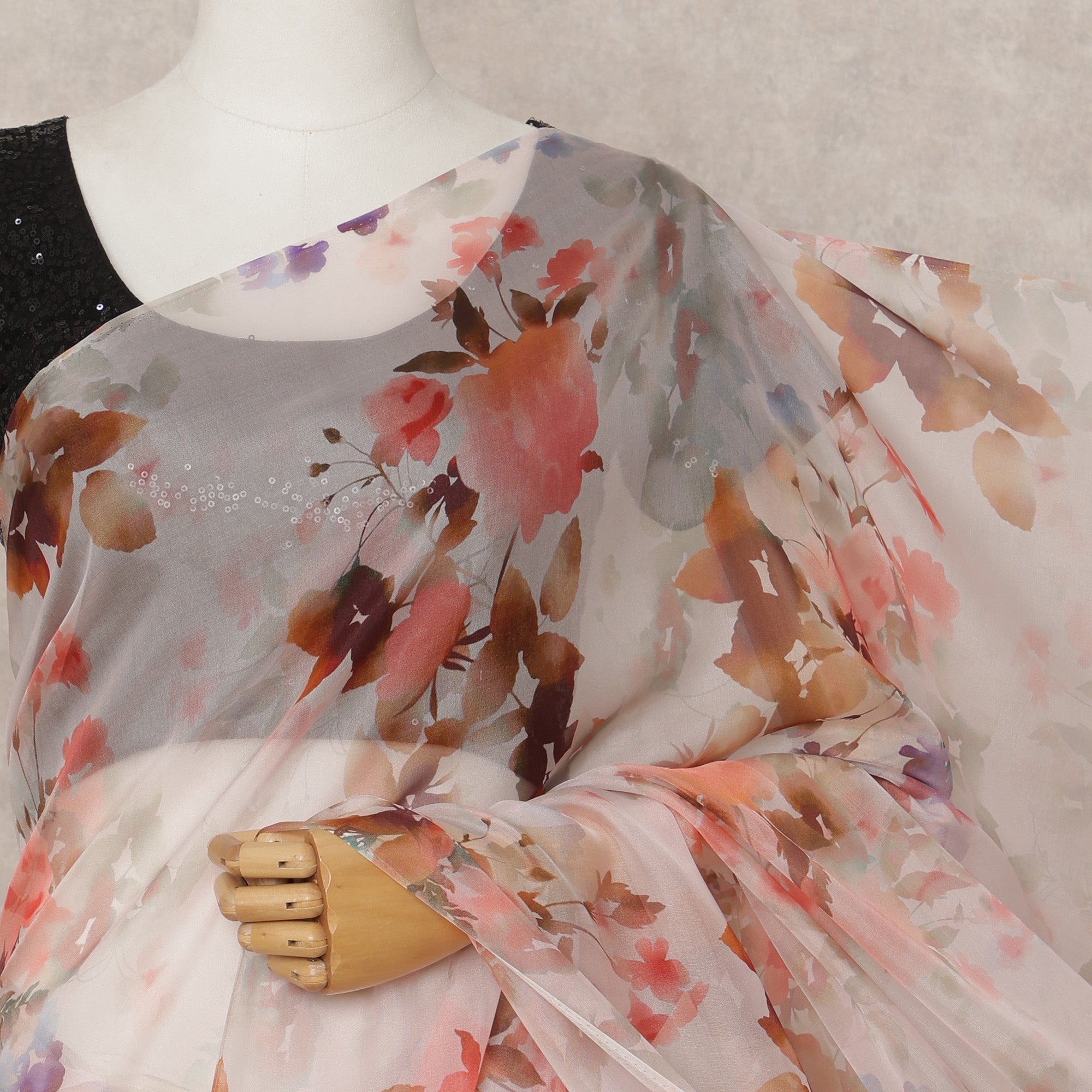 Shop online to own this timeless, feminine floral chiffon saree