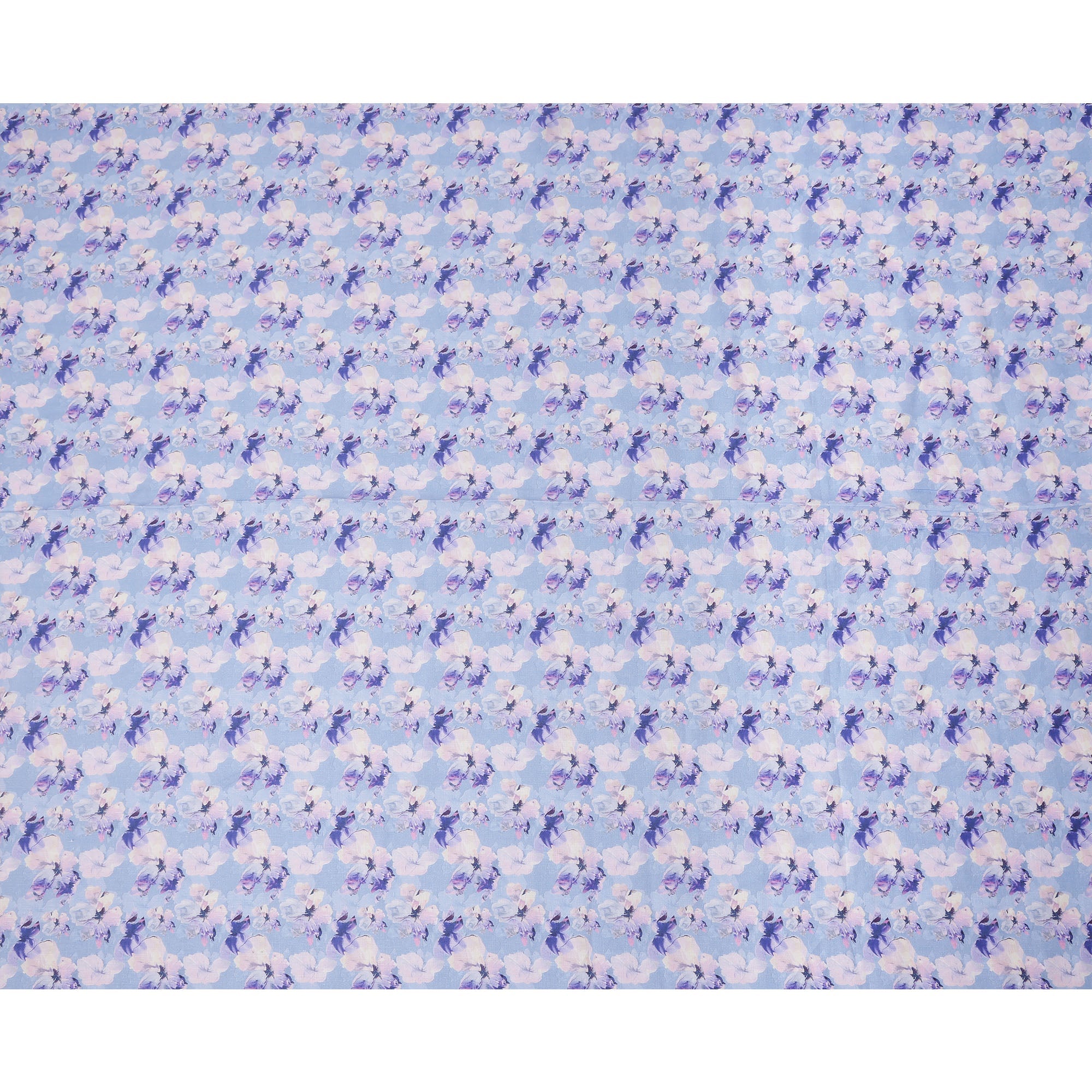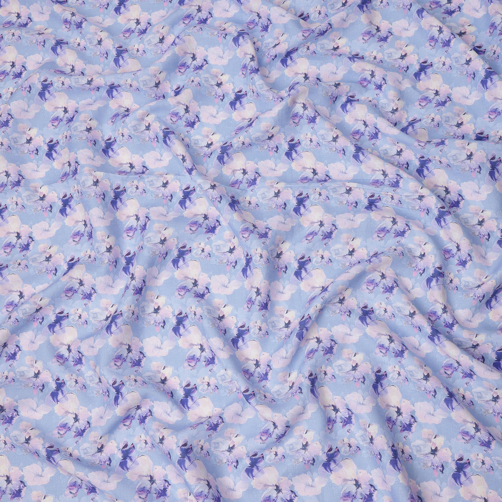 Light Purple Pure Linen Floral Printed Fabric with Purple and White Blossom Design, 140 cms Width, Made in India-D25068