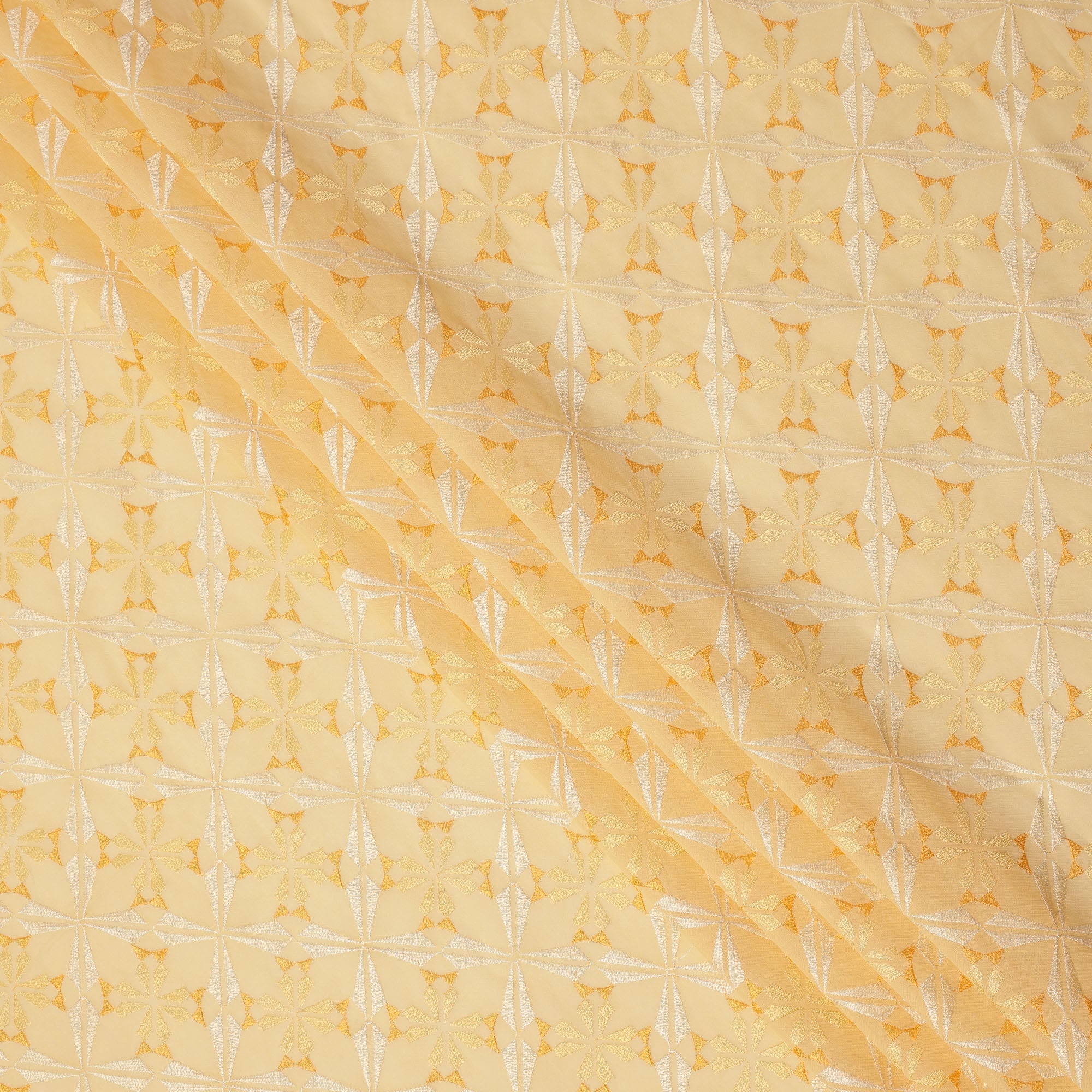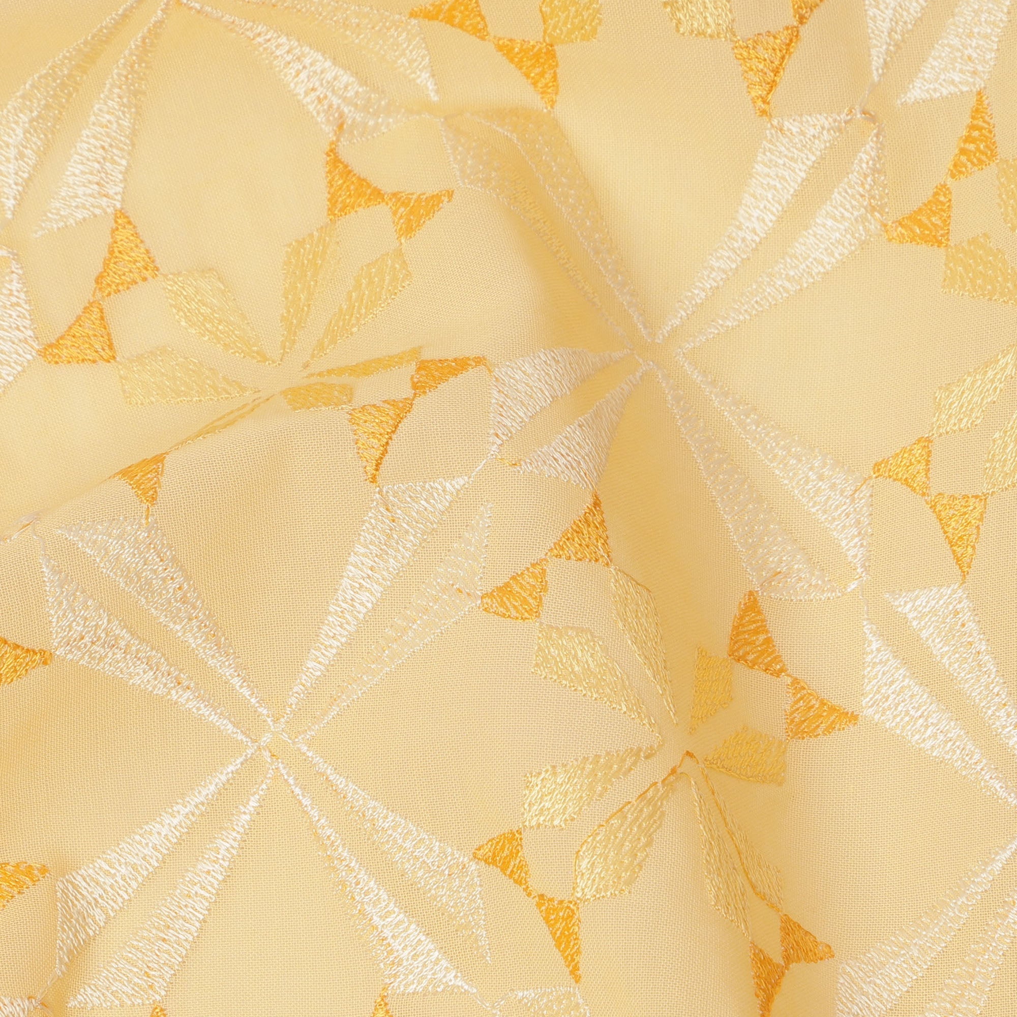 Light Yellow Geometric Floral Pattern Cotton Voile Embroidery Fabric, 110 cm Width, Made in India-D24678