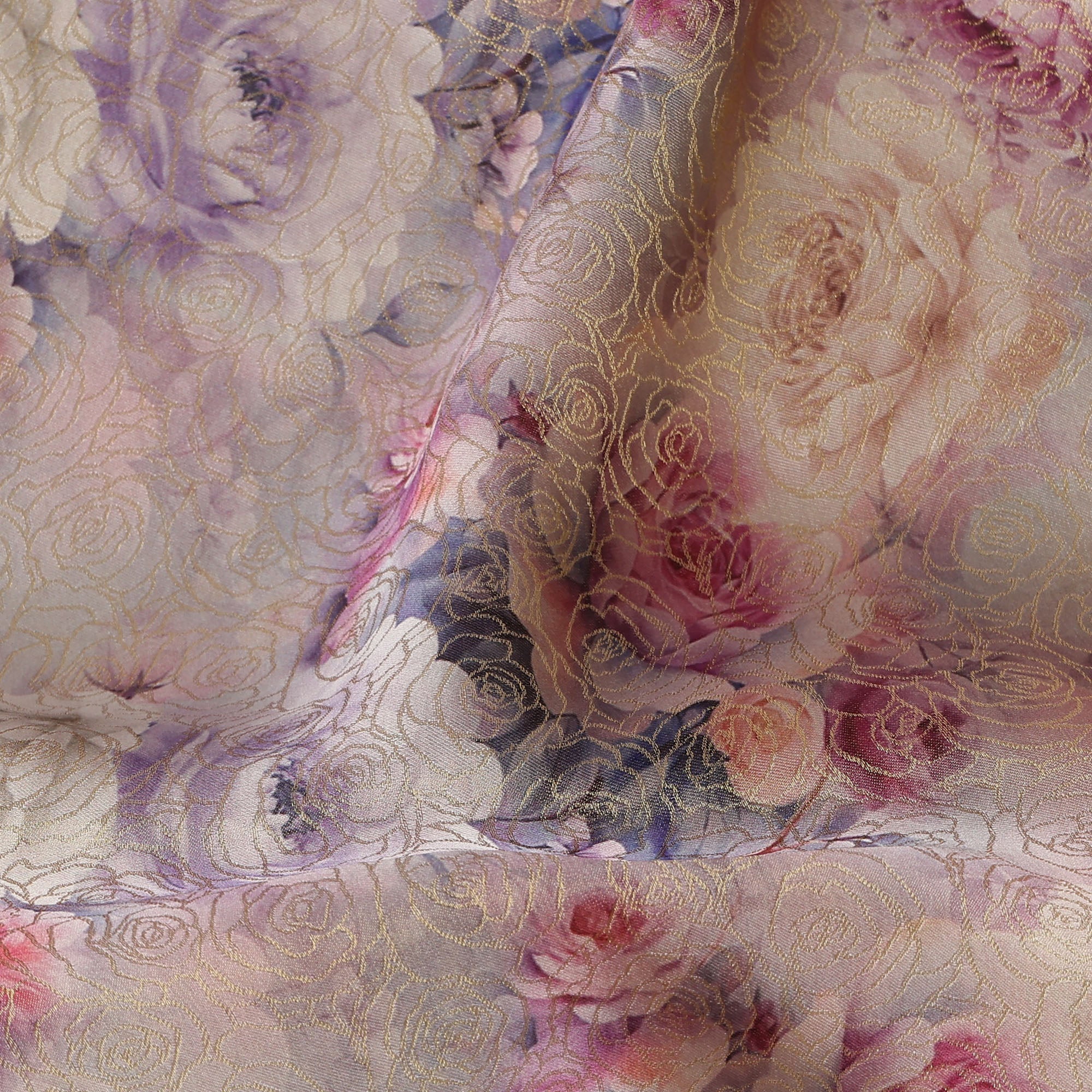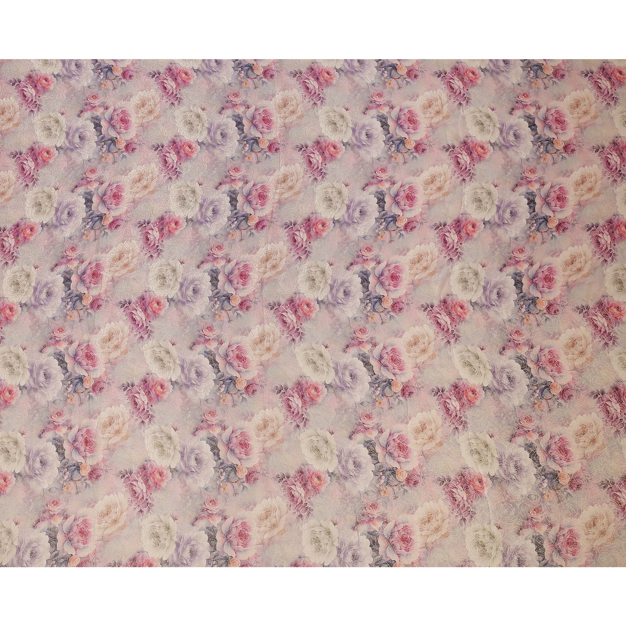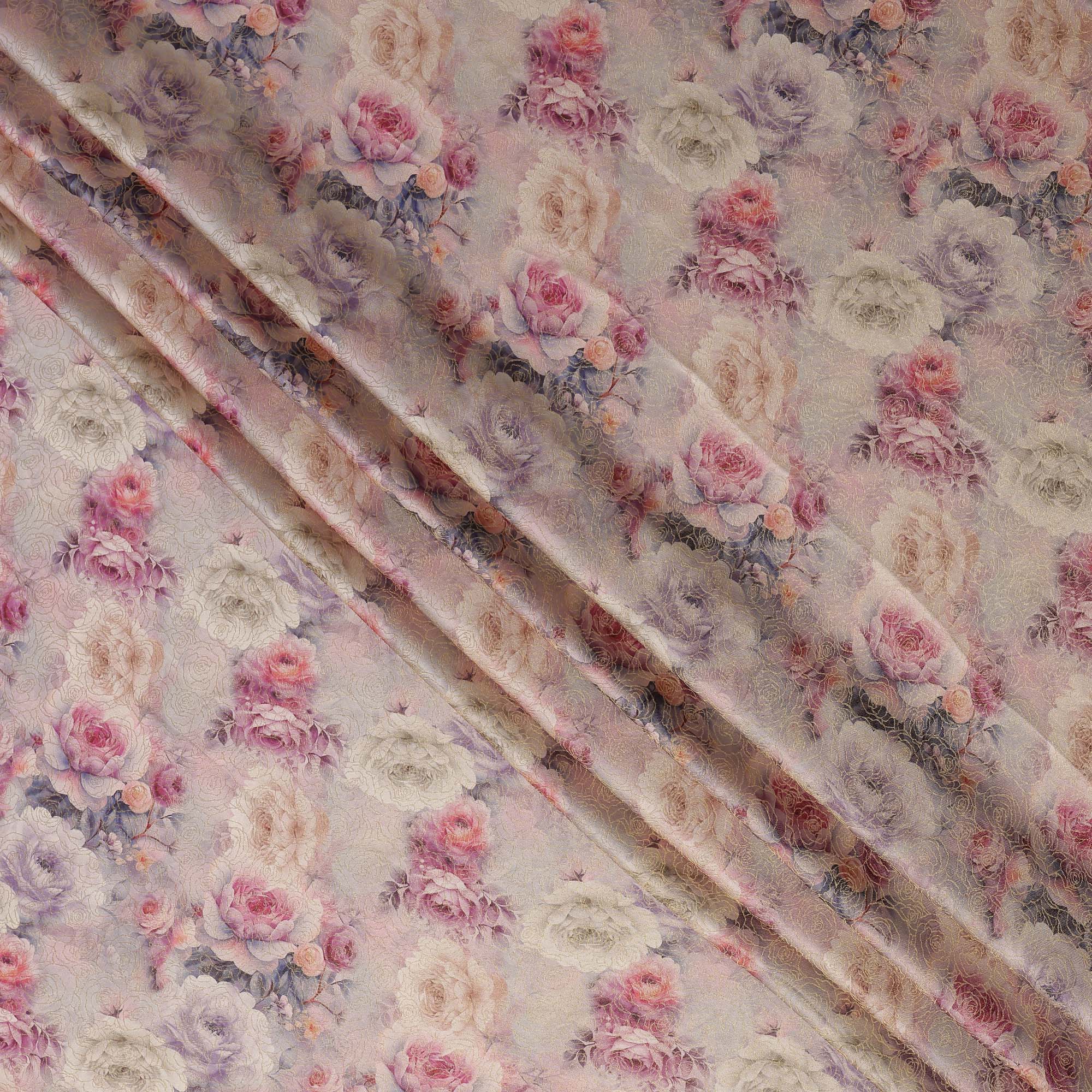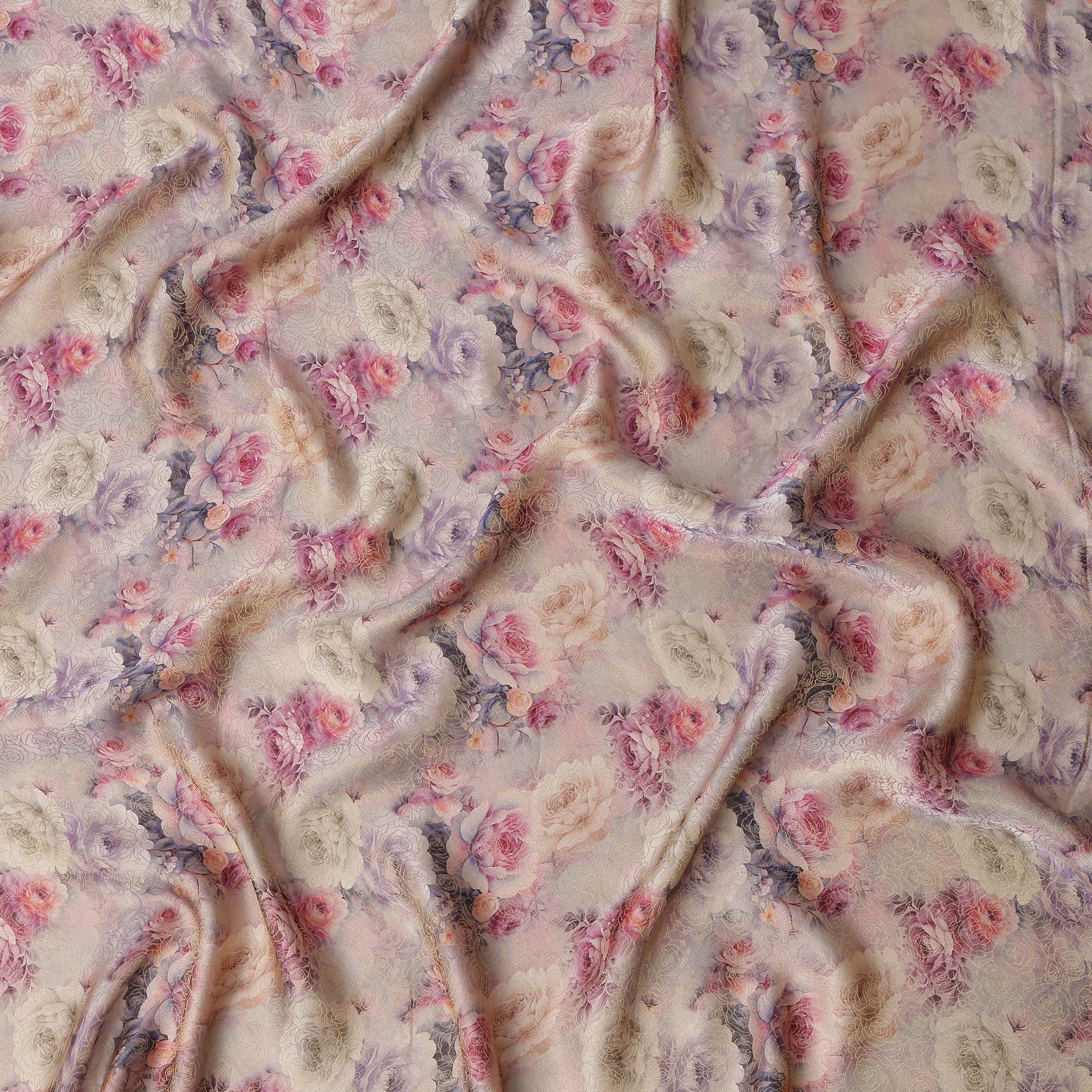 Lilac Pink Floral Printed Viscose Jacquard Metallic Fabric, 110 Cms Width, Made in India-D26209