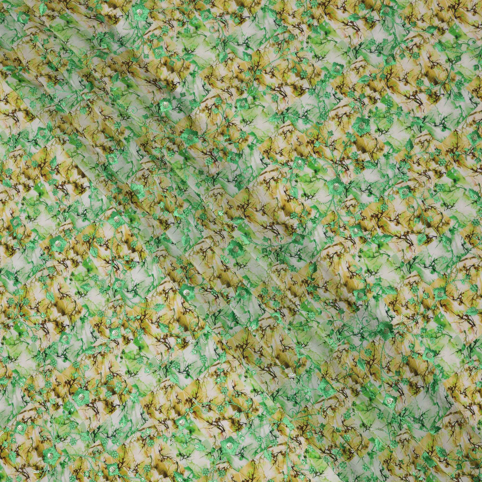 Lime Green and Yellow Abstract Floral Digital Print Viscose Crepe Fabric, 110 Cms Width, Made in India-D23622