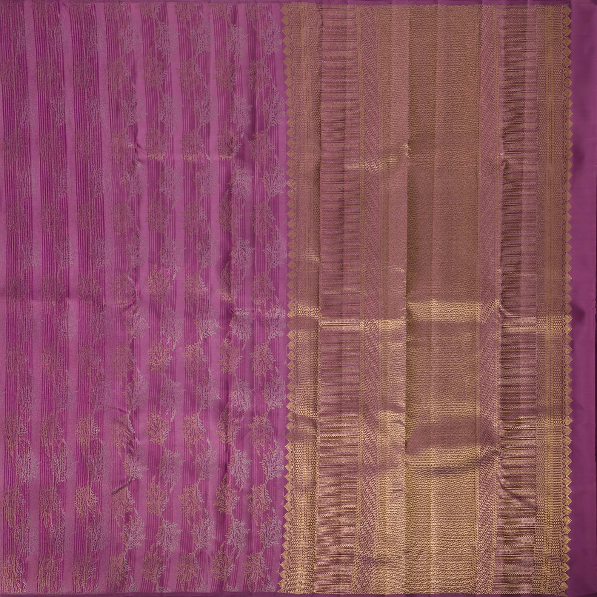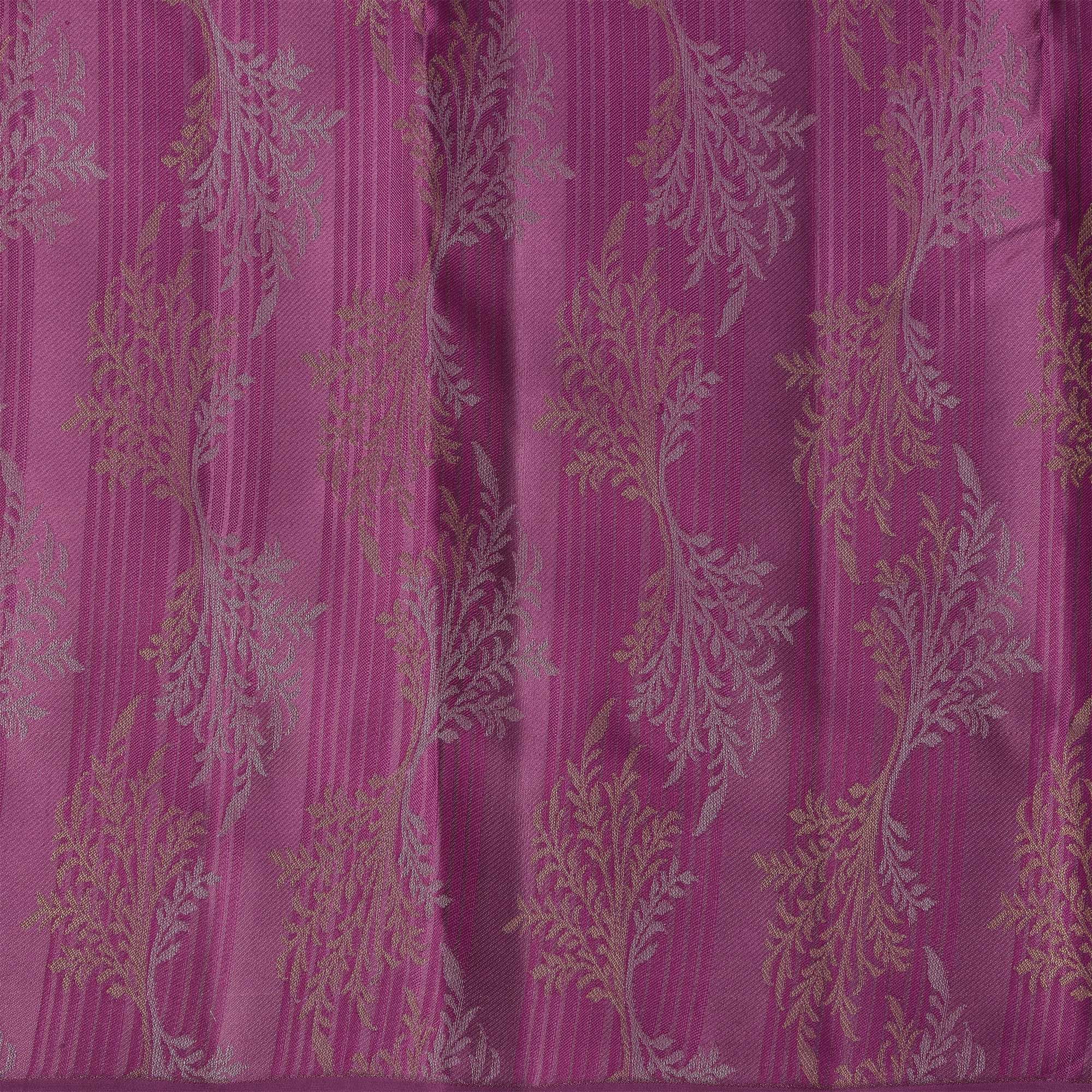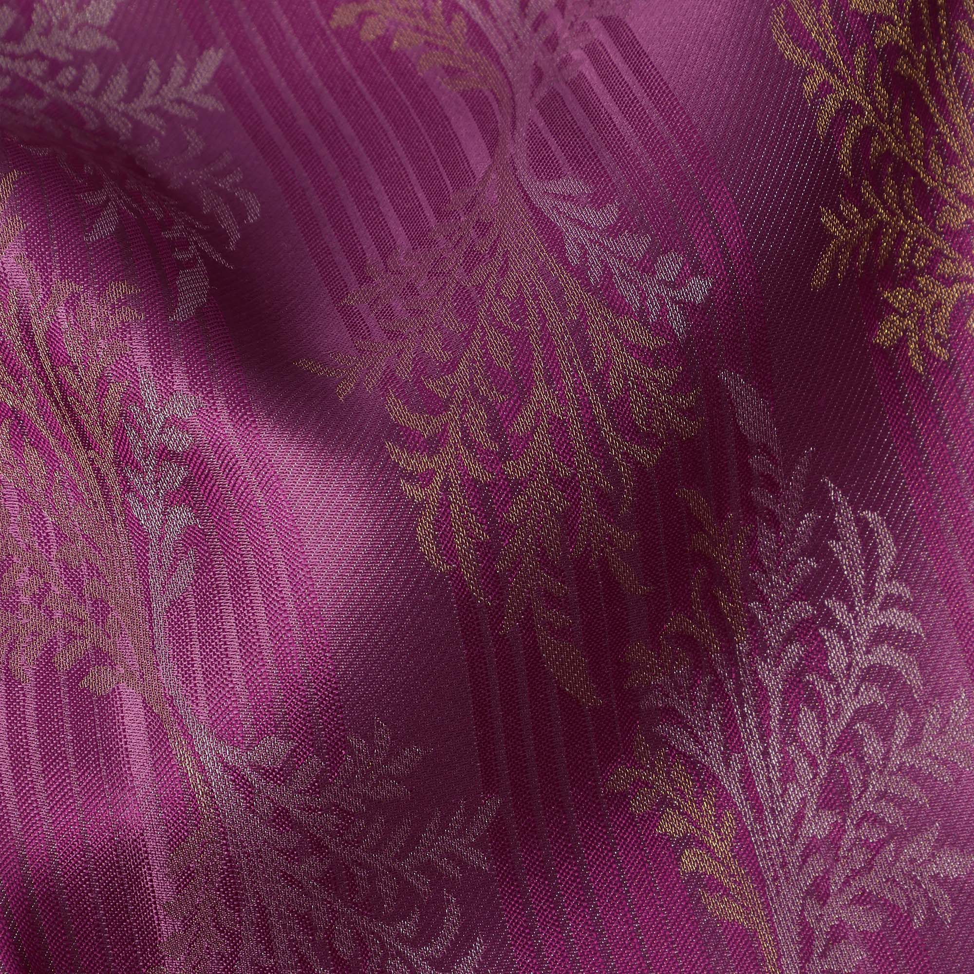 Magenta Pure Tissue Silk Kanjeevaram Saree with Handwoven Horizontal Zari Motifs and Contrast Gold Border, 5.5 Meters with Blouse Piece, Originating from India-D22710