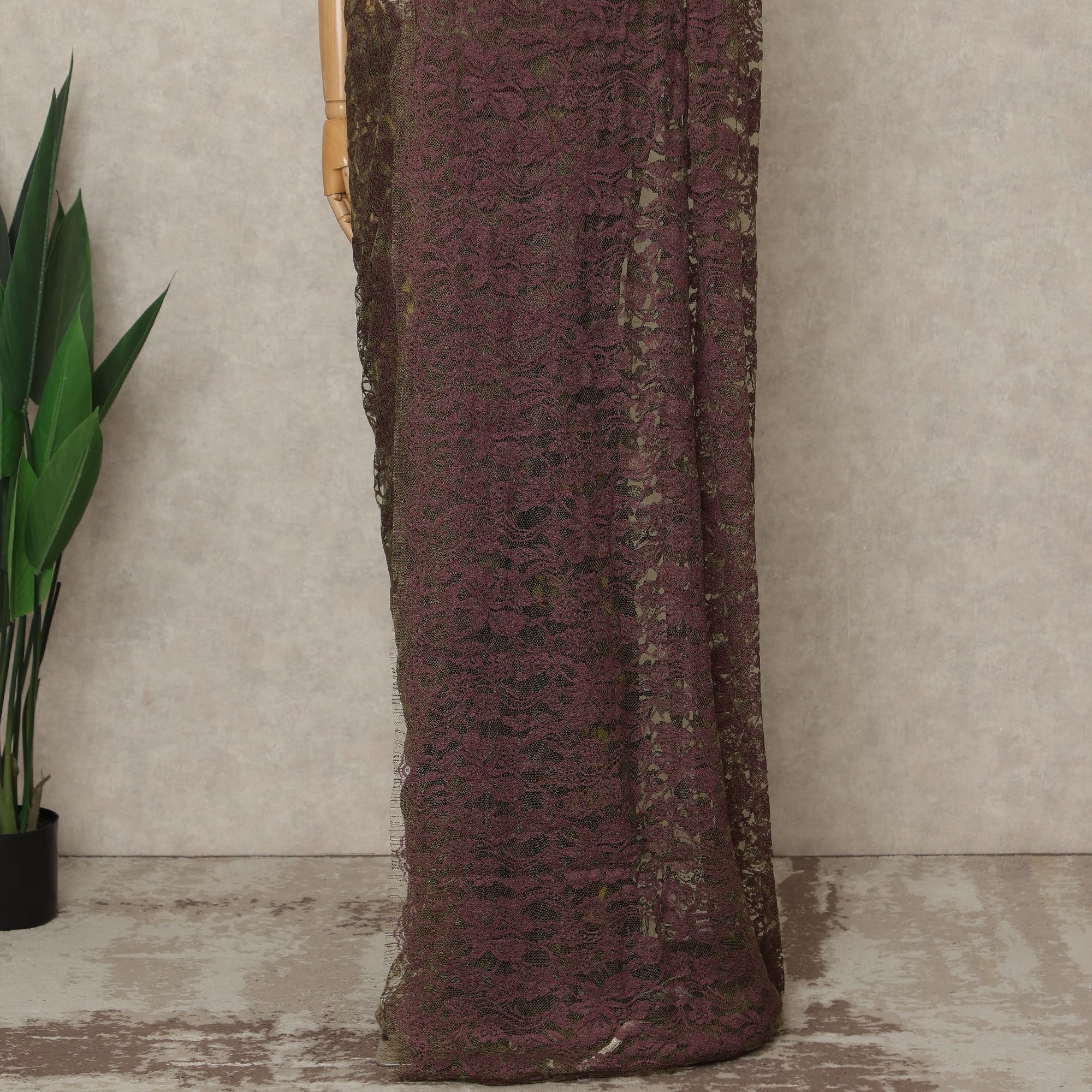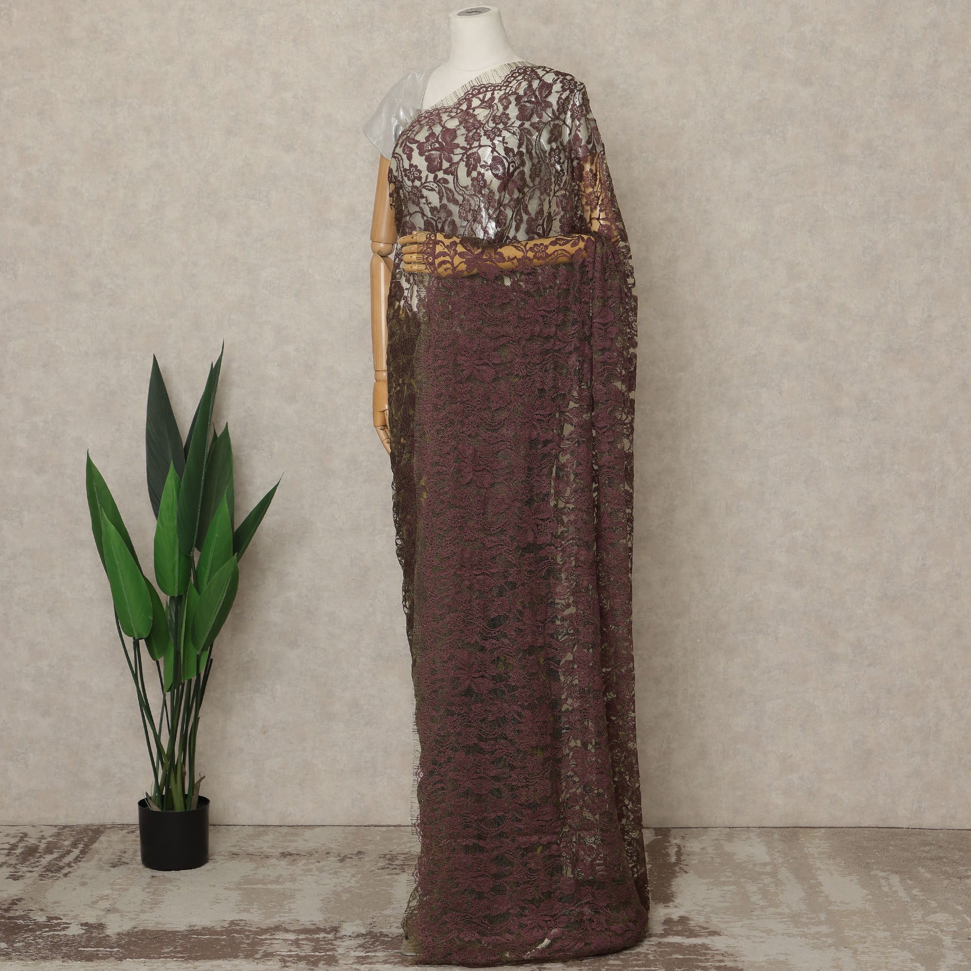 Maroon-Green Premium French 2 Tone Chantilly Saree Lace, 5.5 Mtrs Length, 110 Cms Width, Crafted in France -Blouse Not Included-D26716