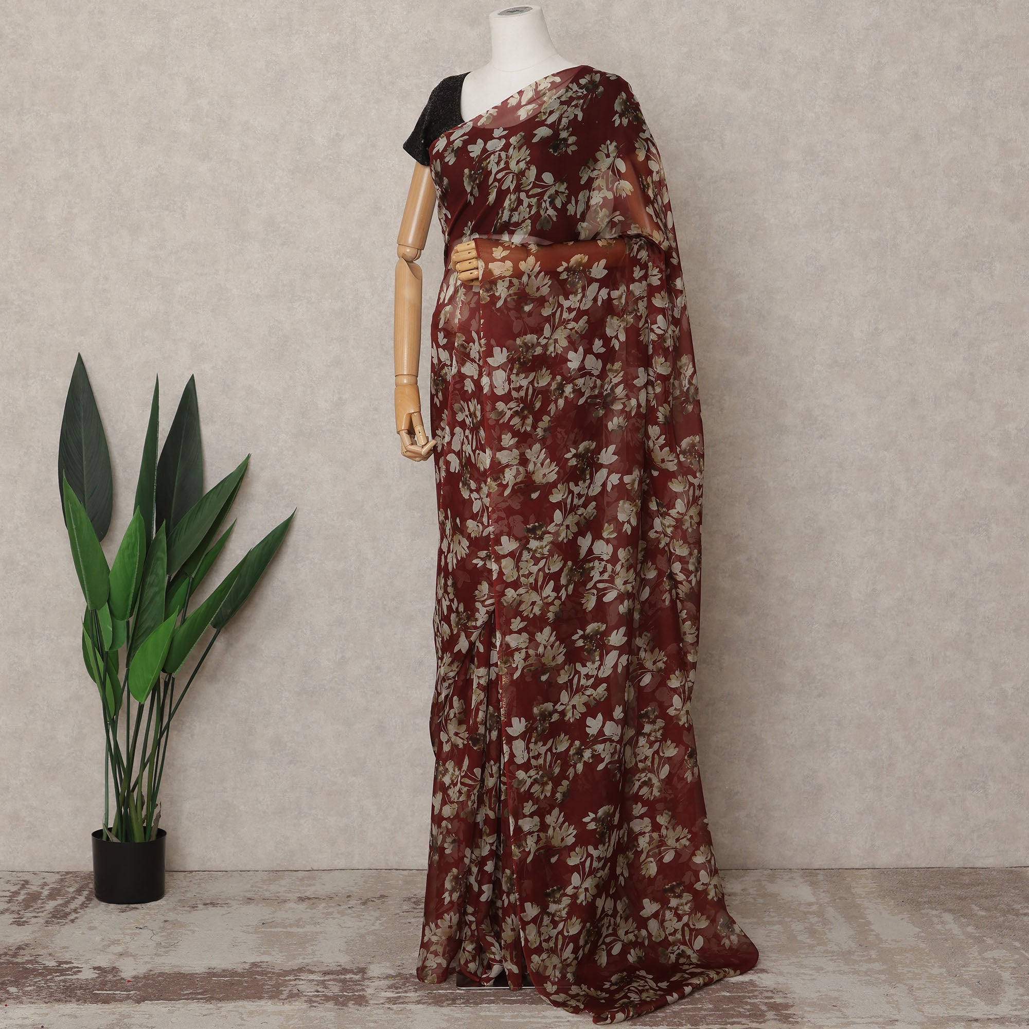 Maroon Premium Pure Silk Chiffon Floral Printed Saree, 5.5 Mtrs Length, 110 Cms Width, Made in India-D24216