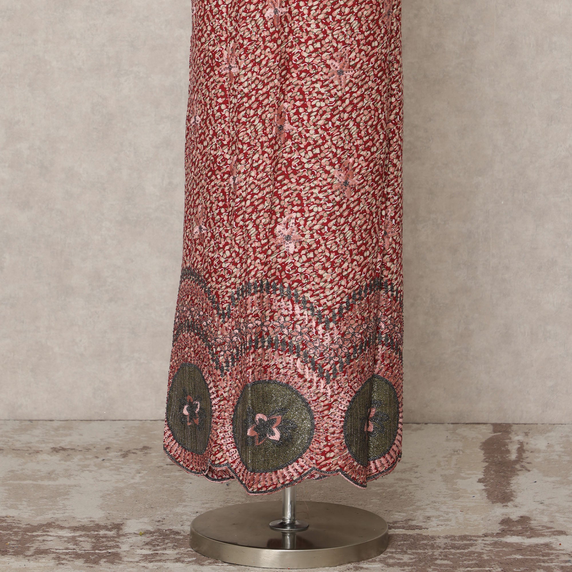 • Sale -75% Maroon Printed Blended Cotton Fabric with Olive & Pink Embroidered Border, 130 Cms Width, 3.0 Mtrs Length, Made in India-D24139