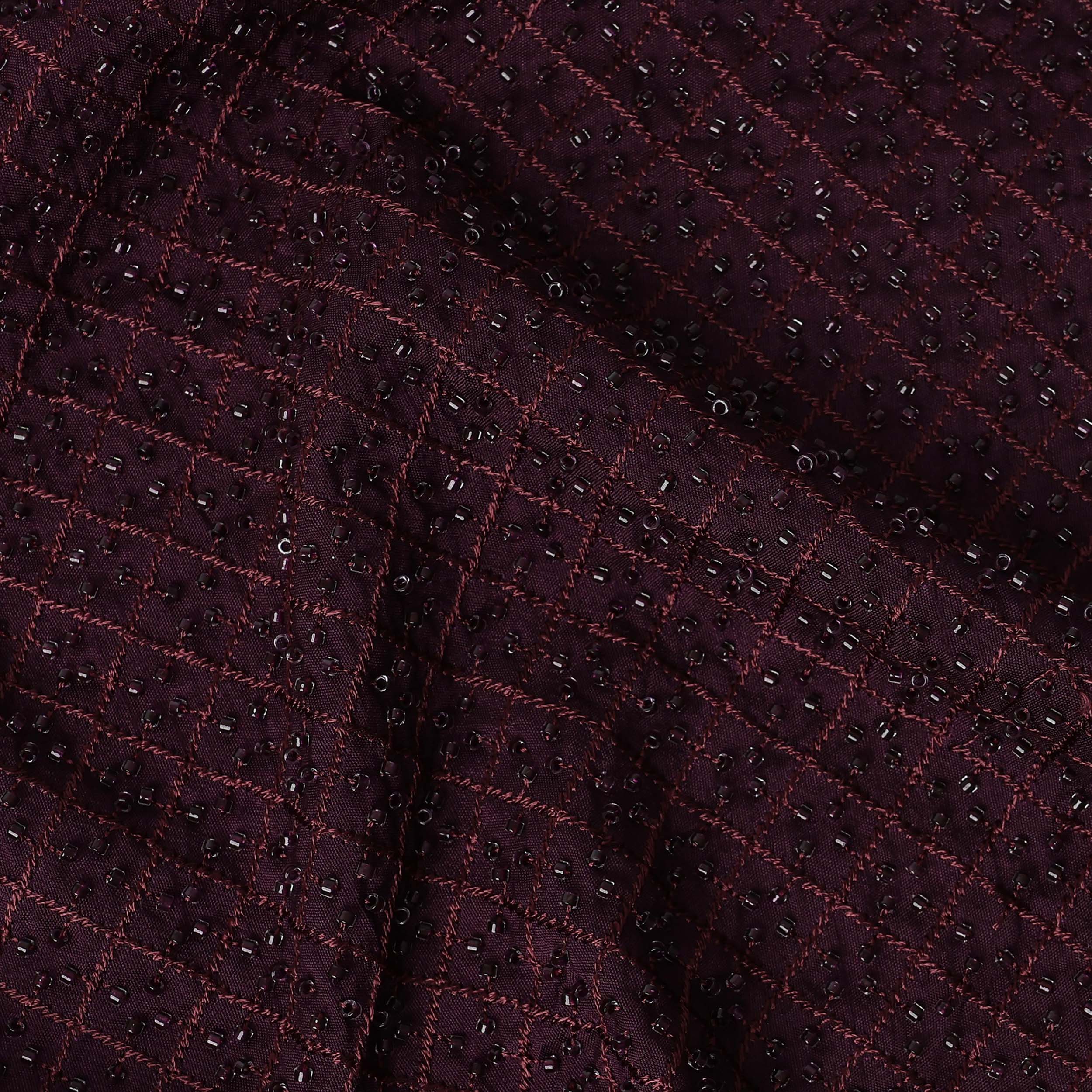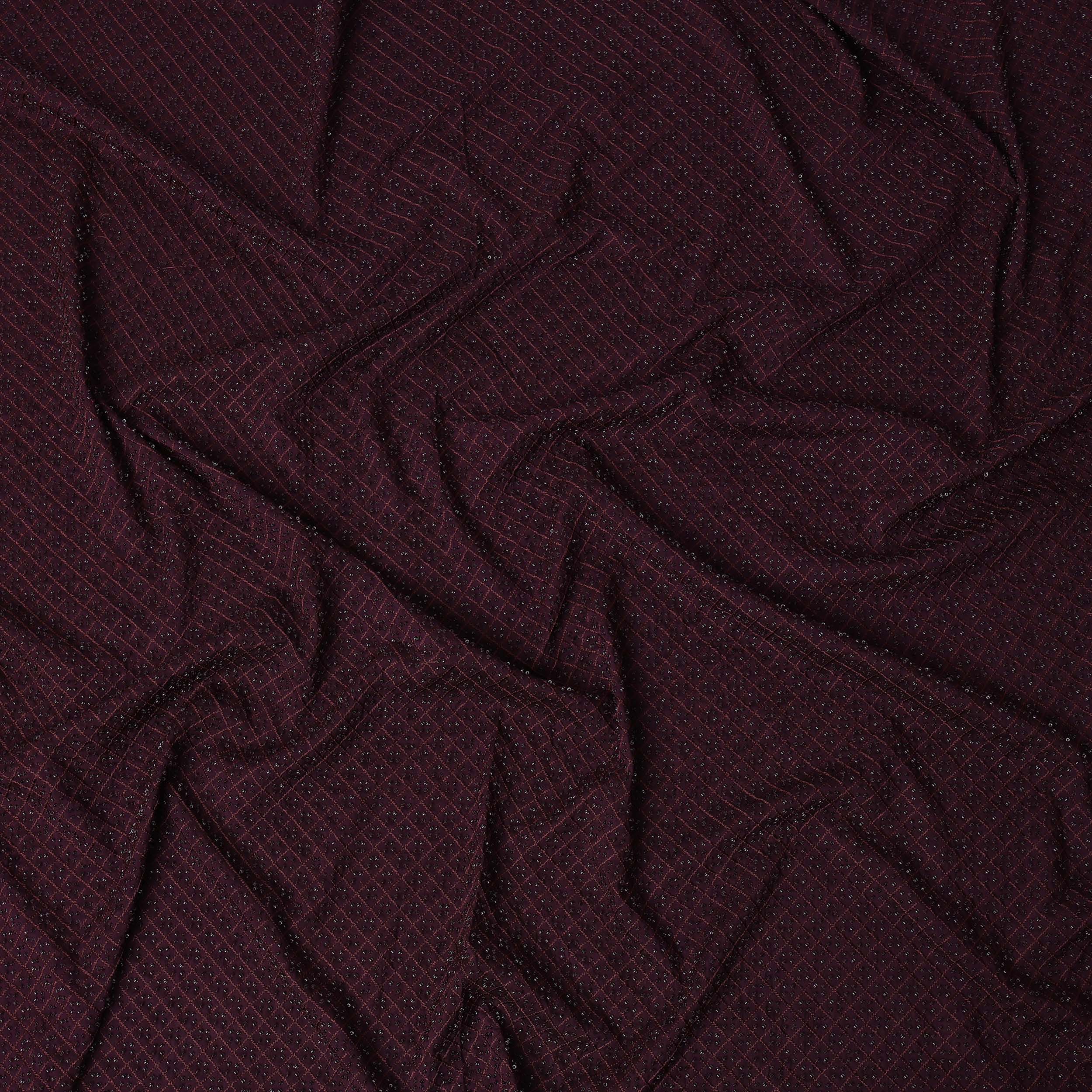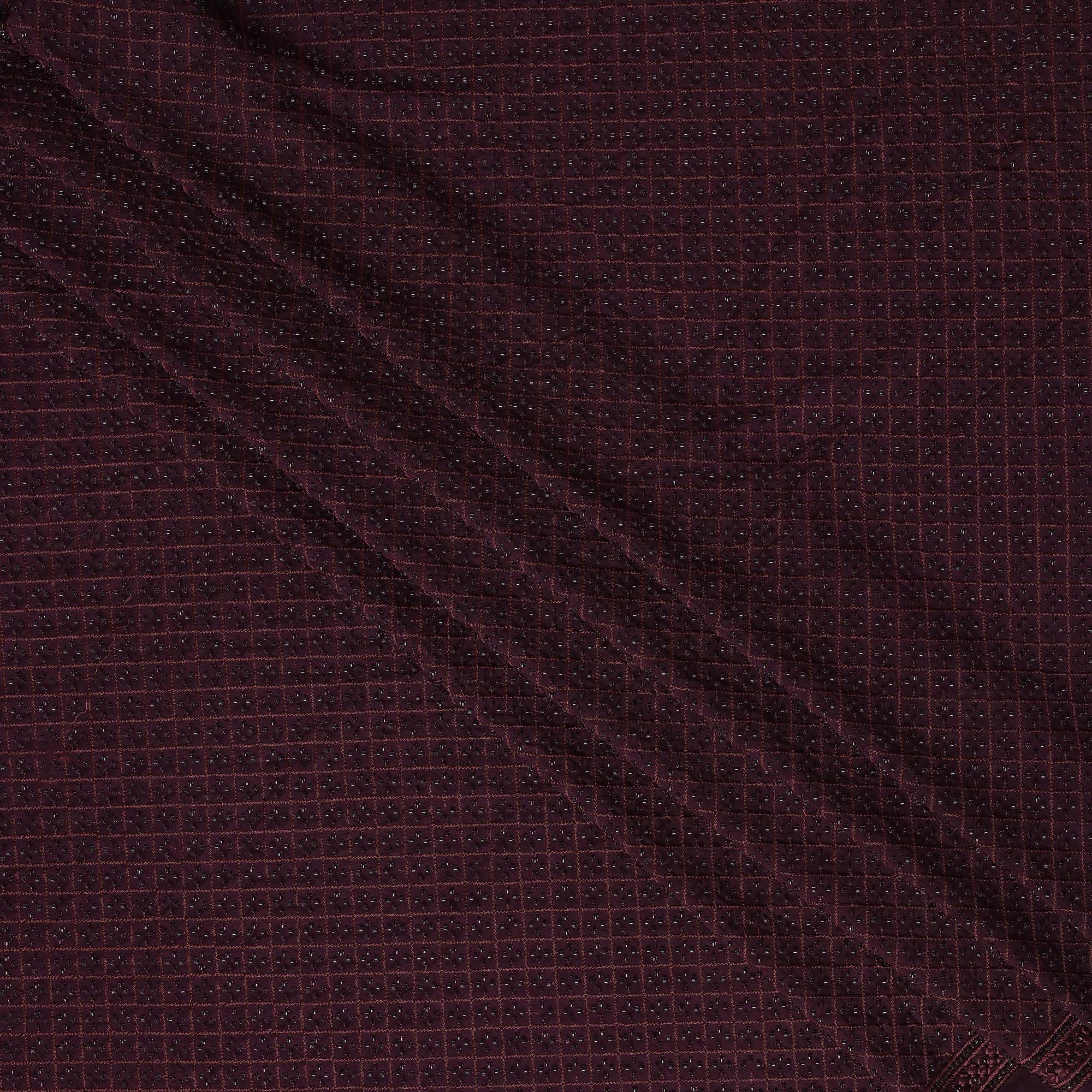 Maroon synthetic viscose fabric with elegant self-embroidered diamond pattern