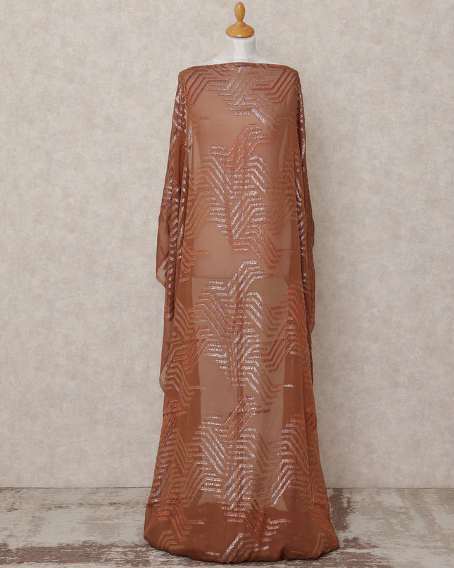 Maroon Sudanese Thobe Fabric in Pure Silk Chiffon with Metallic Lurex, 4.5 Meters, 110 cm Width-D20417
