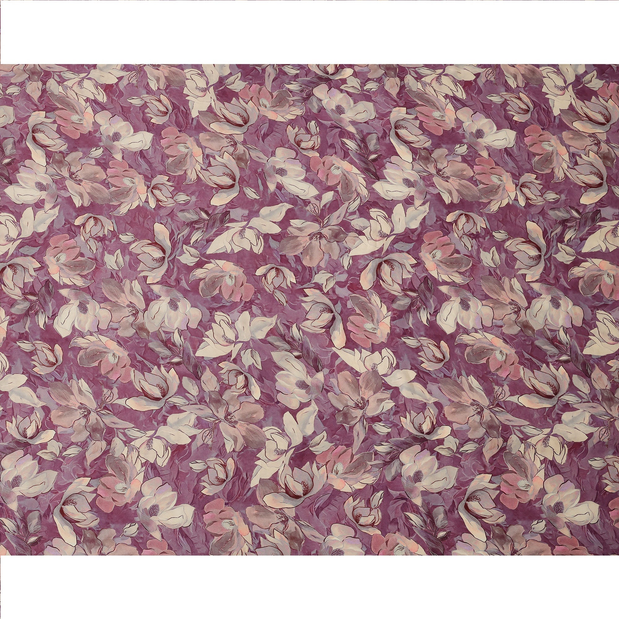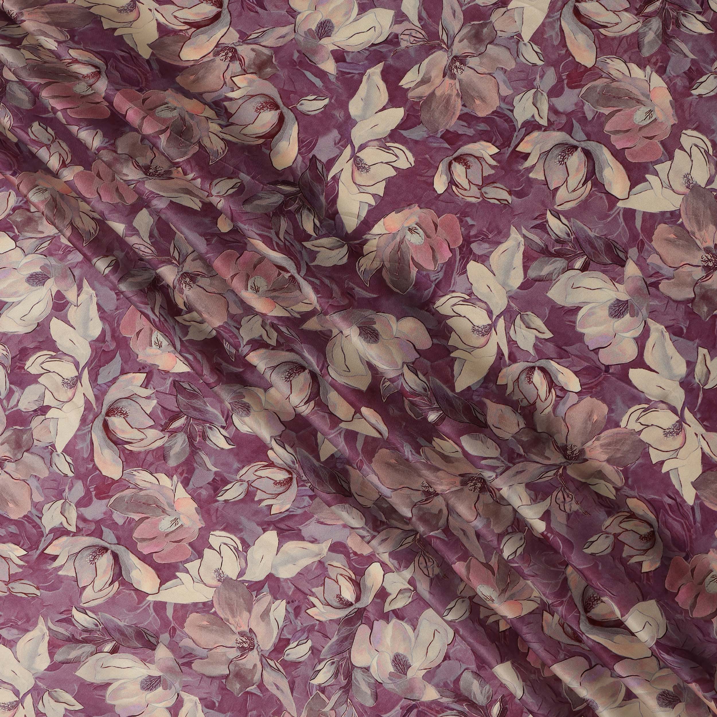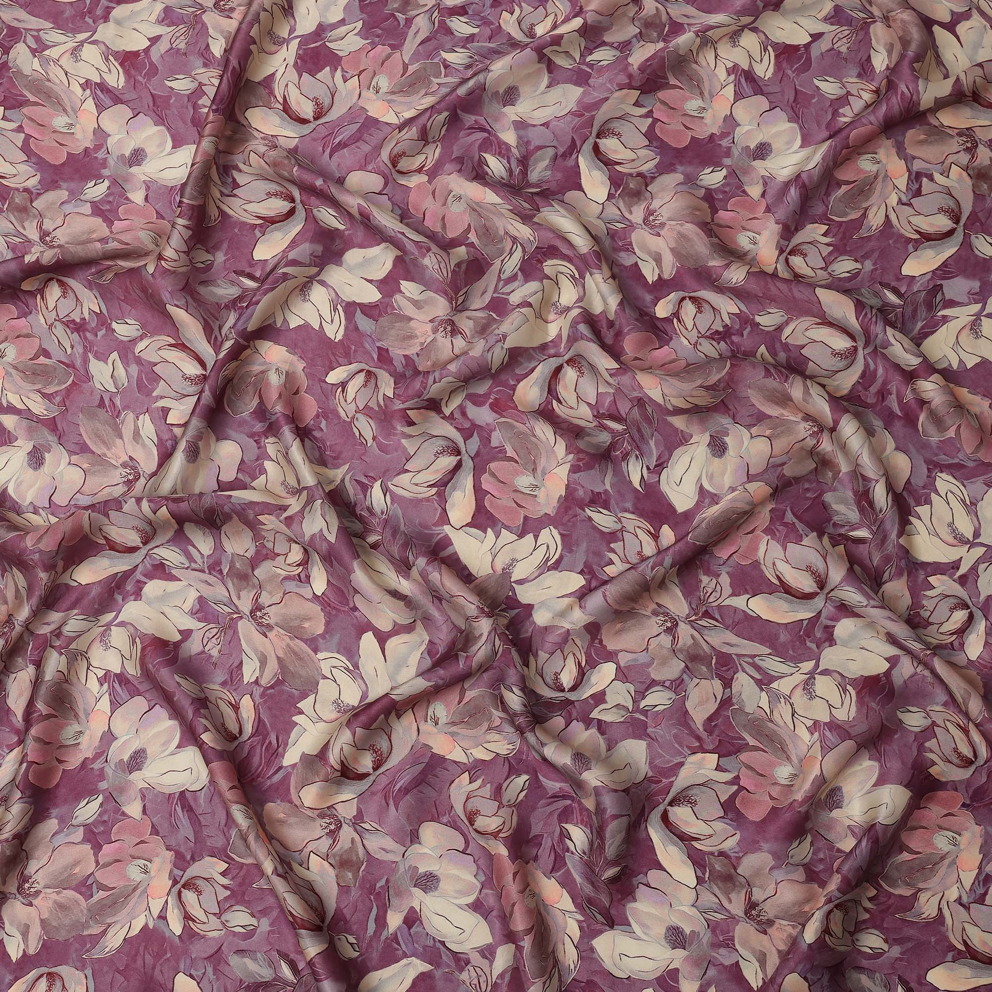 Premium viscose modal satin fabric with mauve base and beige floral print