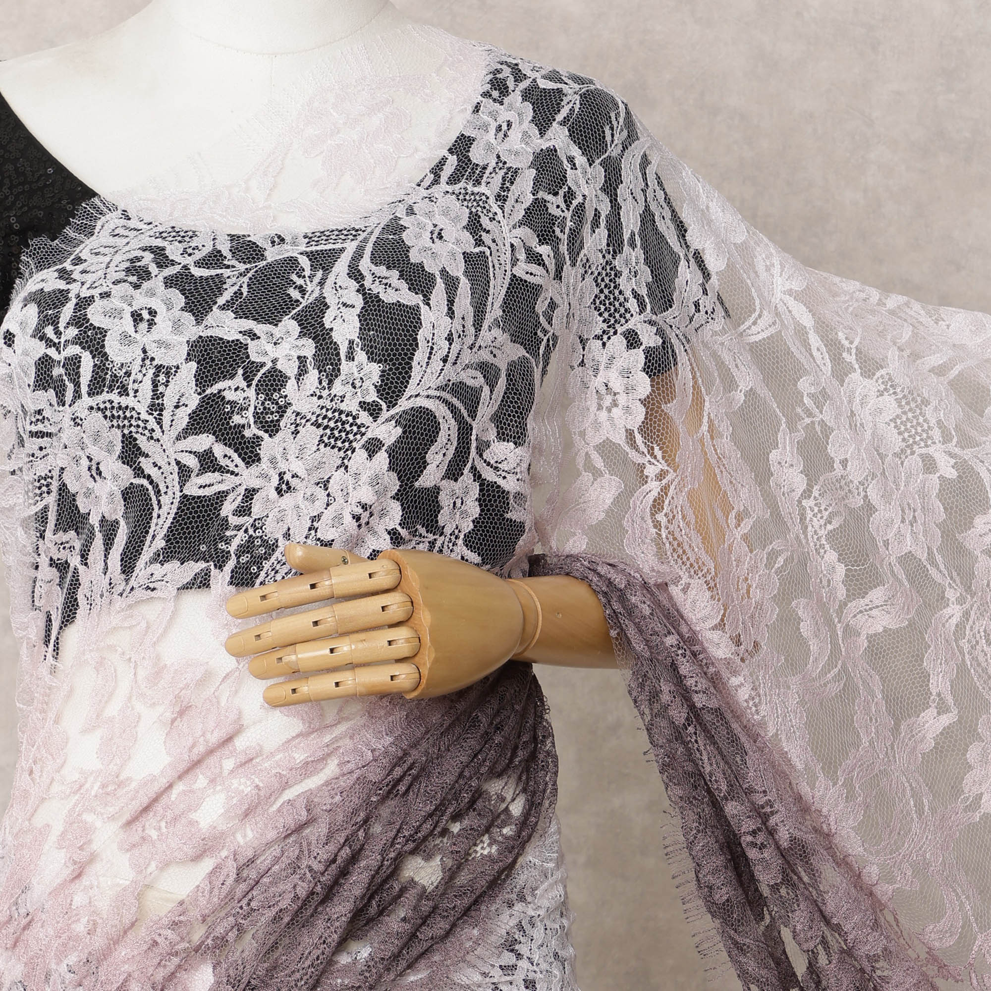Mauve & Lavender Ombre Premium French Chantilly Lace Saree – 5.5 Meters-D21886