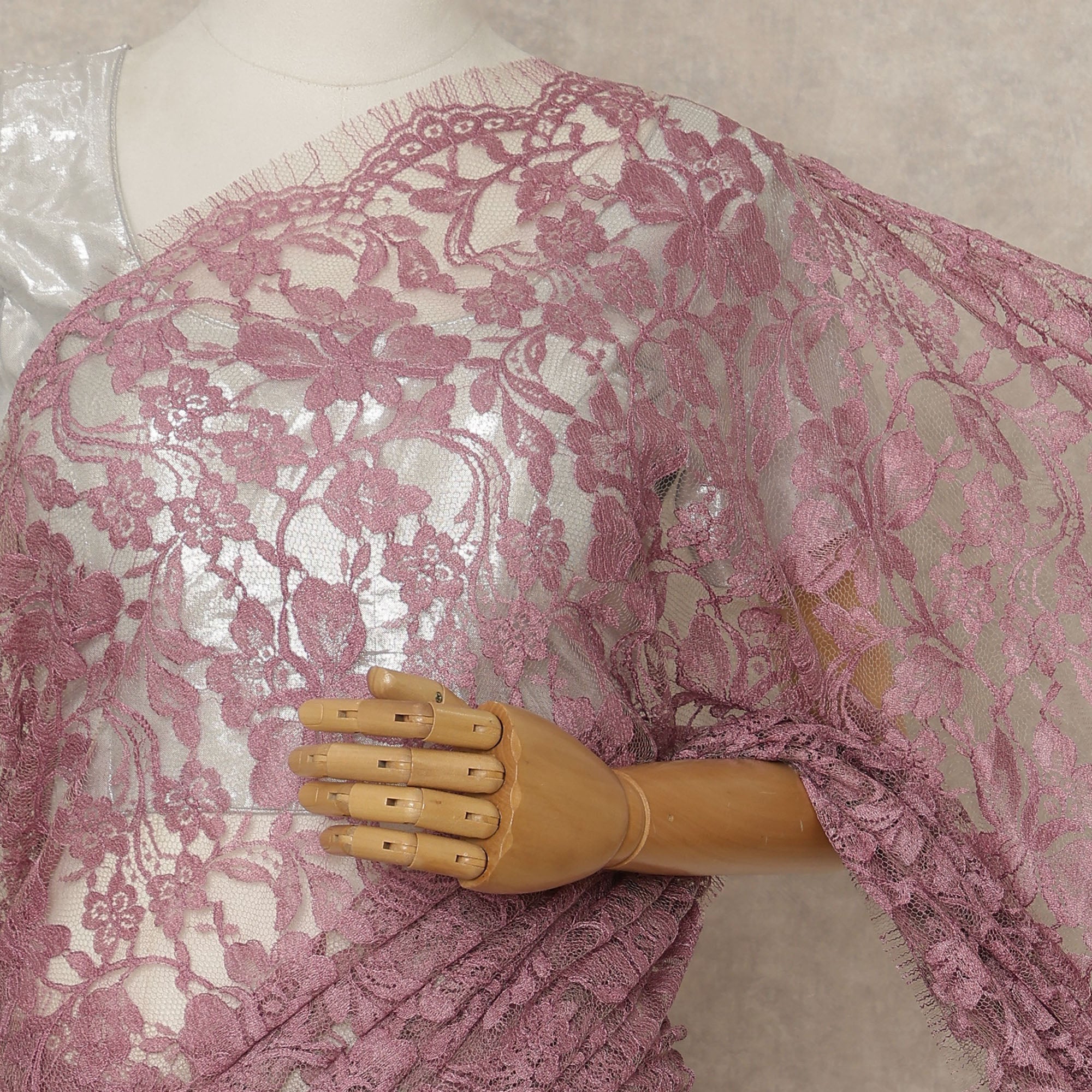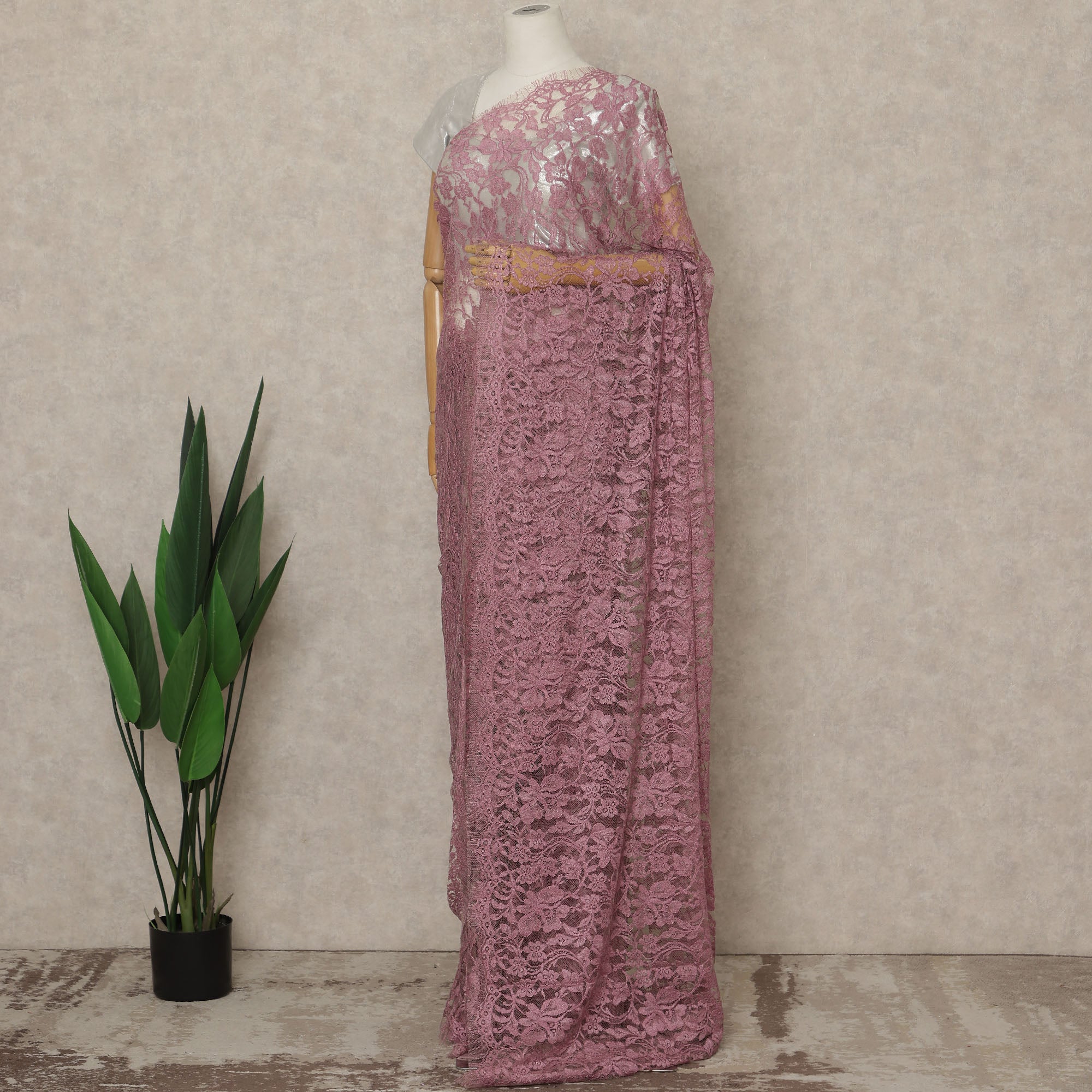 Mauve Premium French Chantilly Saree Lace, 5.5 Mtrs Length, 110 Cms Width, Crafted in France -Blouse Not Included-D26712