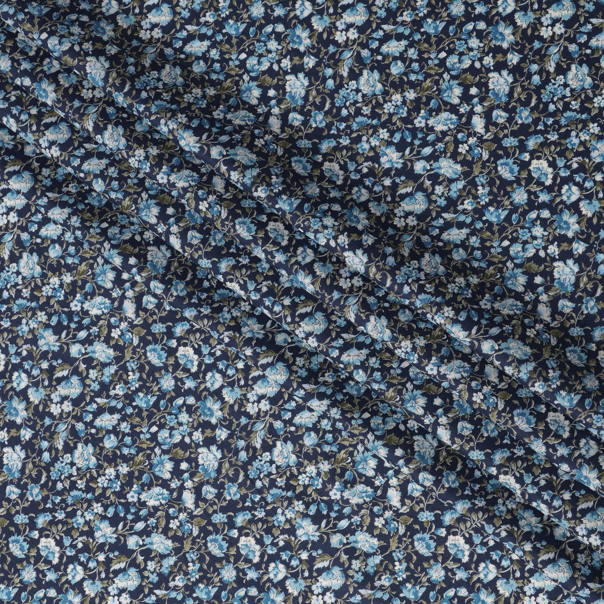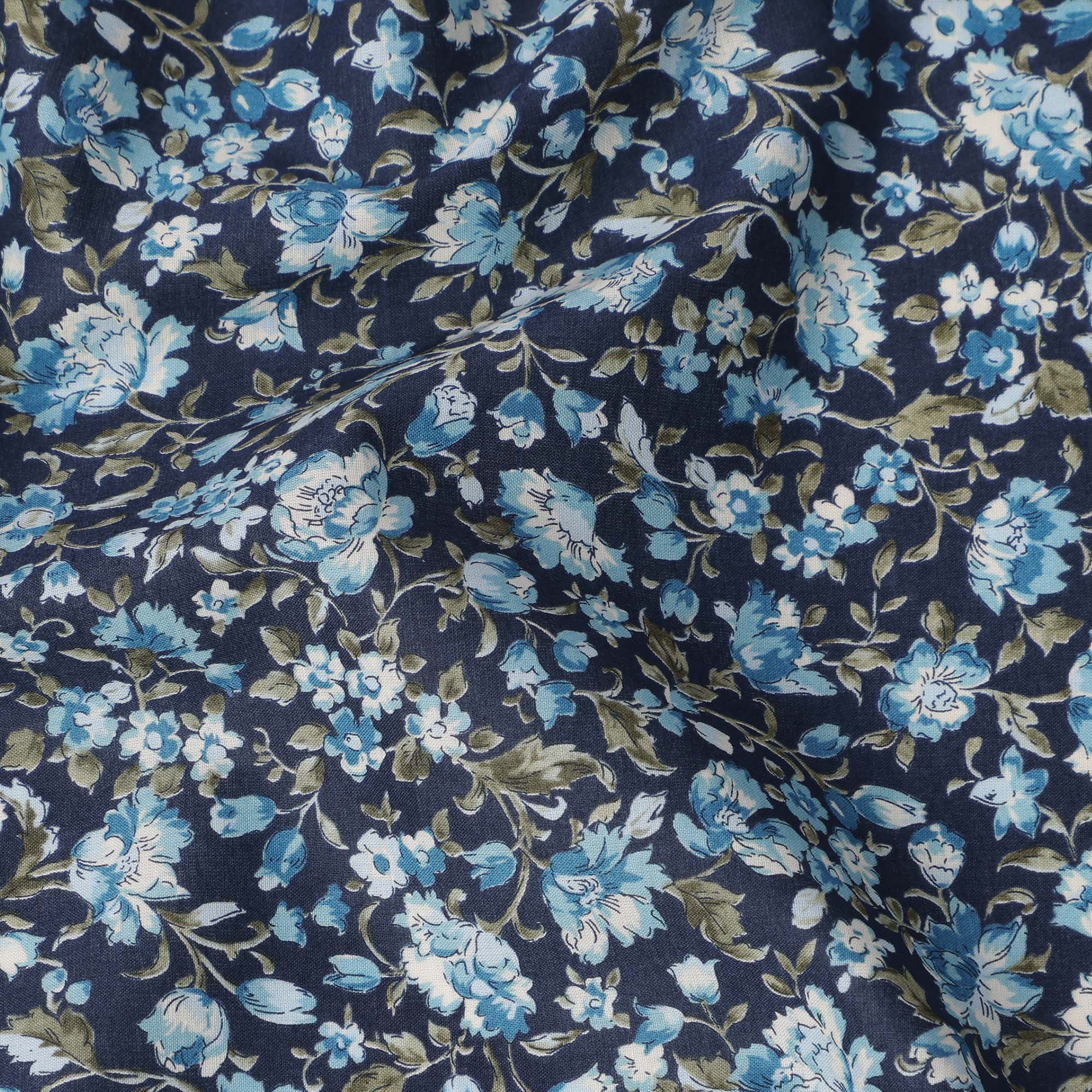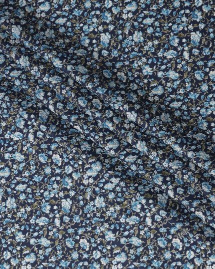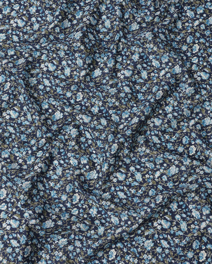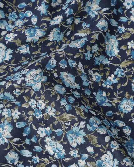 Enhance your style with this midnight navy cotton lawn fabric, digitally printed with an exquisite floral pattern in shades of blue and green. Crafted in Japan, this fabric features a lightweight, breathable texture that ensures all-day comfort, making it an ideal choice for summer dresses, kurtis, blouses, and casual ensembles. The intricate floral detailing adds a timeless charm, while the smooth drape allows for effortless styling. Measuring 110 cm in width, this fabric is wrinkle-resistant and easy to maintain, offering both elegance and practicality. Shop online now and add a touch of sophistication to your collection.