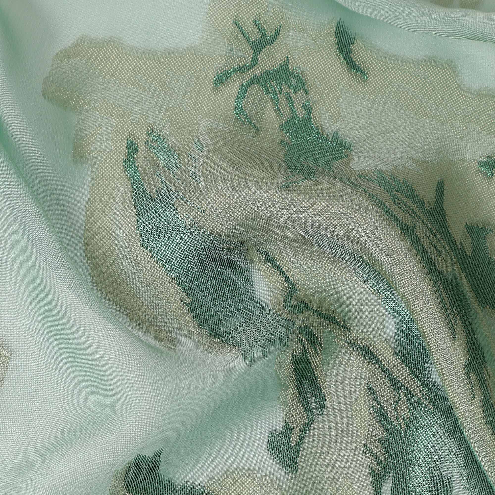 Refreshing mint green base with abstract floral metallic lurex woven design creates a refined luminous appearance.