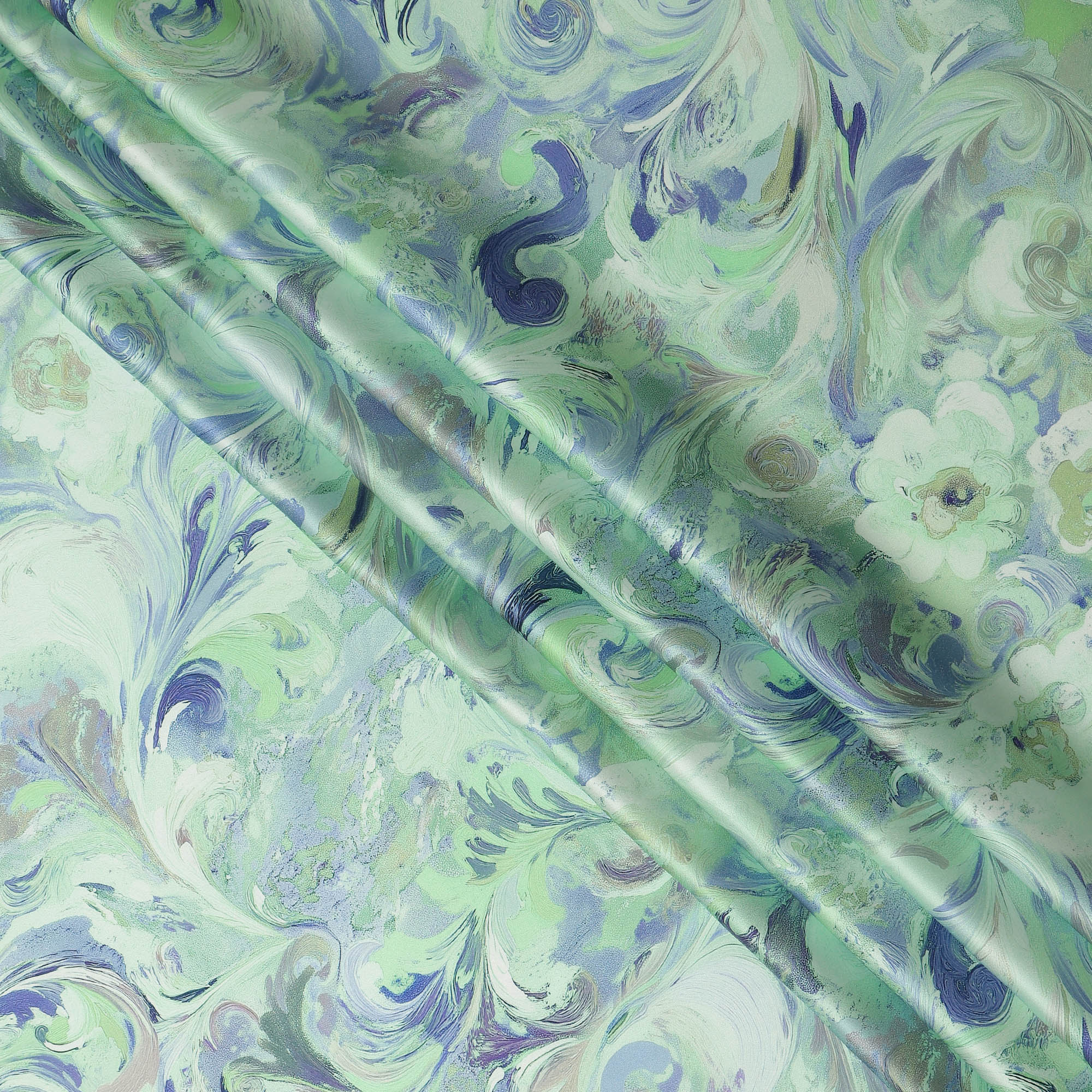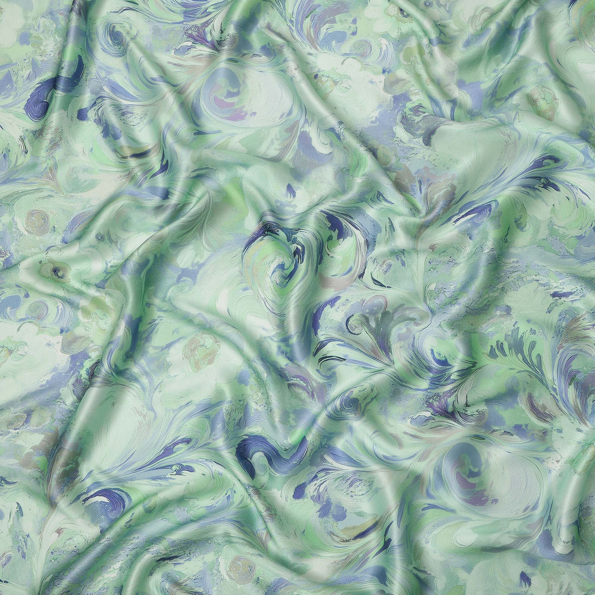Mint Green Abstract Marble Swirl Print Premium Pure Silk Satin Fabric Smooth Glossy Finish 140 Cms Width, 3.5 Mtrs Piece and Made in Italy-D27207
