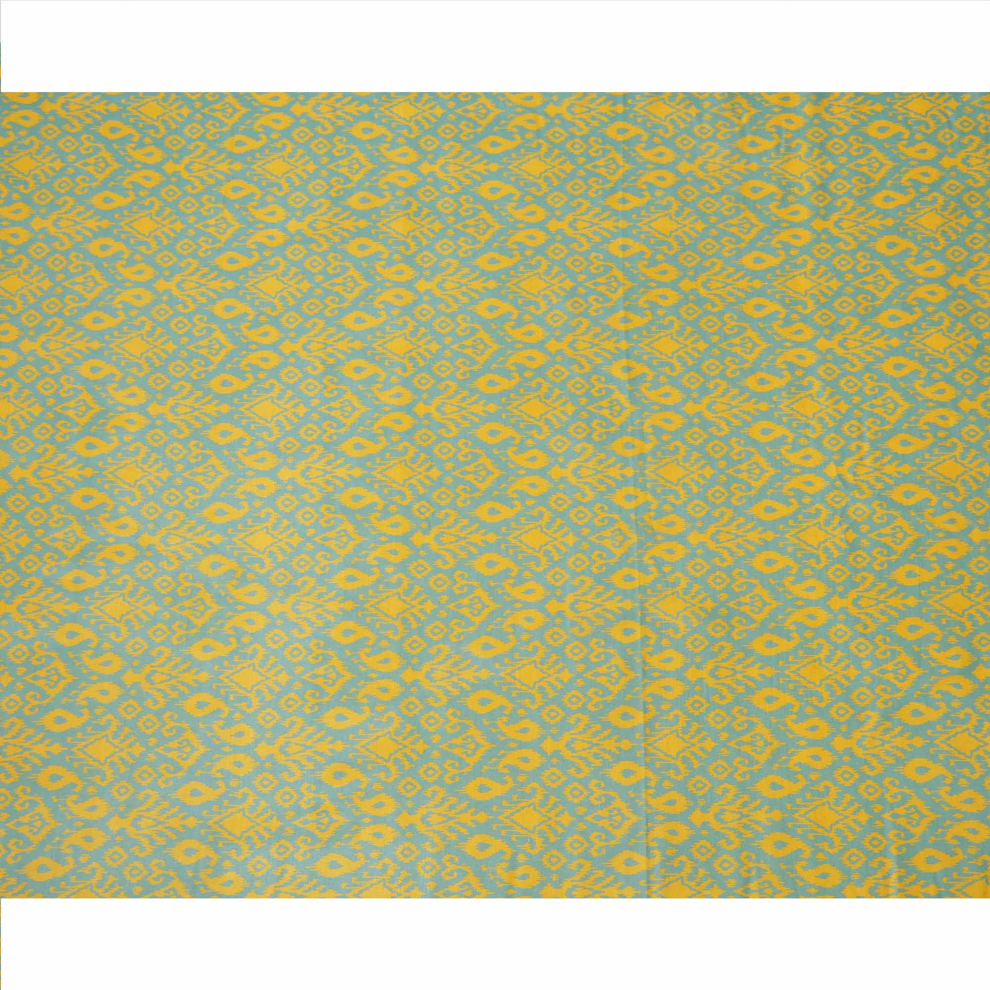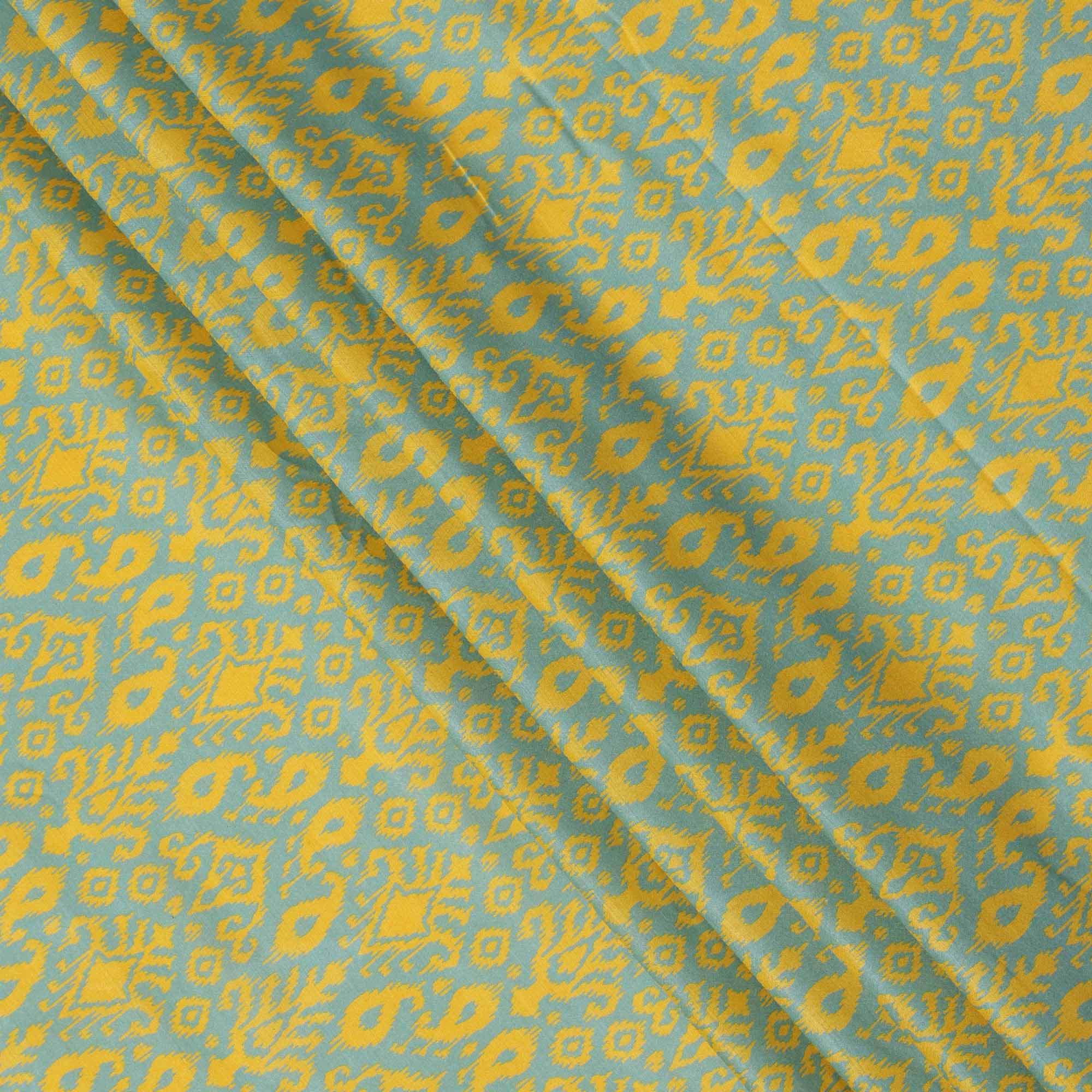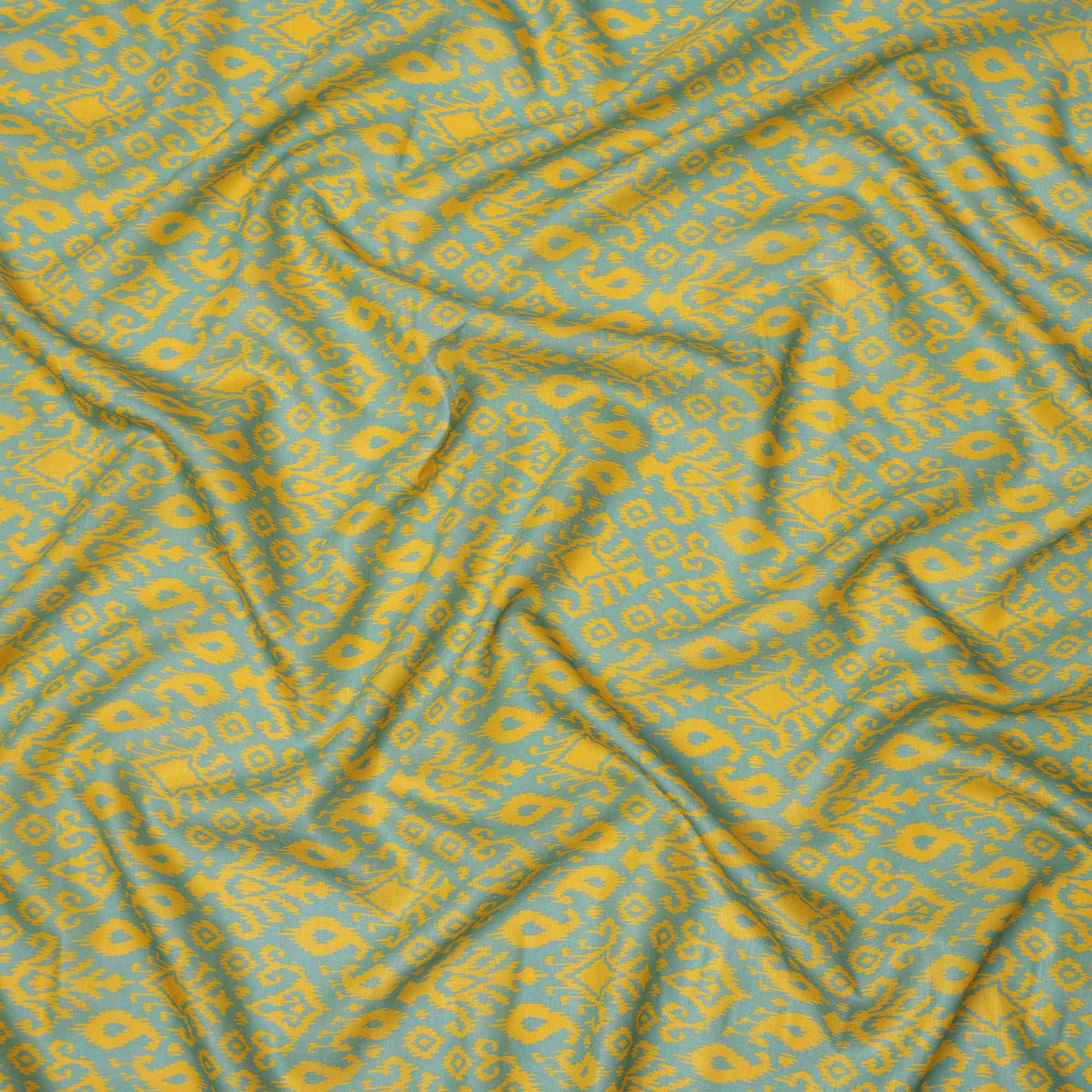 Mint green base with yellow ikat-inspired motifs for a bright ethnic look