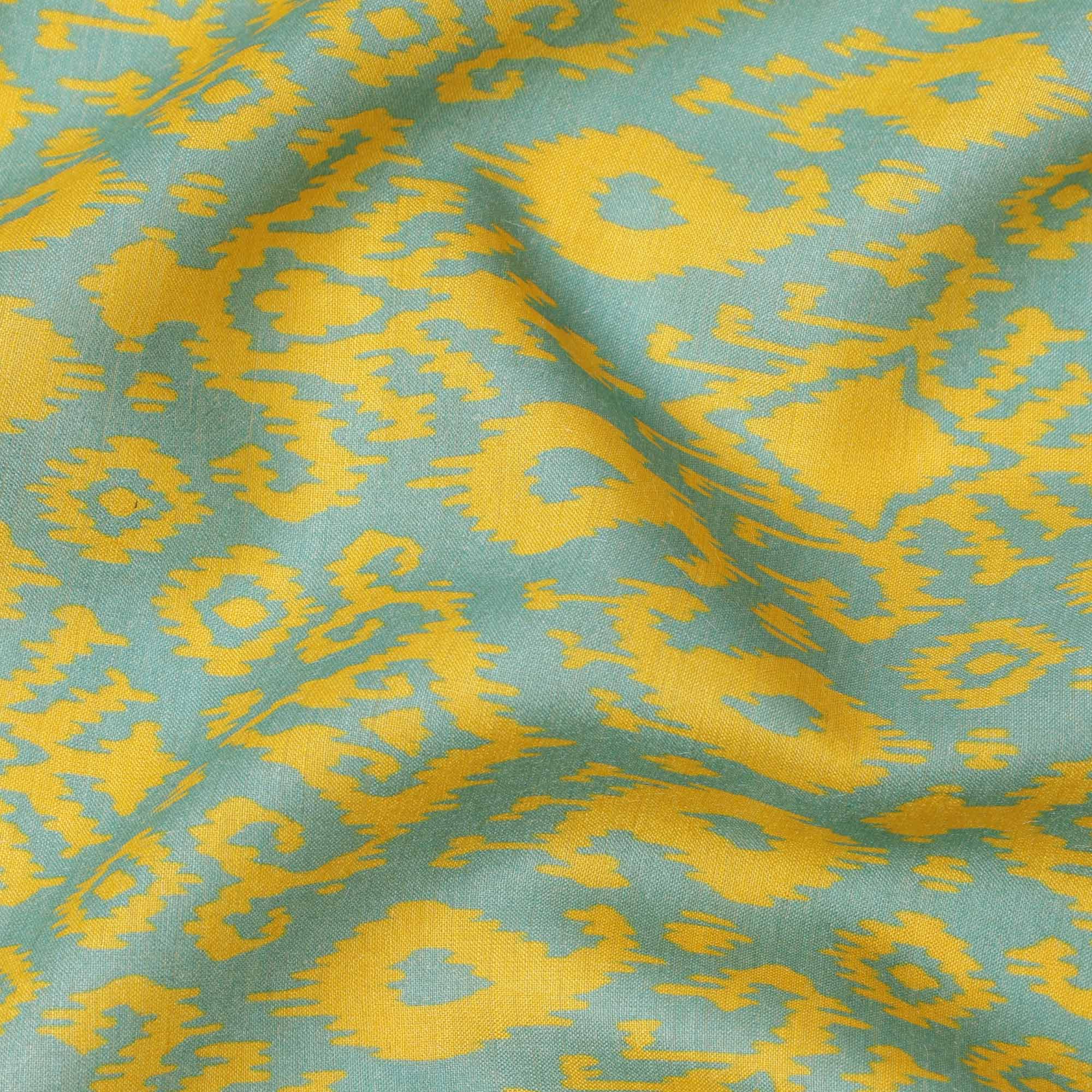 Mint Green and Yellow Ikat Inspired Geometric Print Cotton Lawn Fabric, 110 Cms Width, Made in India-D23570