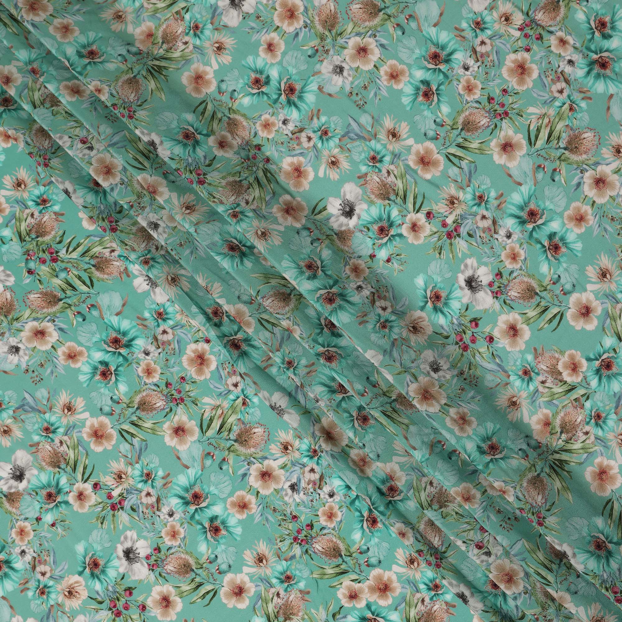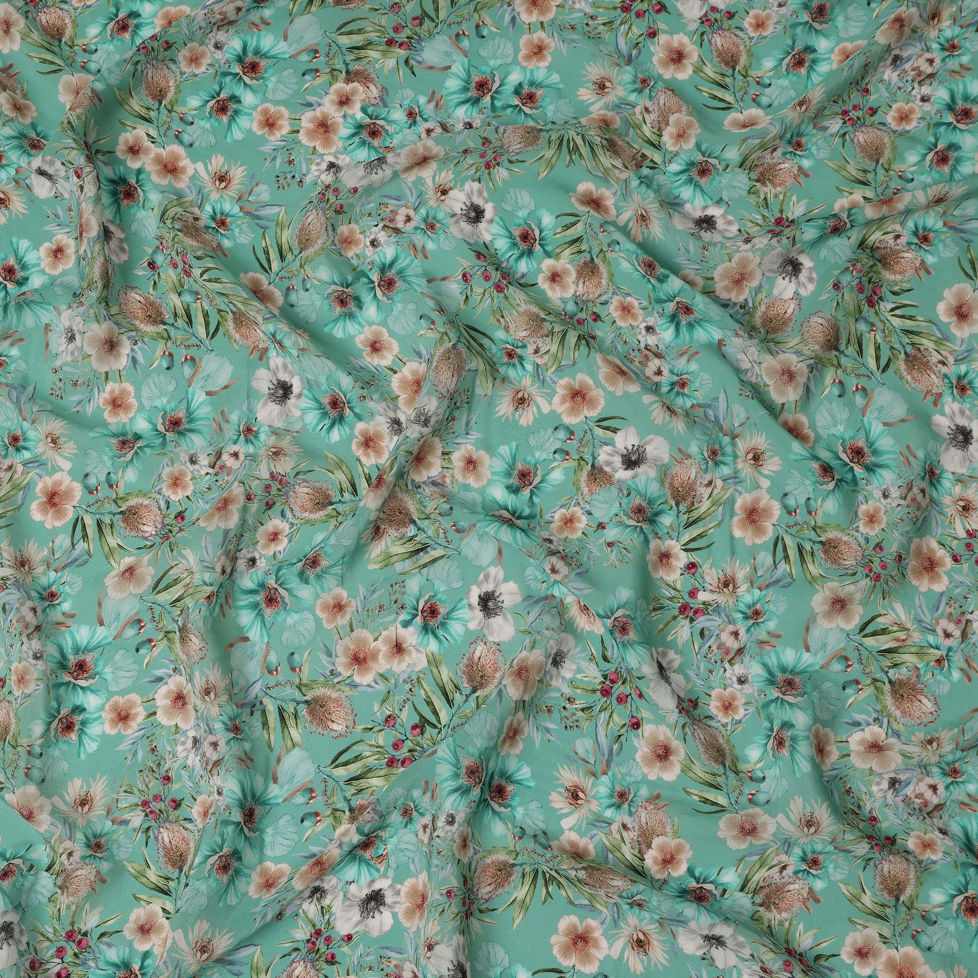 Mint Green Beige Floral Printed Viscose Crepe Fabric 110 Cms Width Soft Flowing Lightweight Dress Material India-D27924
