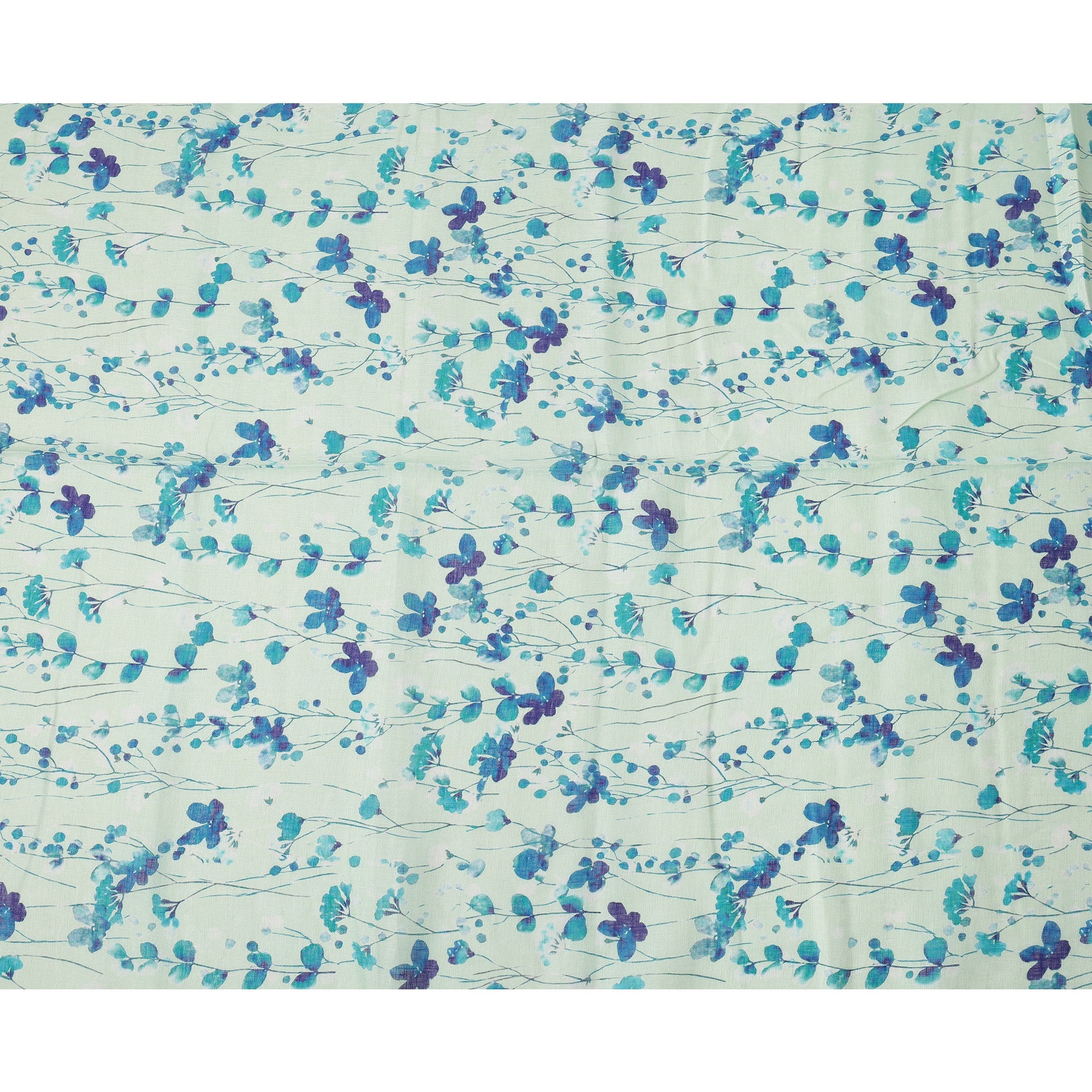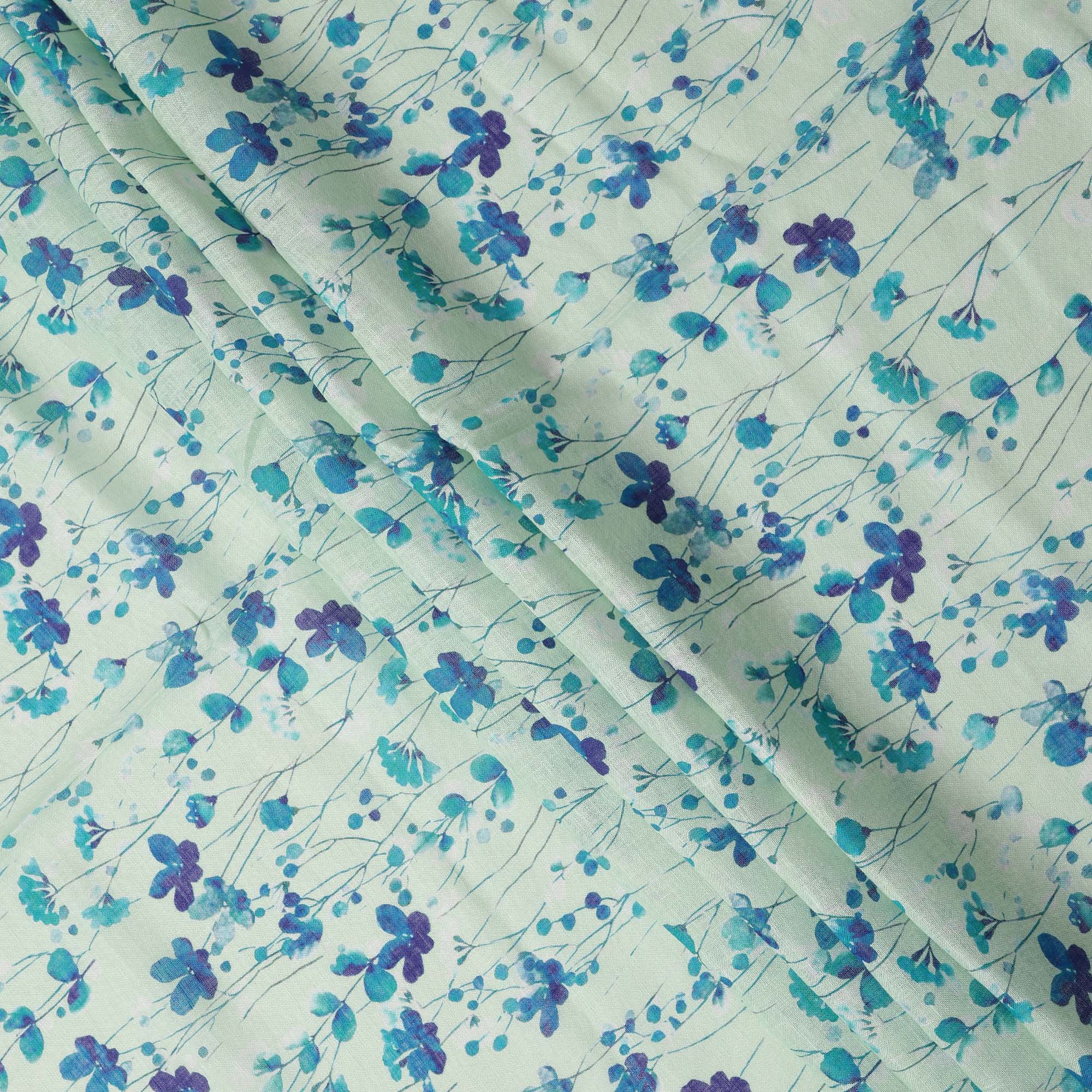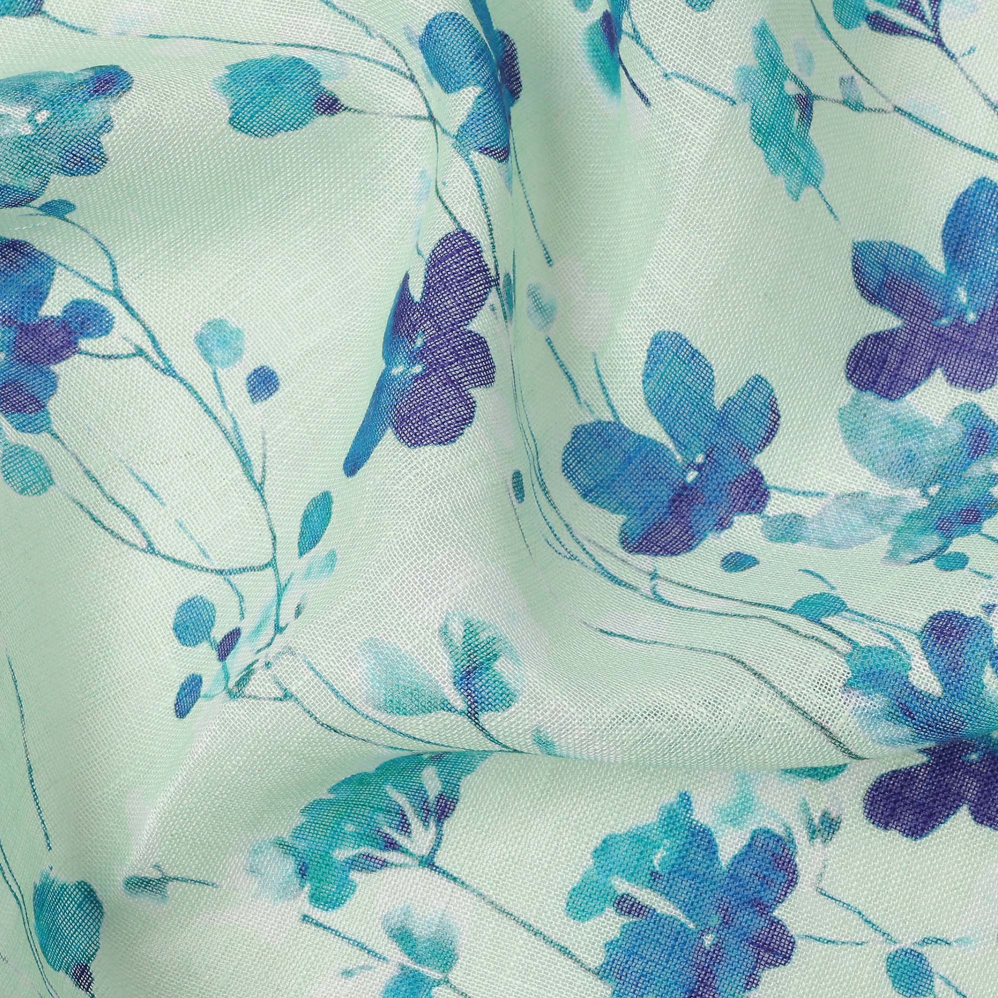 Mint Green Blue Floral Vine Watercolor Print Blended Linen Fabric, 110 Cms Width, Made in India-D26178