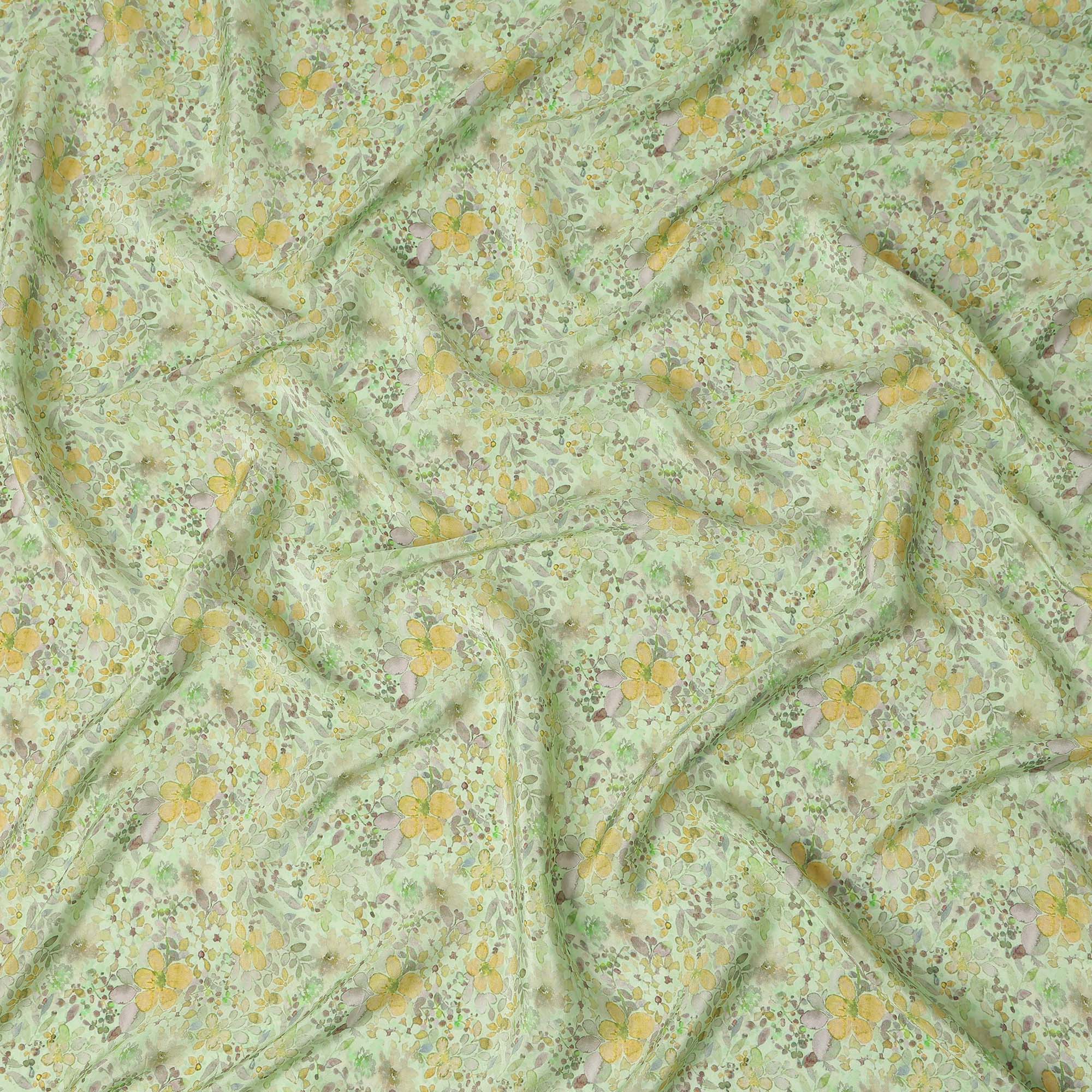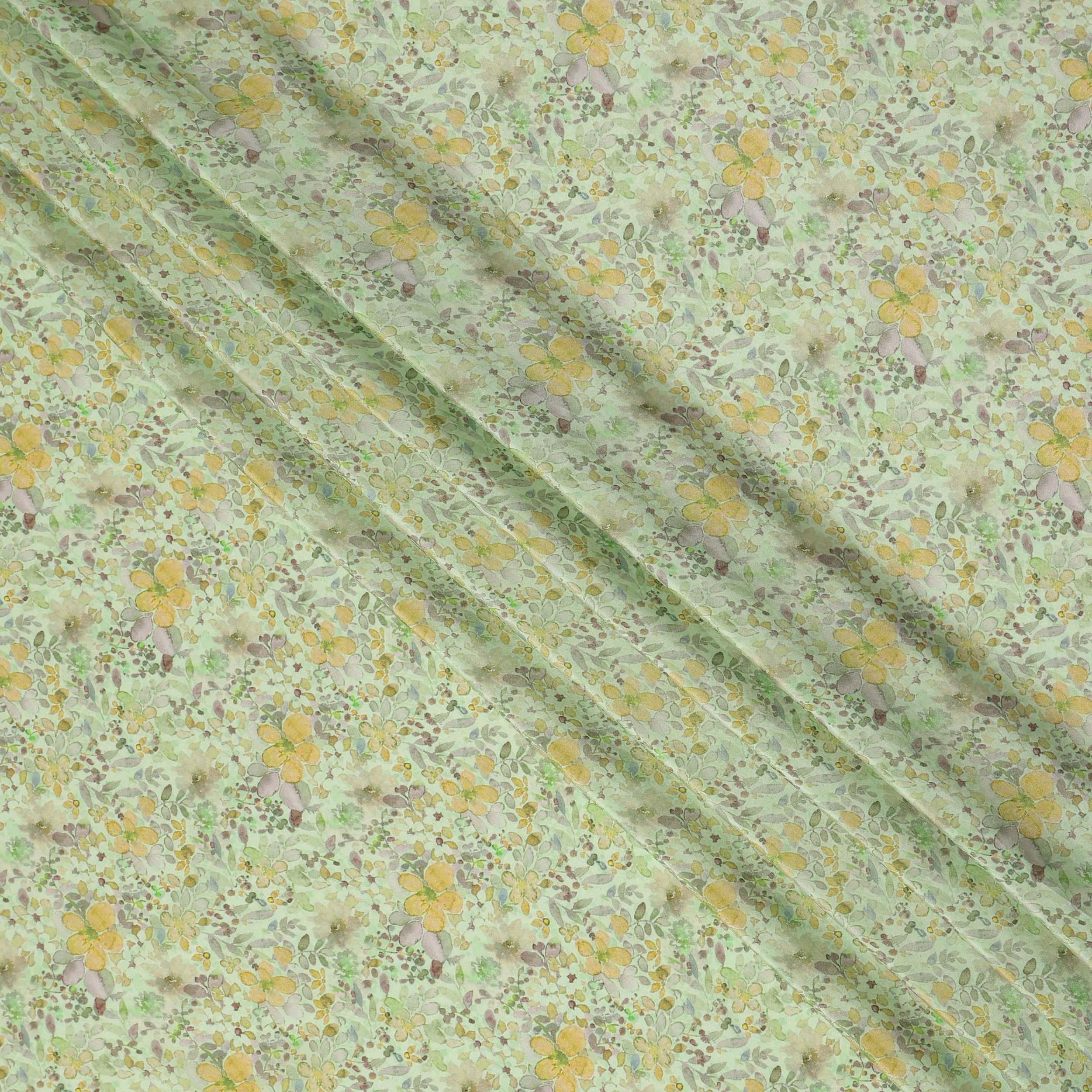 This mint green ditsy floral printed viscose crepe fabric features a soothing pastel base adorned with delicate yellow and soft... Read more Read more