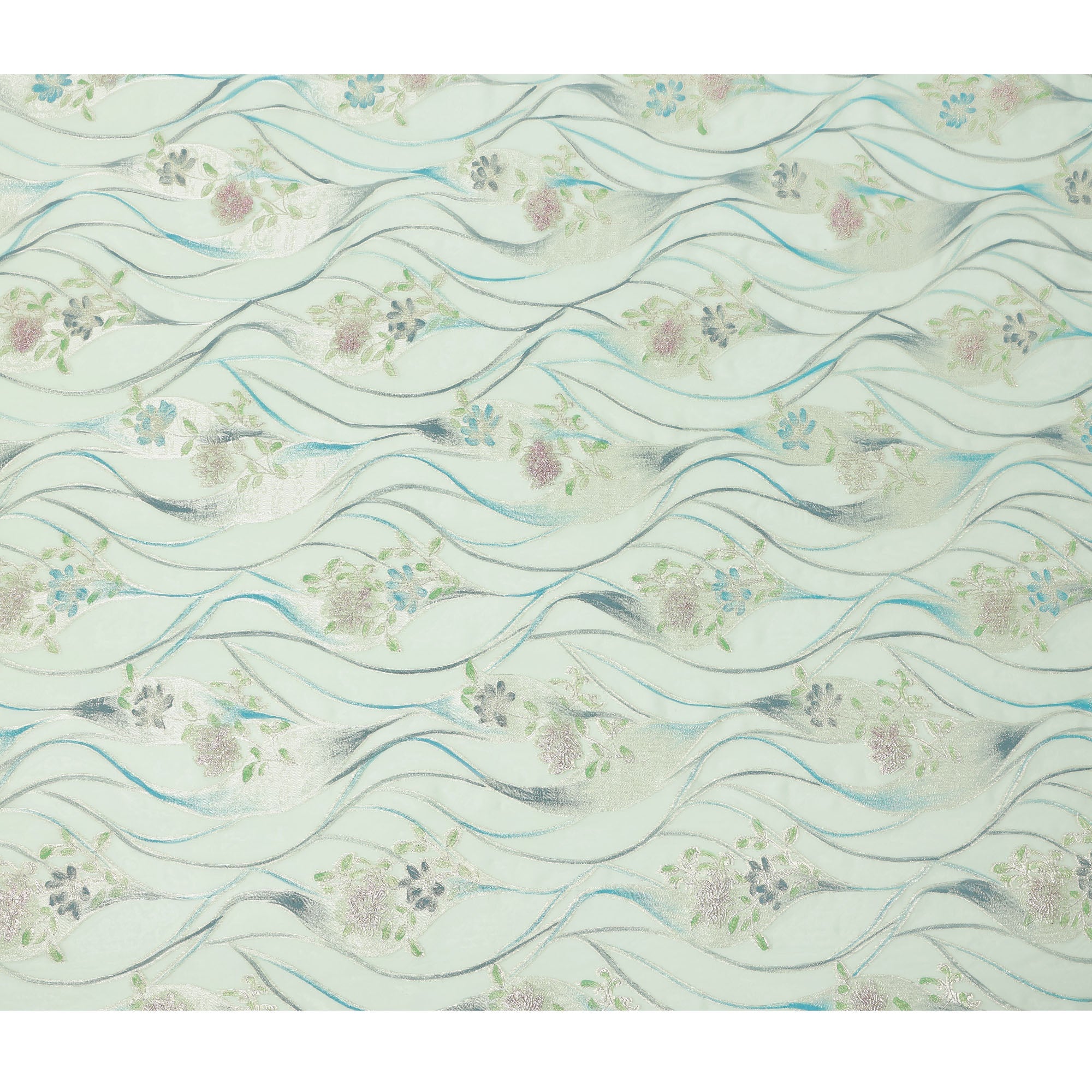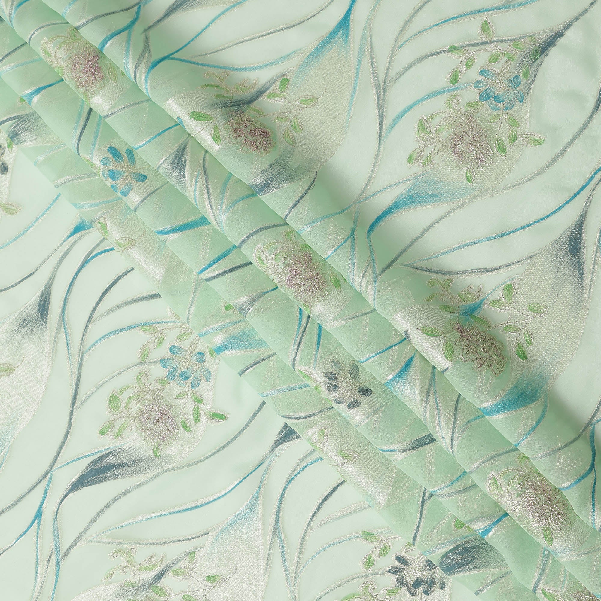 Mint Green Floral Metallic Hand Print Pure Silk Chiffon Fabric, 110 Cms, South Korea-D26922