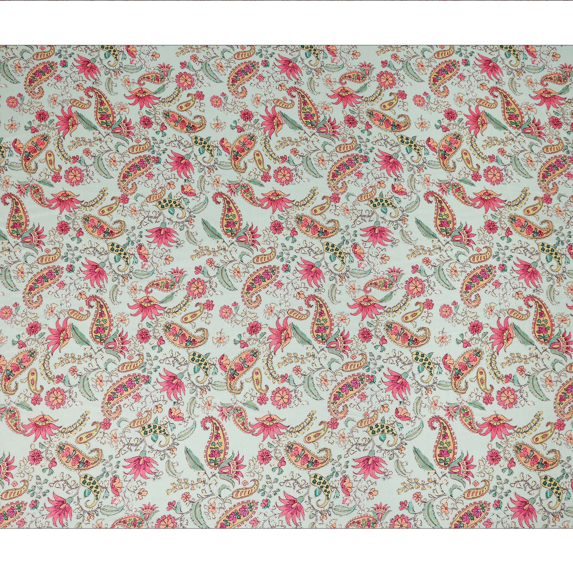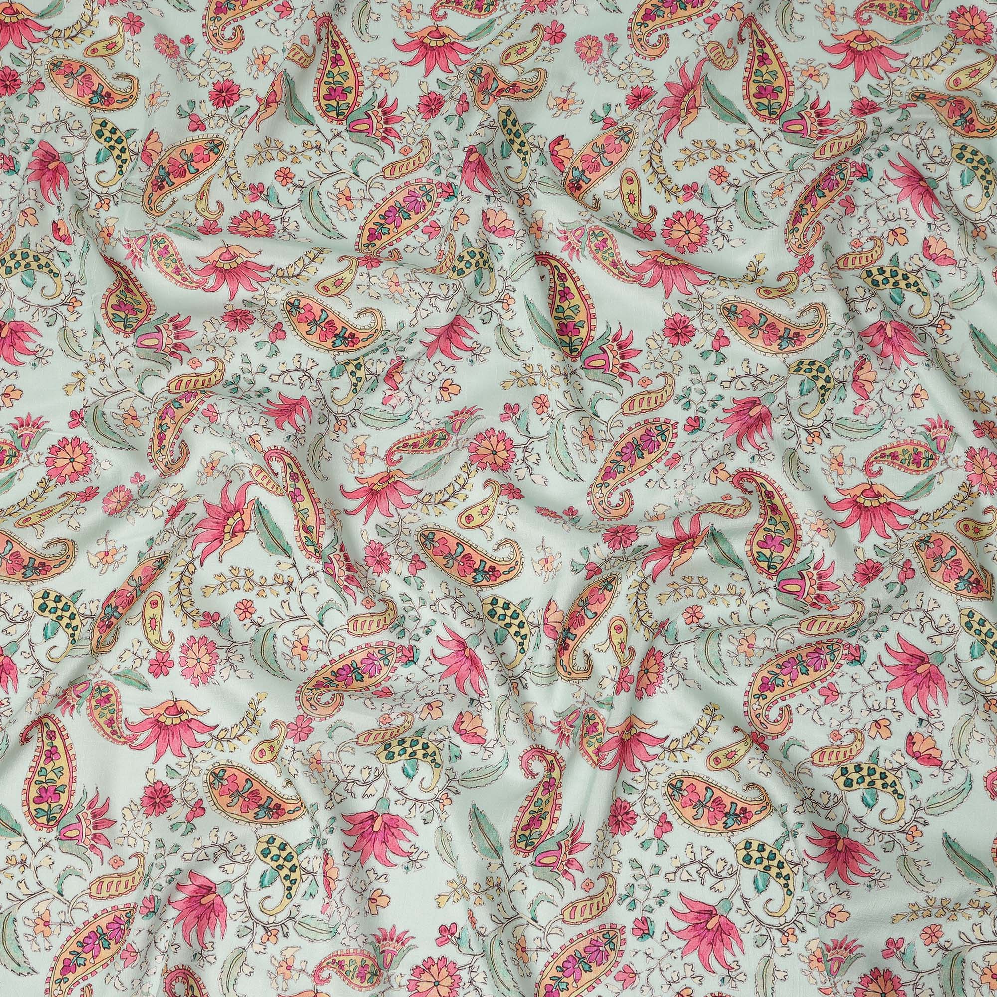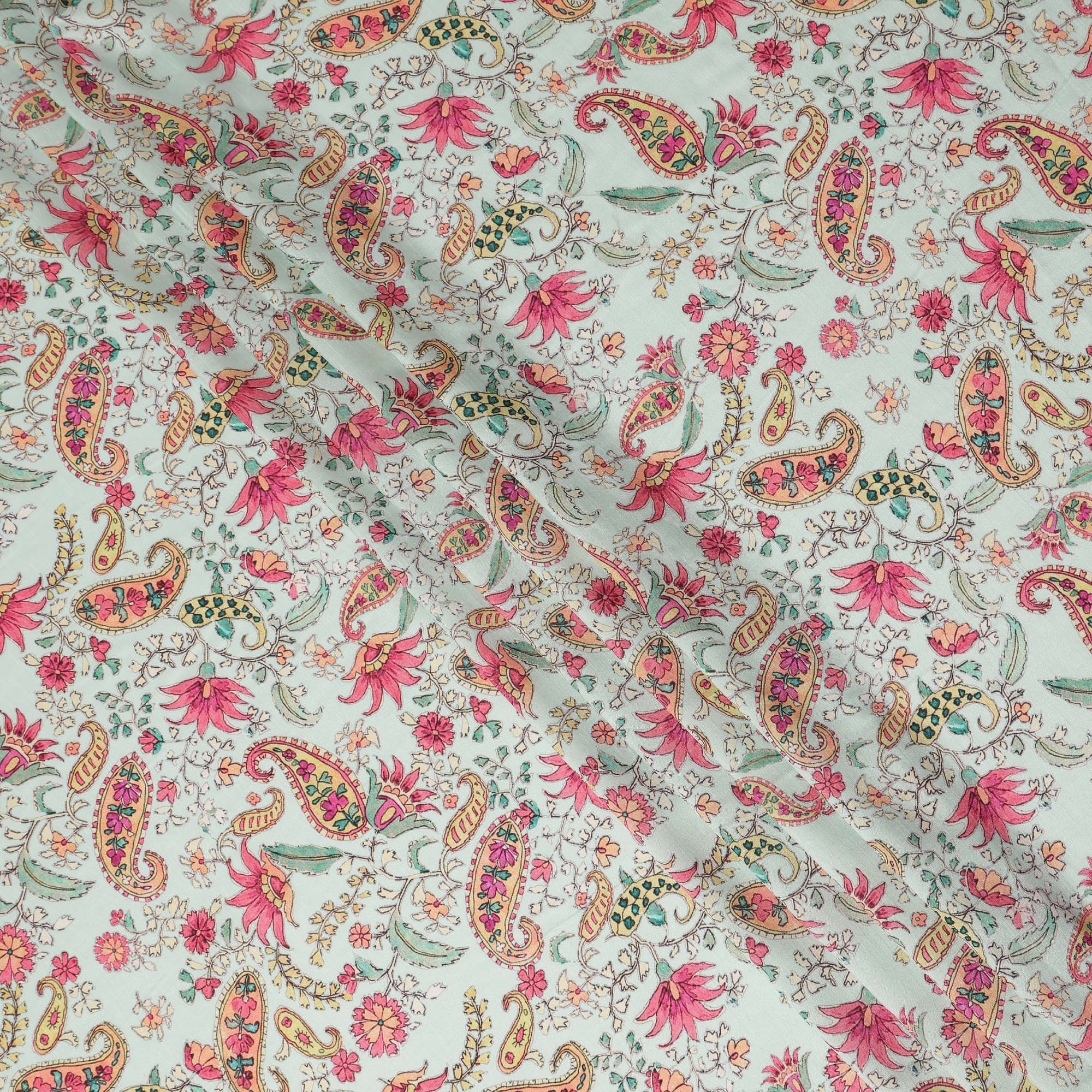 Mint Green Floral Paisley Printed Viscose Fabric 110 Cms Made In India-D27382
