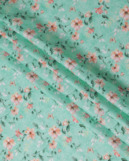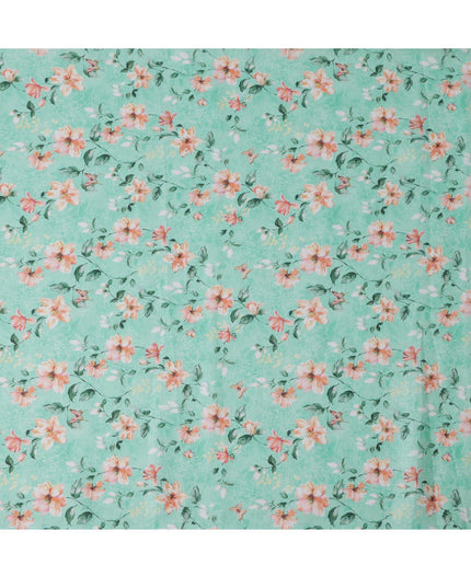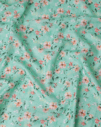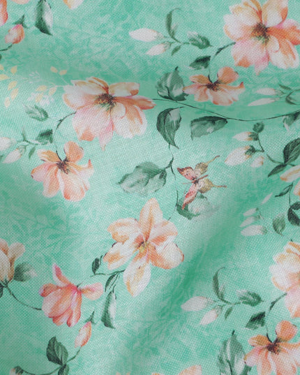 Mint Green Floral Printed Blended Linen Fabric – 140 cm Width – Premium Indian Fabric-D22207