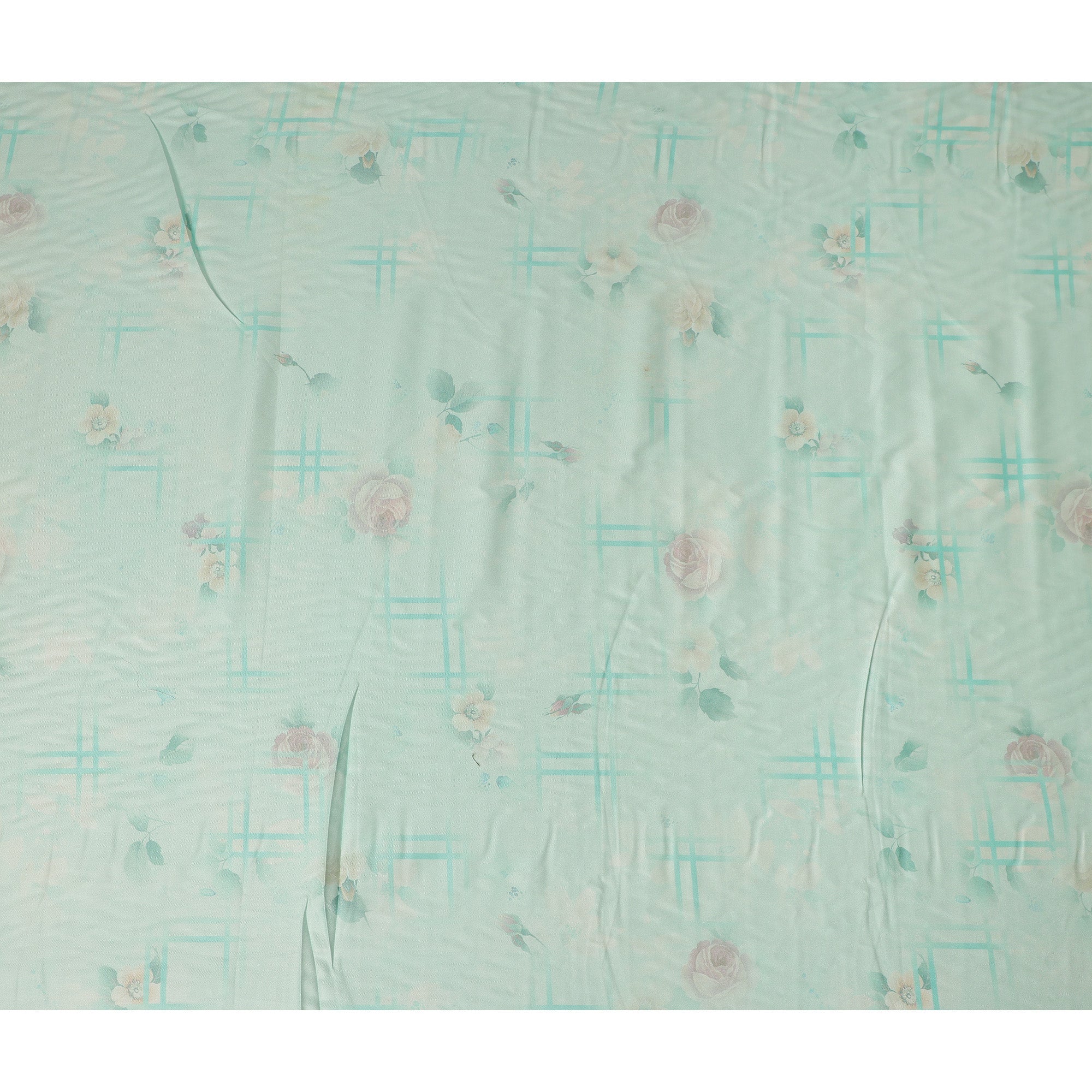 Mint Green Floral Printed Viscose Crepe Fabric Soft Lightweight Draping Rose Flower Grid Print Dressmaking Sewing Craft Apparel Material 110 Cms Width Made In India-D28387