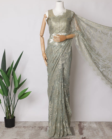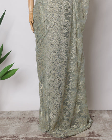 Mint green, Gold Premium French Metallic Chantilly Saree Lace Fabric, 5.5 MetersX110 Cms-D21499