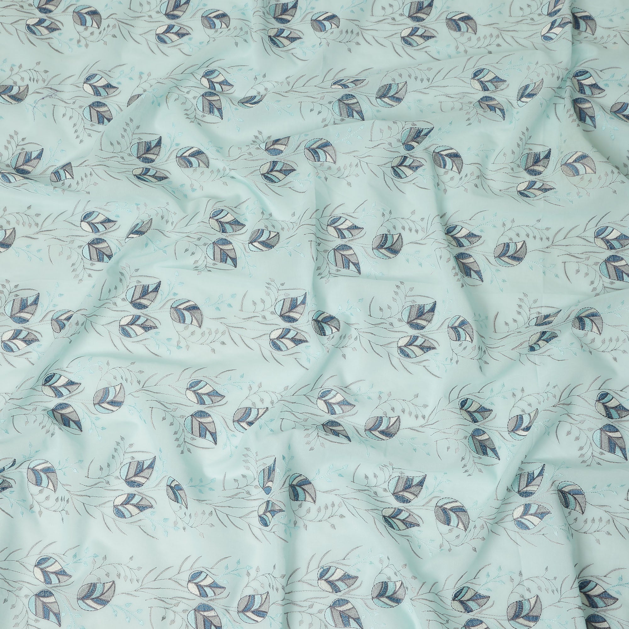 Mint Green Leaf Vine Embroidered Cotton Voile Fabric Blue Grey Botanical Embroidery Soft Lightweight Breathable Dressmaking Sewing Fabric 110 Cms Width Made In India-D28408