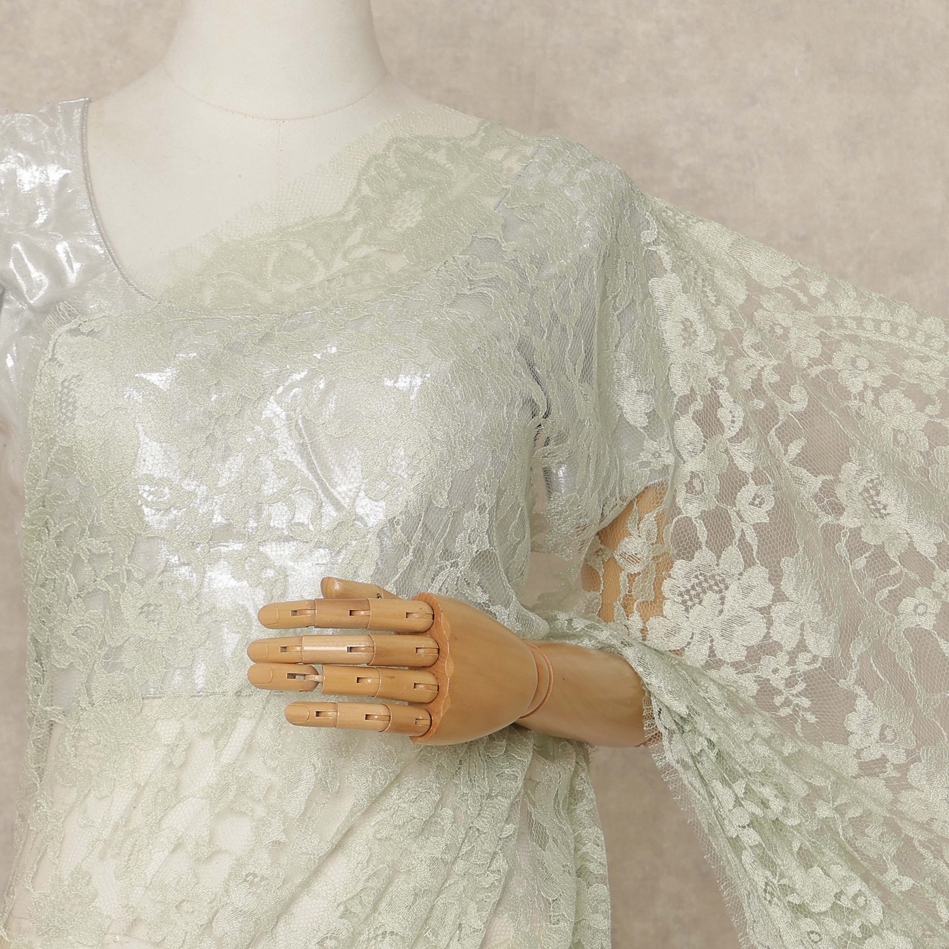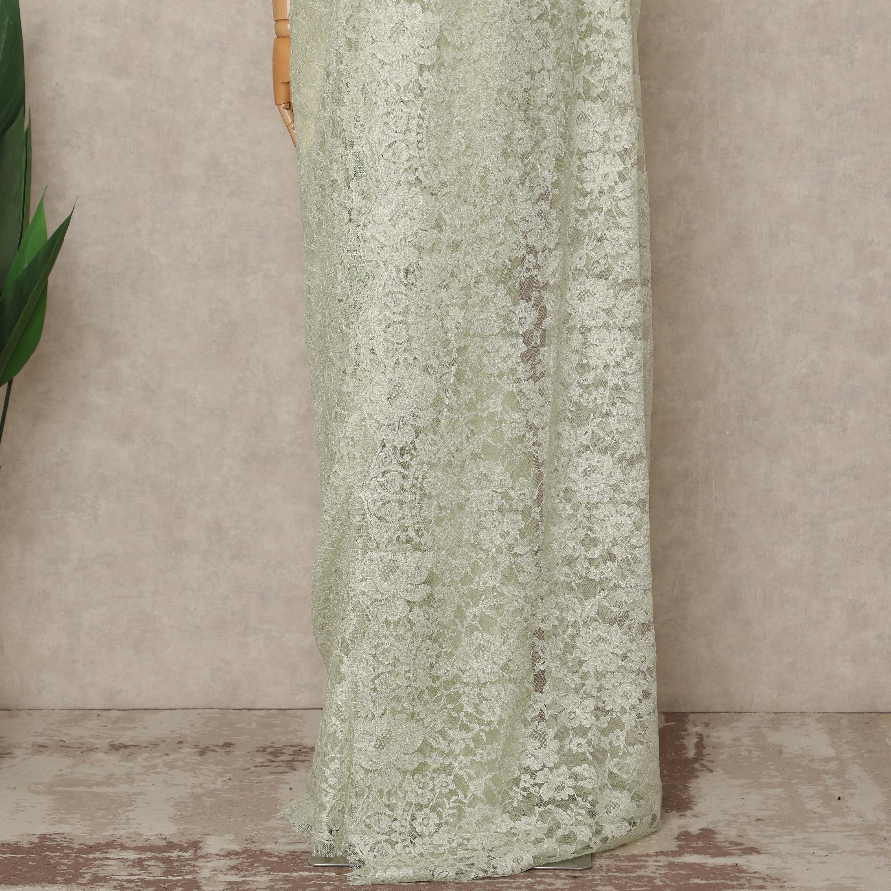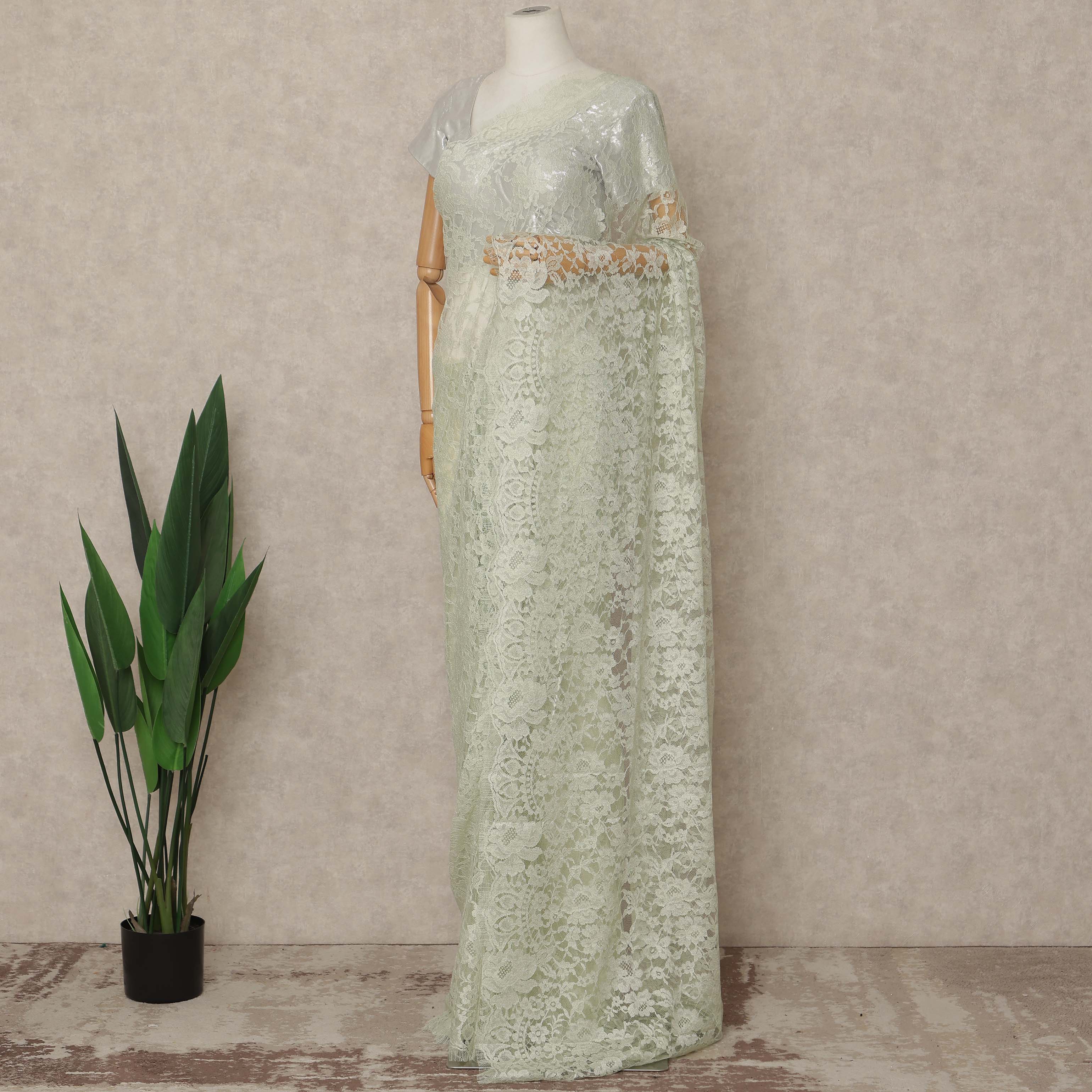 Mint Green Premium French 2 Tone Chantilly Saree Lace 5.5 Mtrs Length 110 Cms Width Designer Net Fabric Made In France, Blouse Not Included-D28118