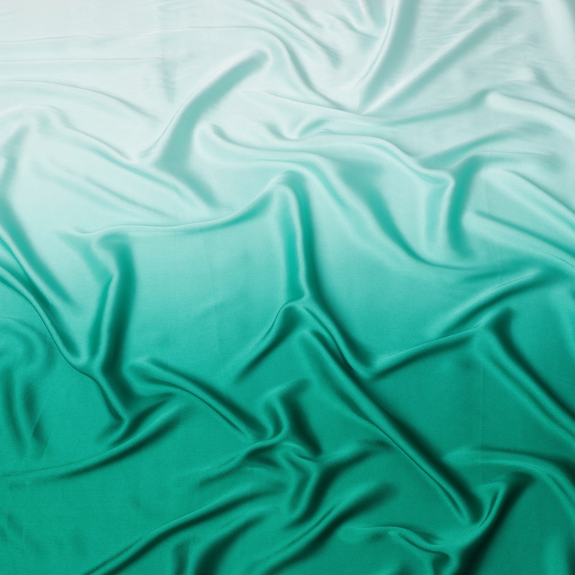 Mint Green to Emerald Green Ombre Synthetic Satin Fabric, 110 Cms Width, India-D24663