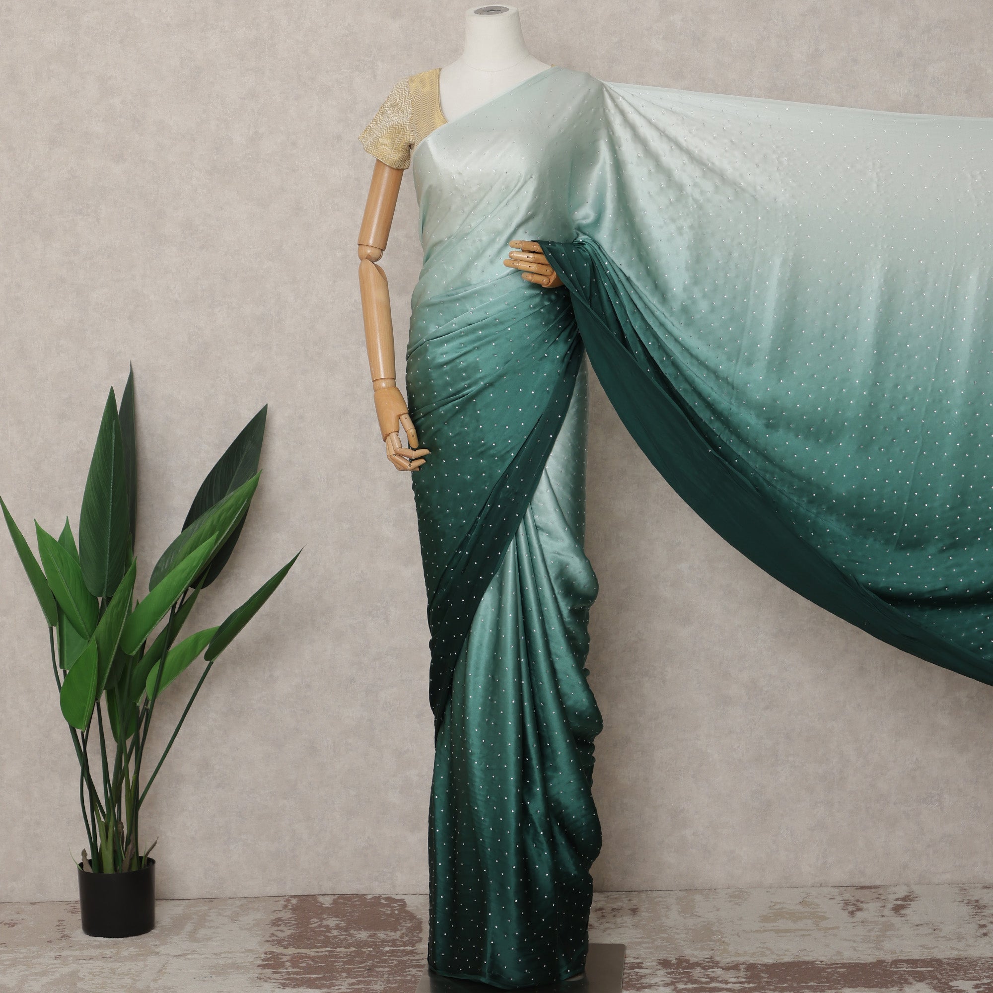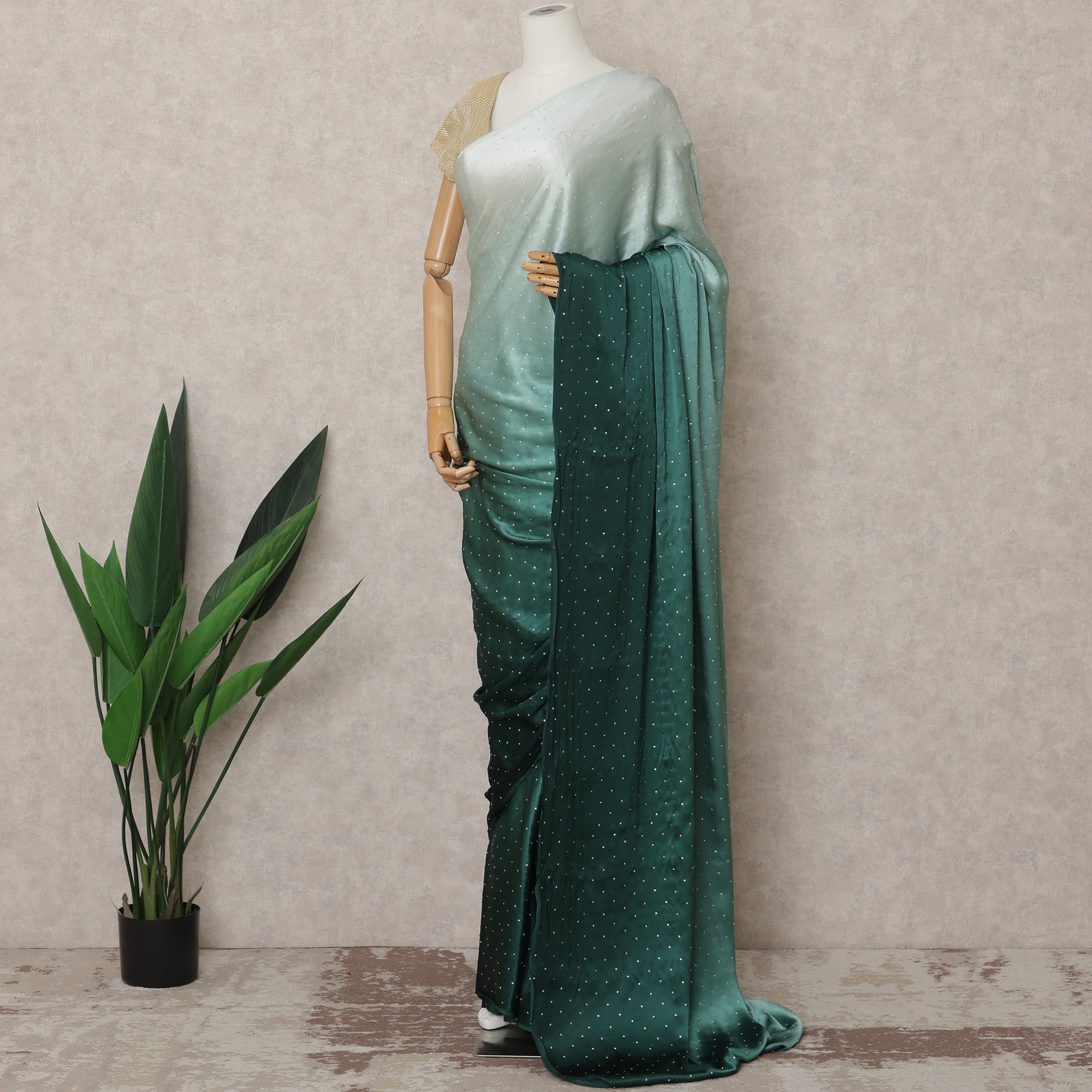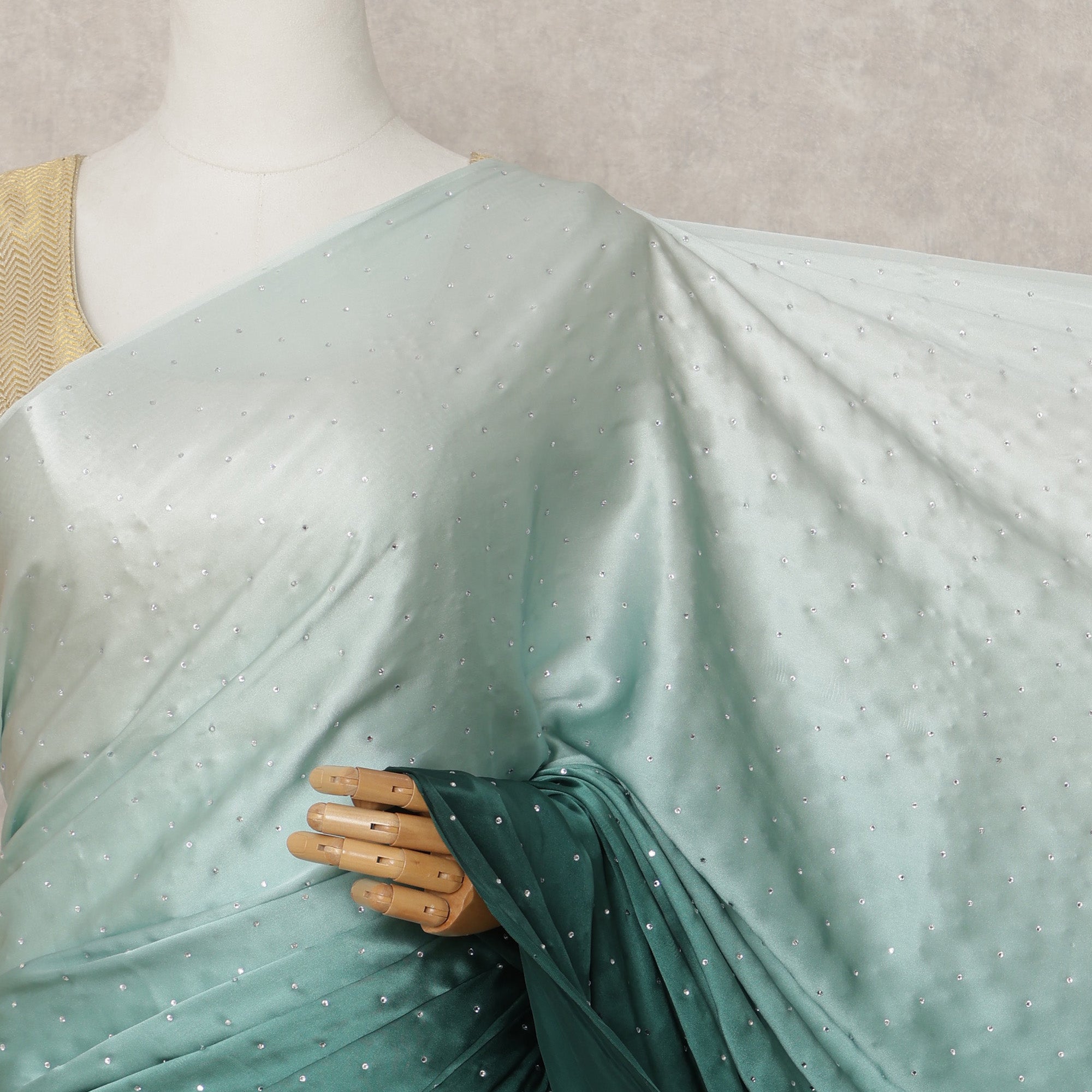 Mint to Bottle Green Ombre Premium Silk Satin Saree with Stone Work, 5.5 Mtrs Length, 110 Cms Width, Made in South Korea-D24294