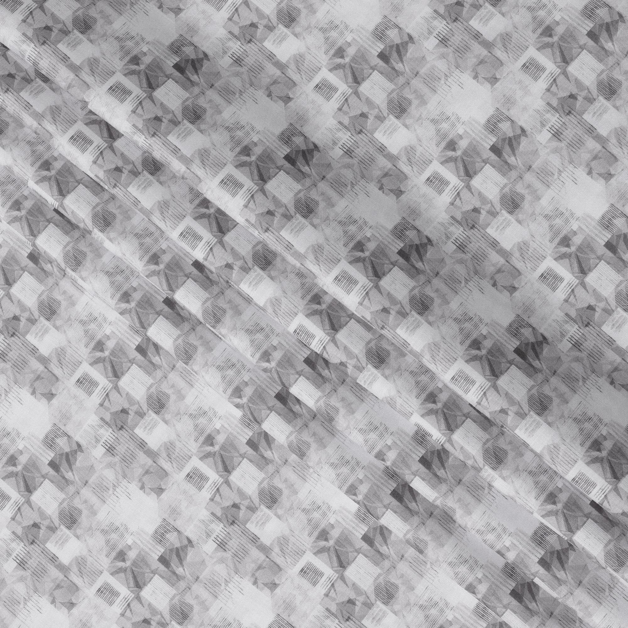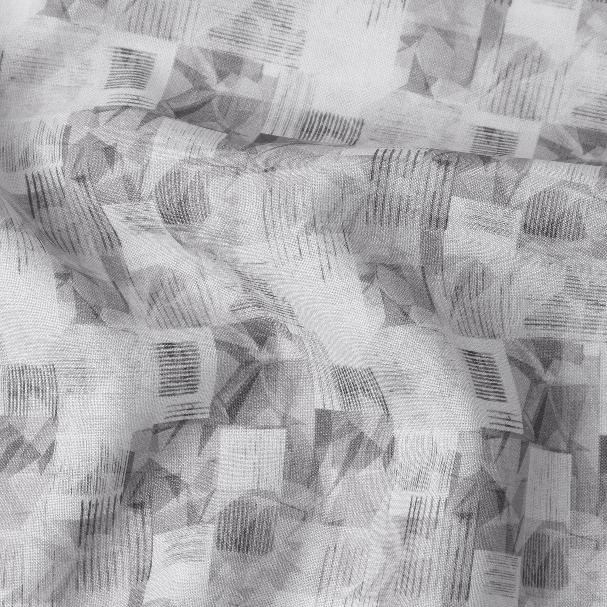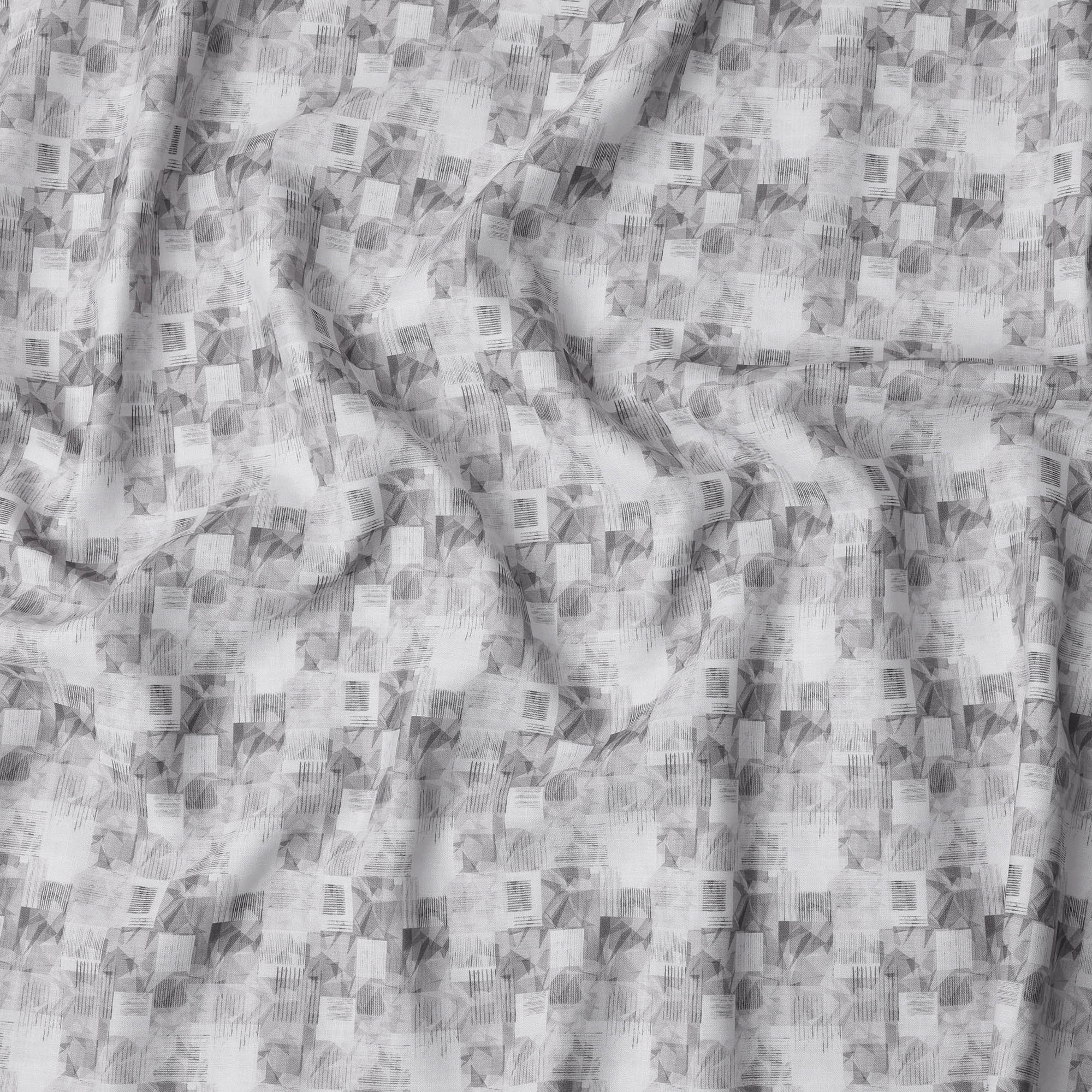 Monochrome Geometric Print Blended Linen Fabric, Abstract Cube and Line Design, 140 Cms Width, Made in India-D23221