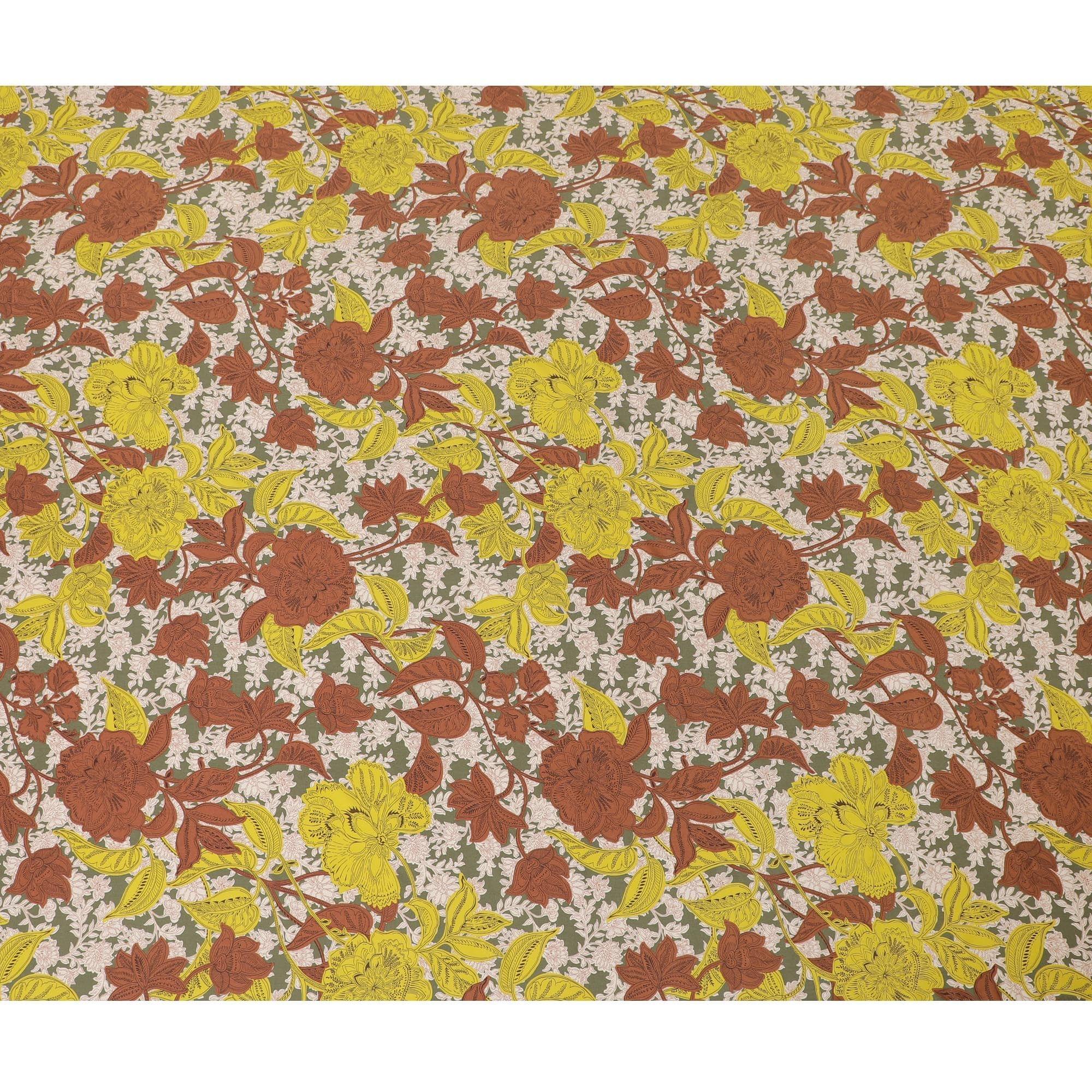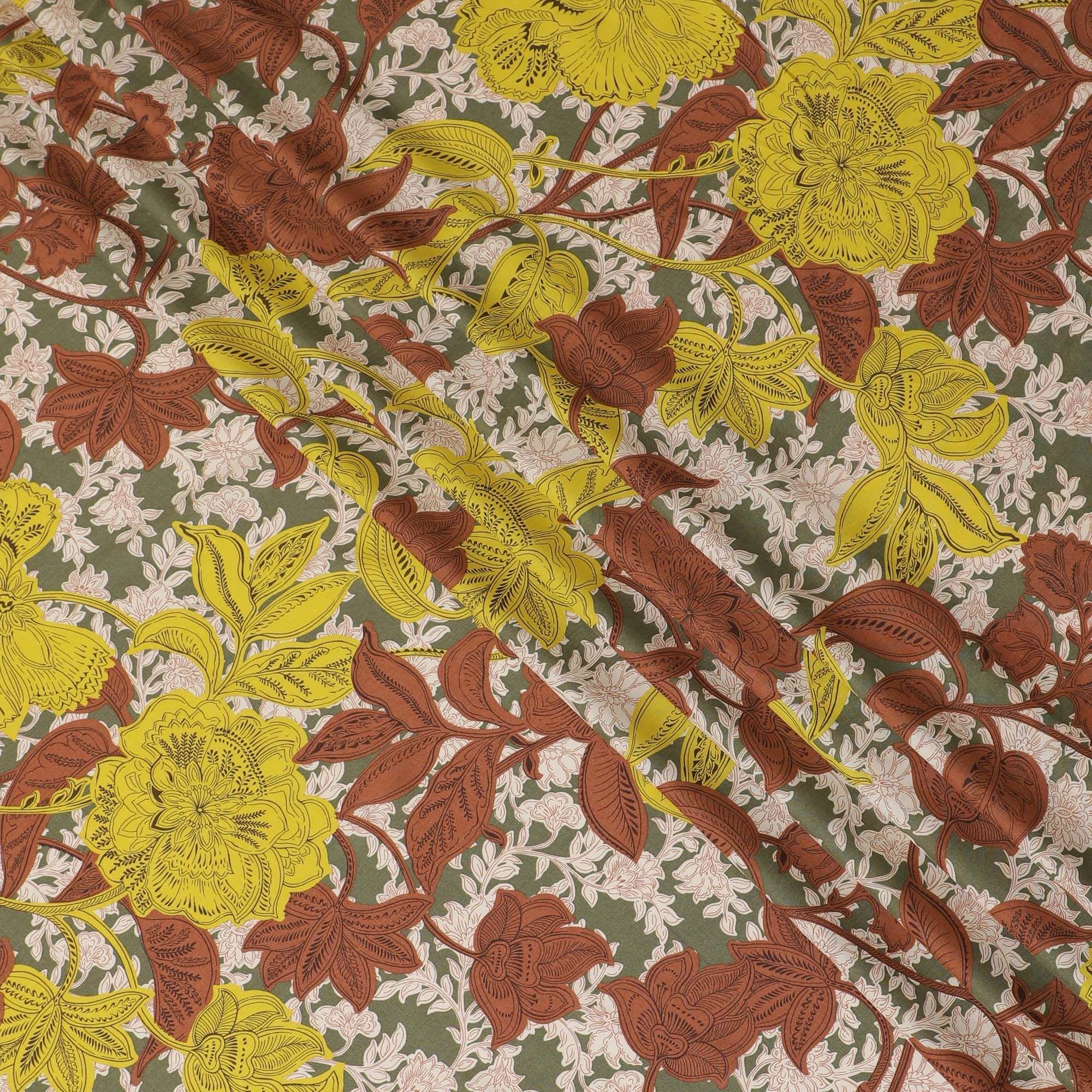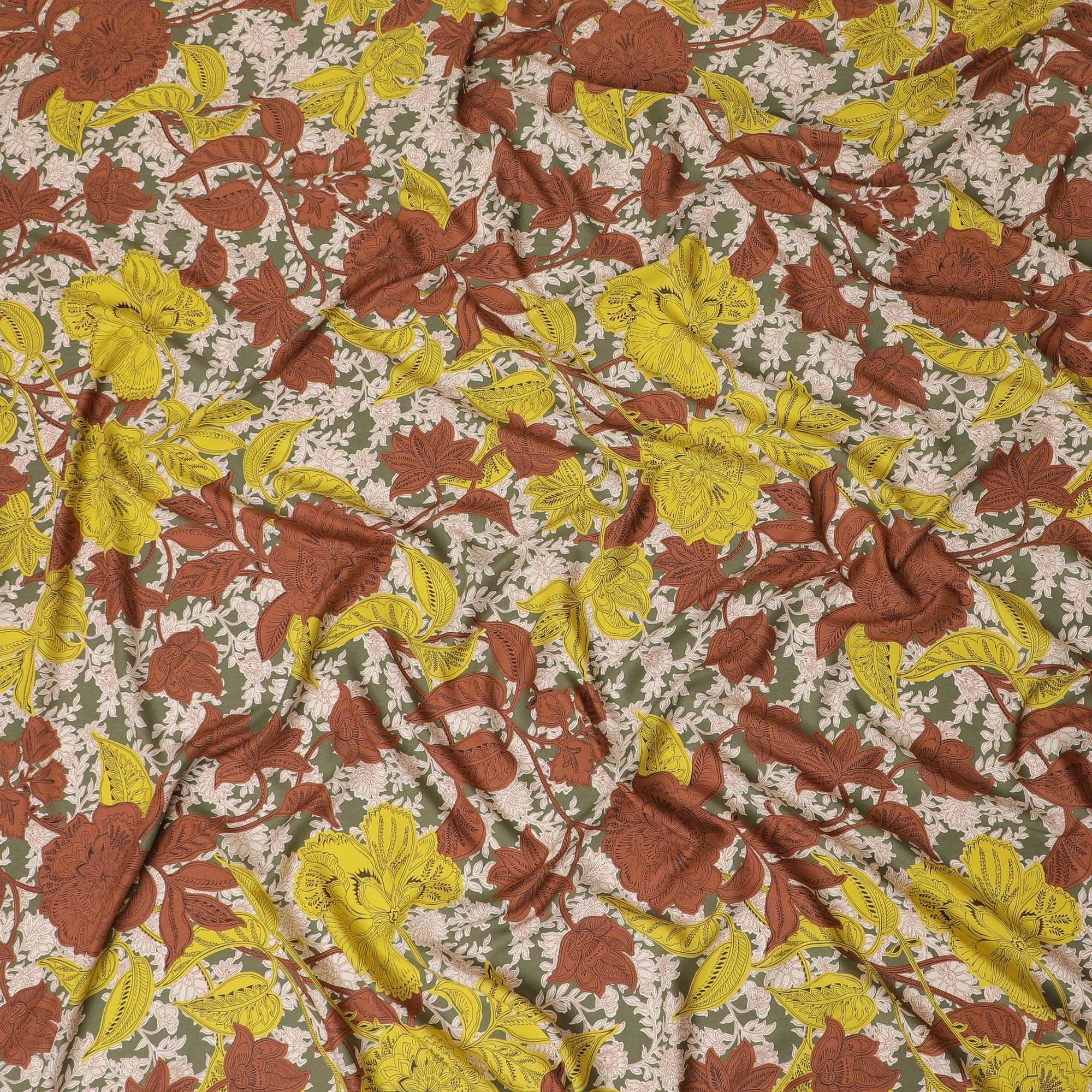 Moss green Premium Italian viscose fabric with multicolor print in floral design-D12524