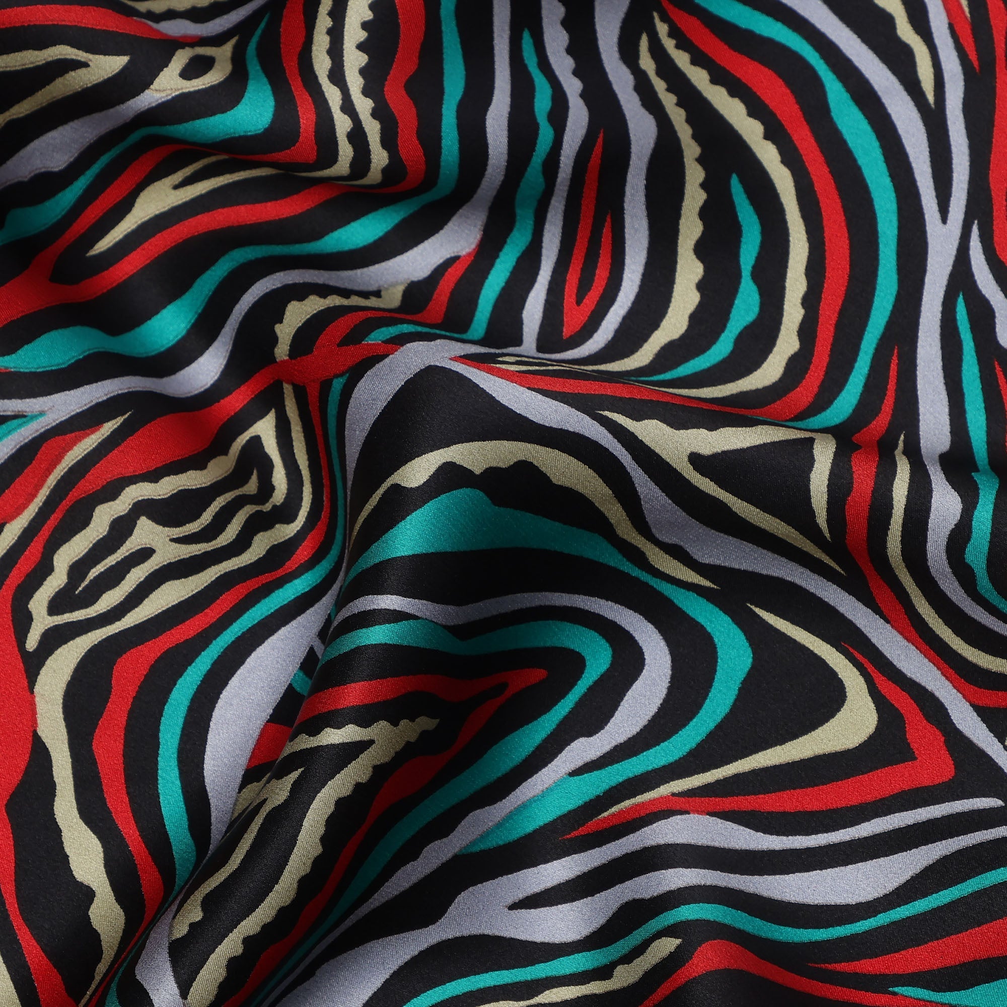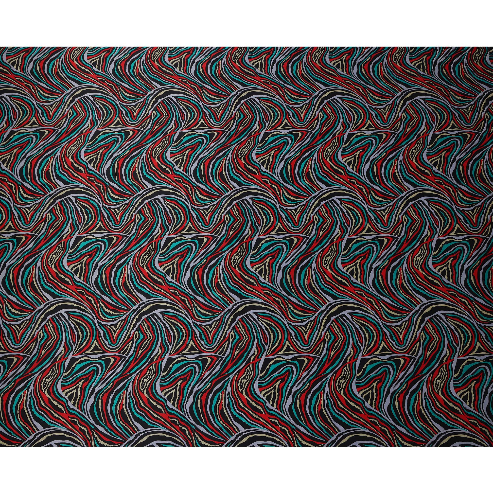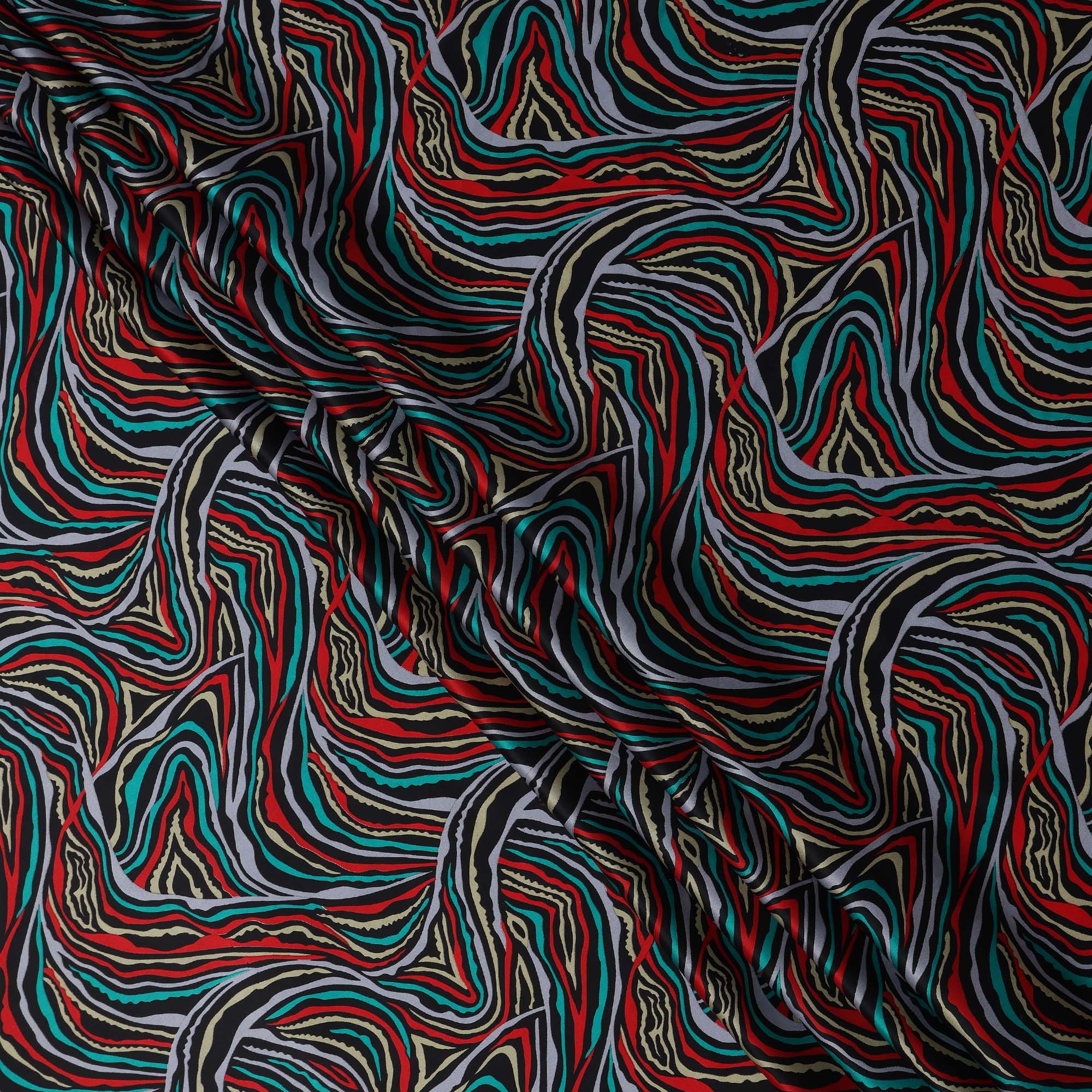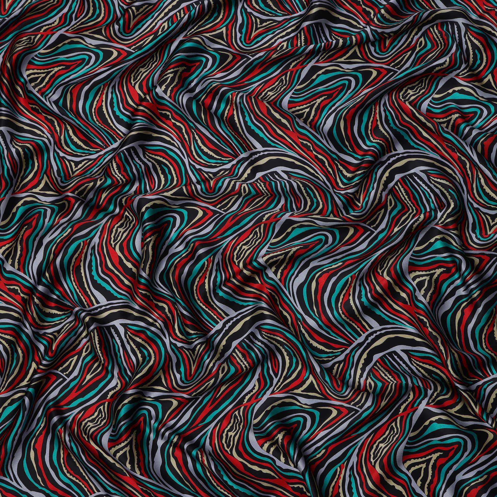 Multicolor Abstract Wave Print Silk Satin Fabric 110 Cms Width India-D24989