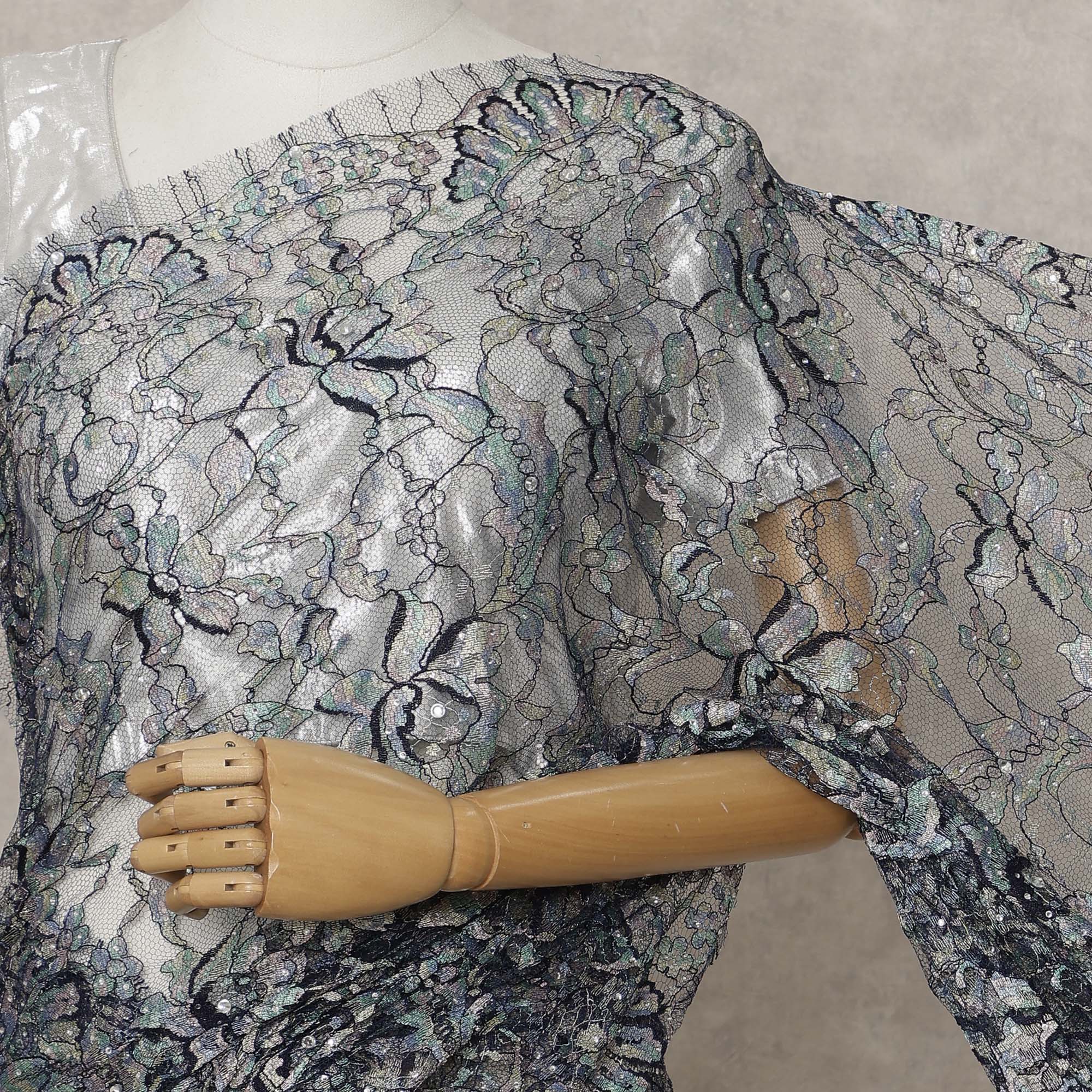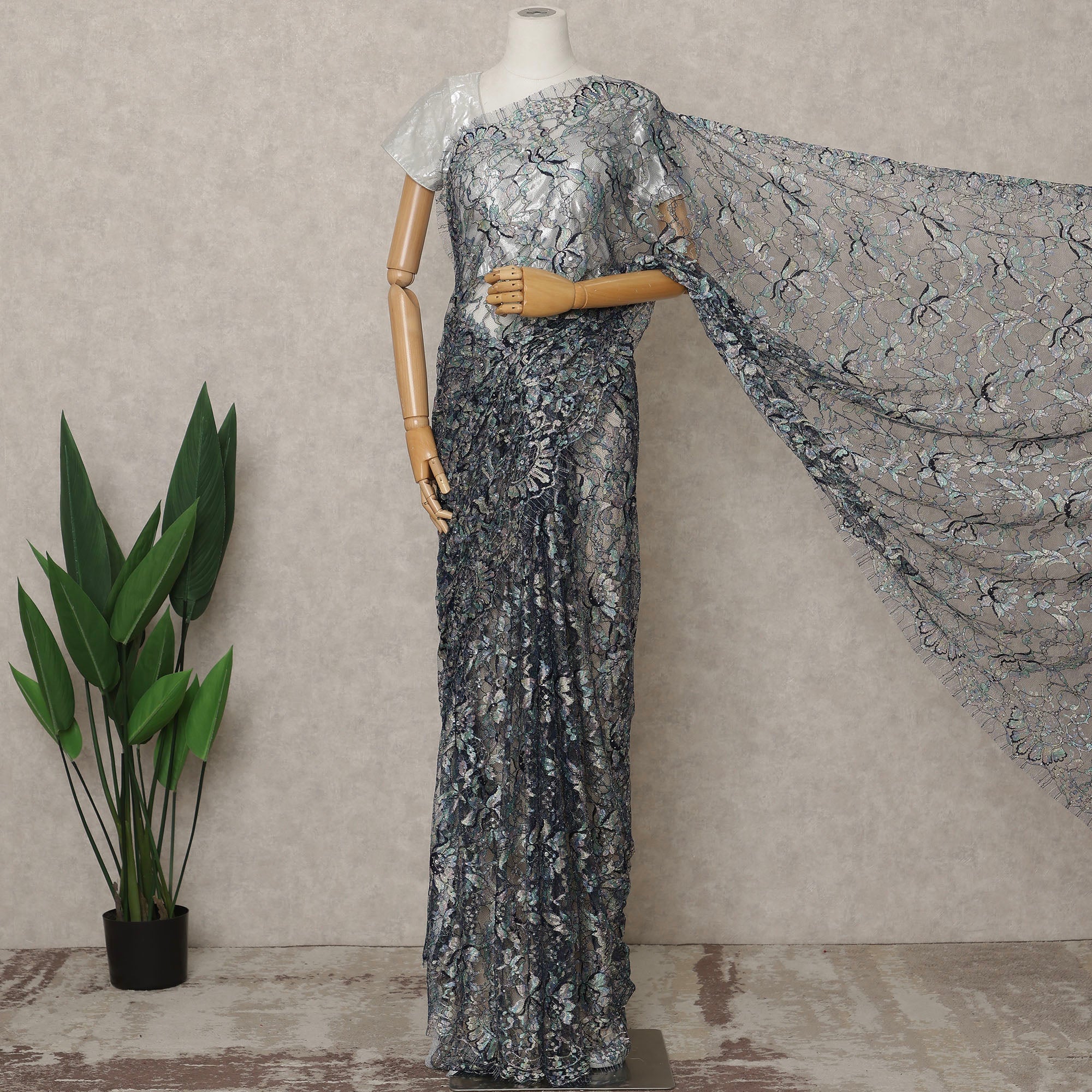 Premium French Chantilly lace saree in elegant Multicolor Blue with multi-tone shimmer