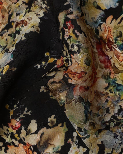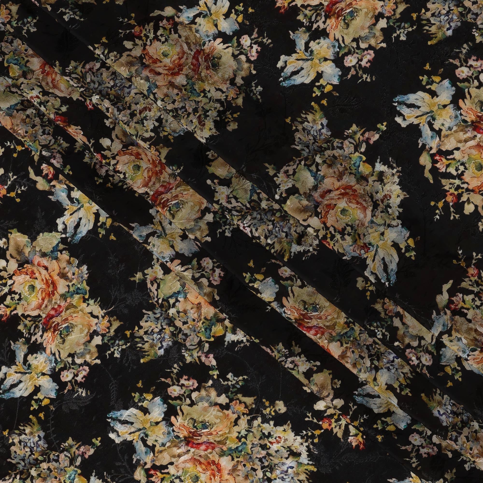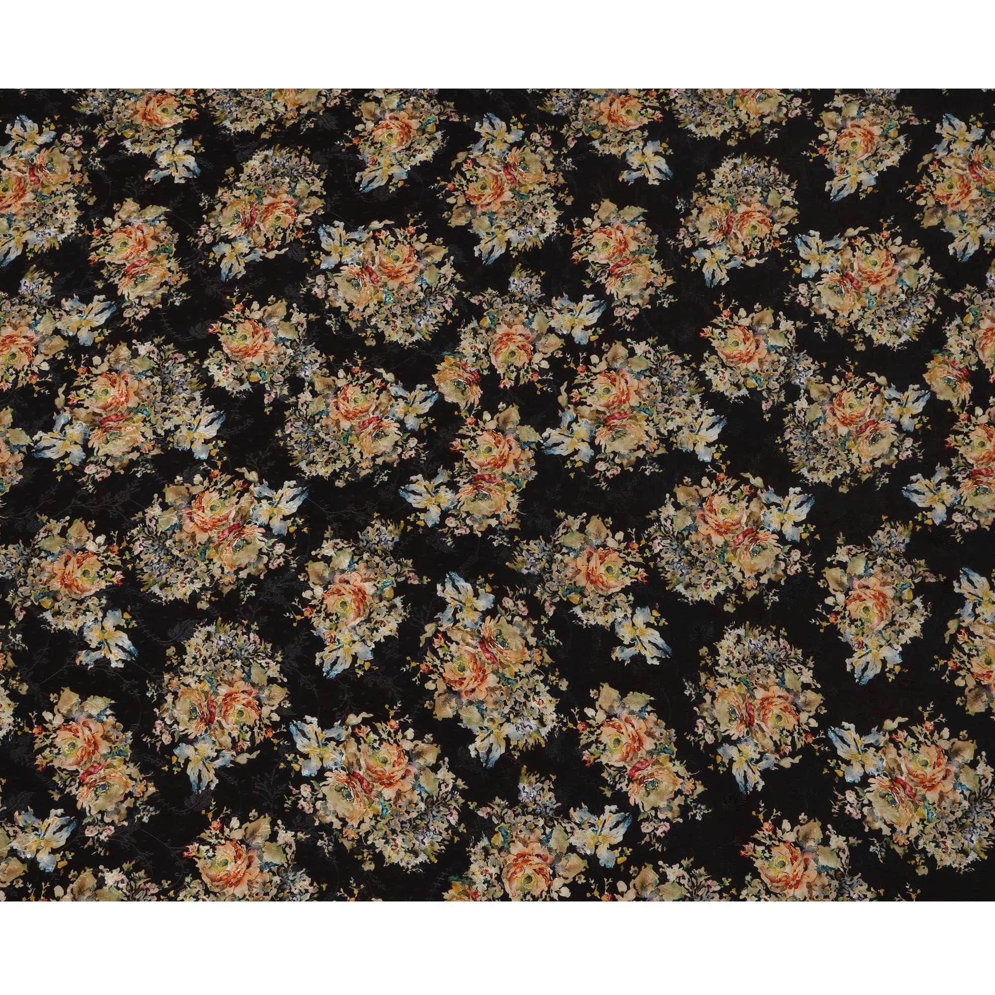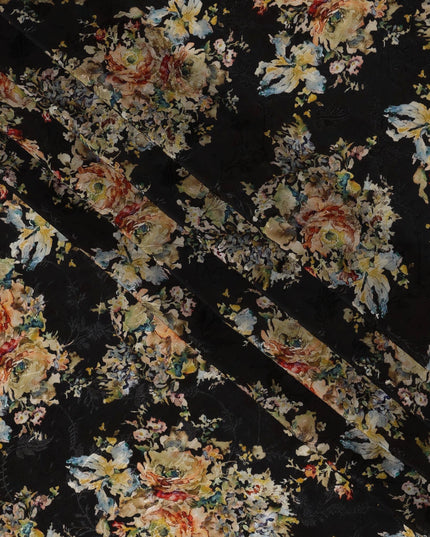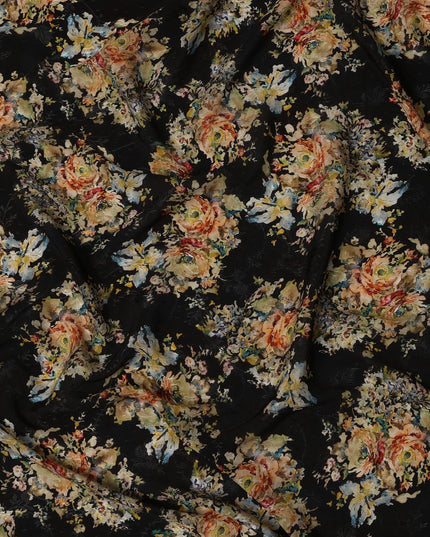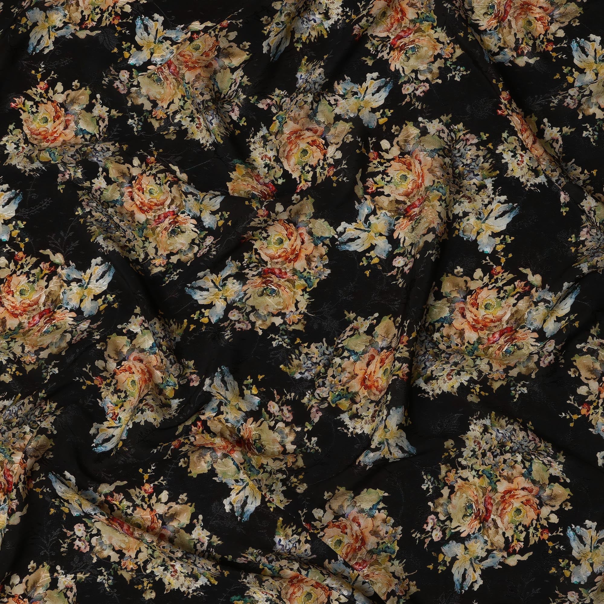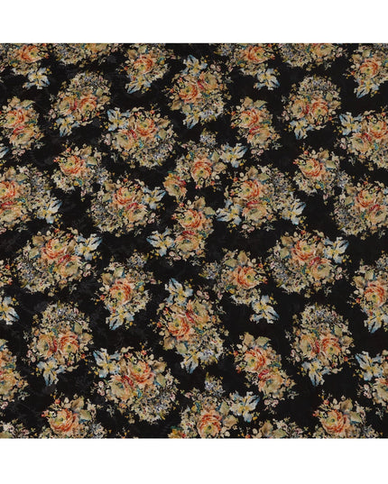 Multicolor Floral Digital Print on Black Viscose Fabric, 110 cm Width, Made in India-D22916